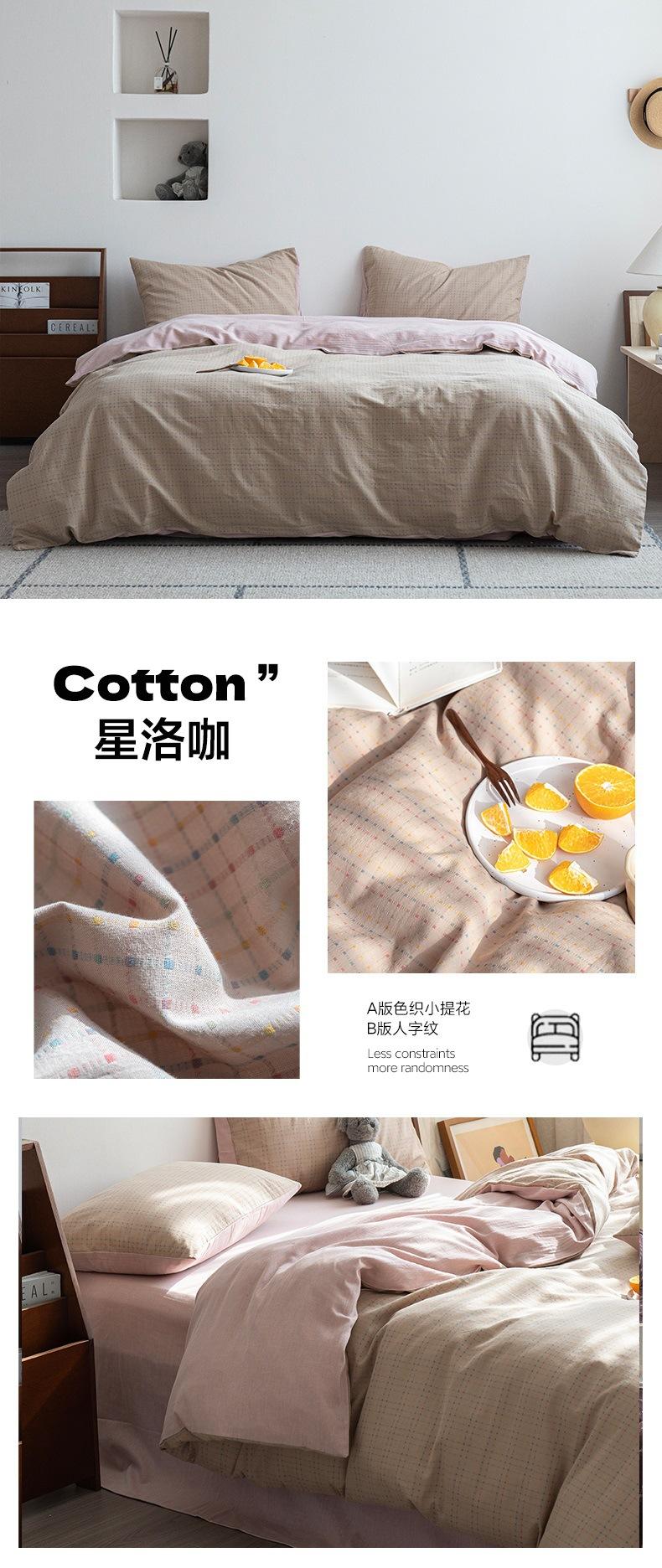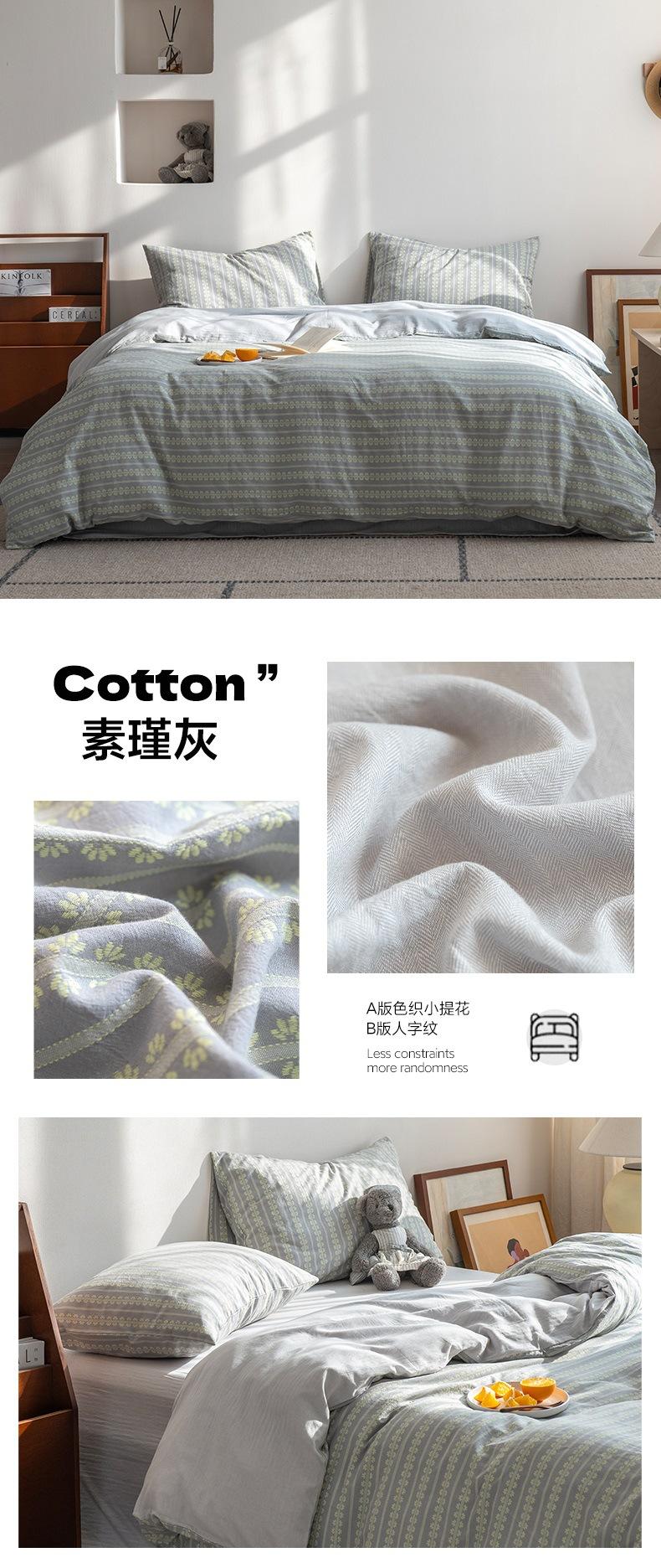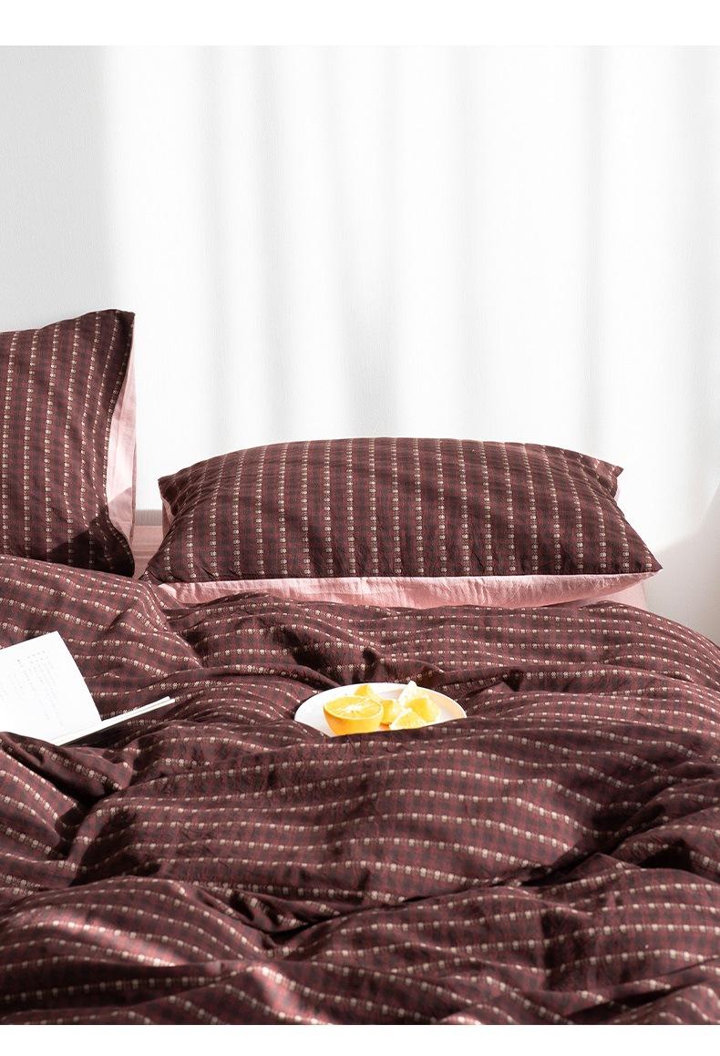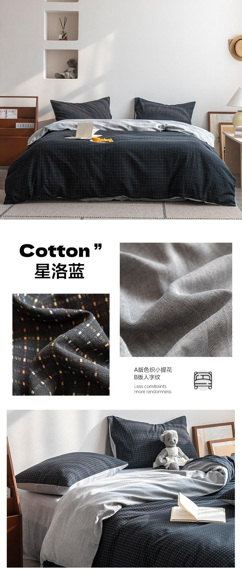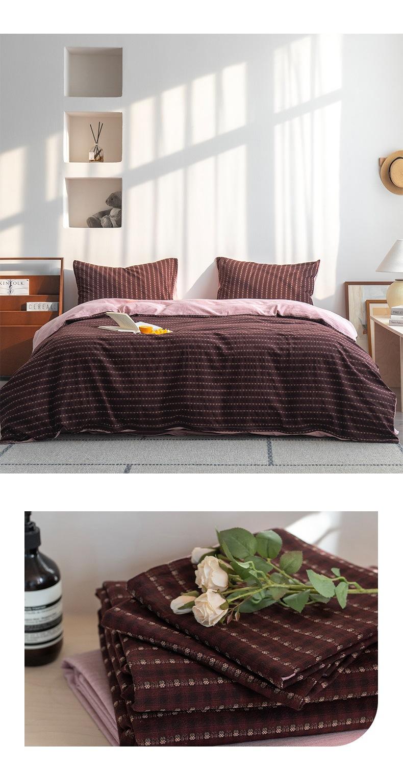 Juego de cama de cuatro piezas con funda de edredón y sábana de algodón jacquard pequeño teñido en hilo de algodón nuevo de 2025