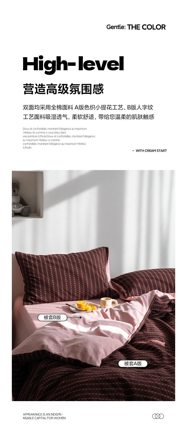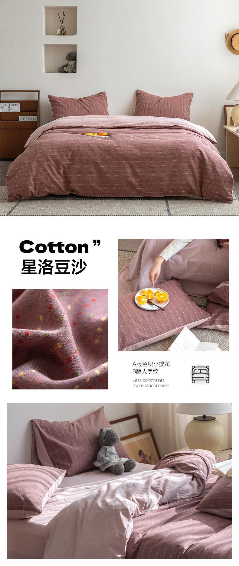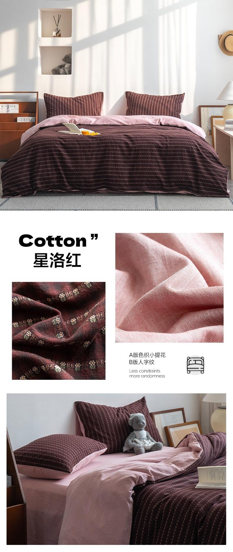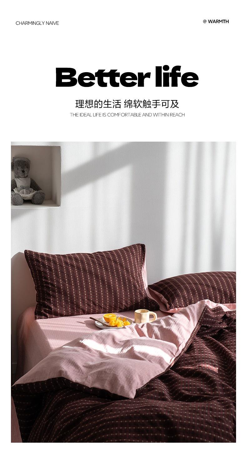 Juego de cama de cuatro piezas con funda de edredón y sábana de algodón jacquard pequeño teñido en hilo de algodón nuevo de 2025