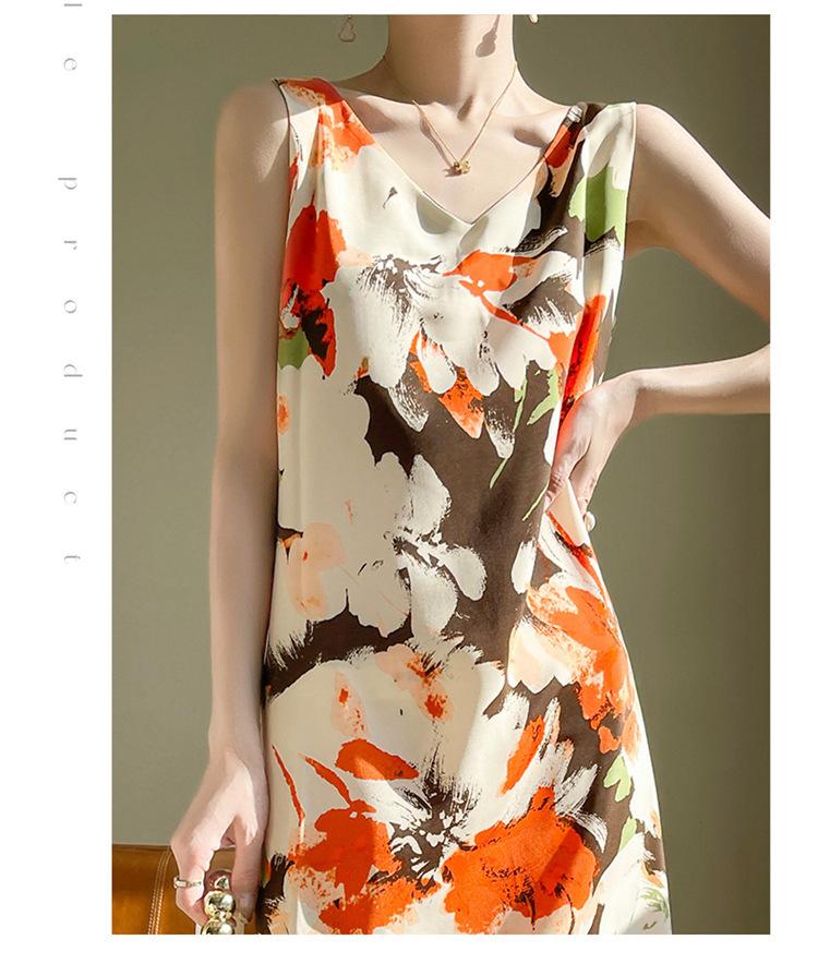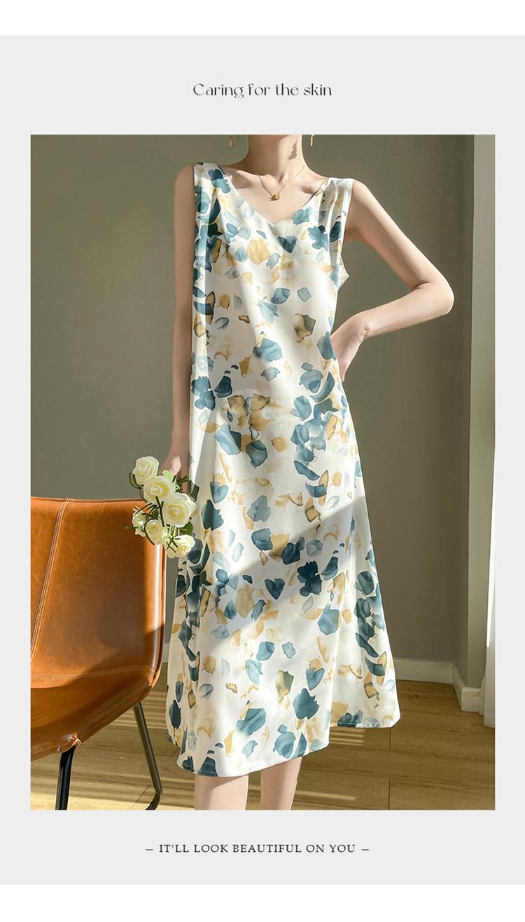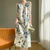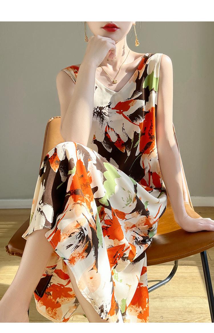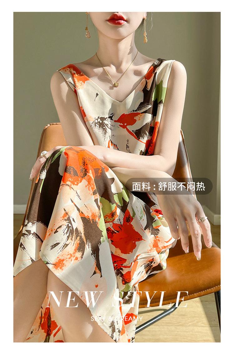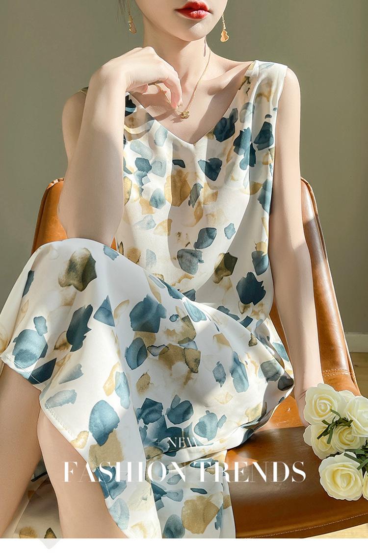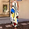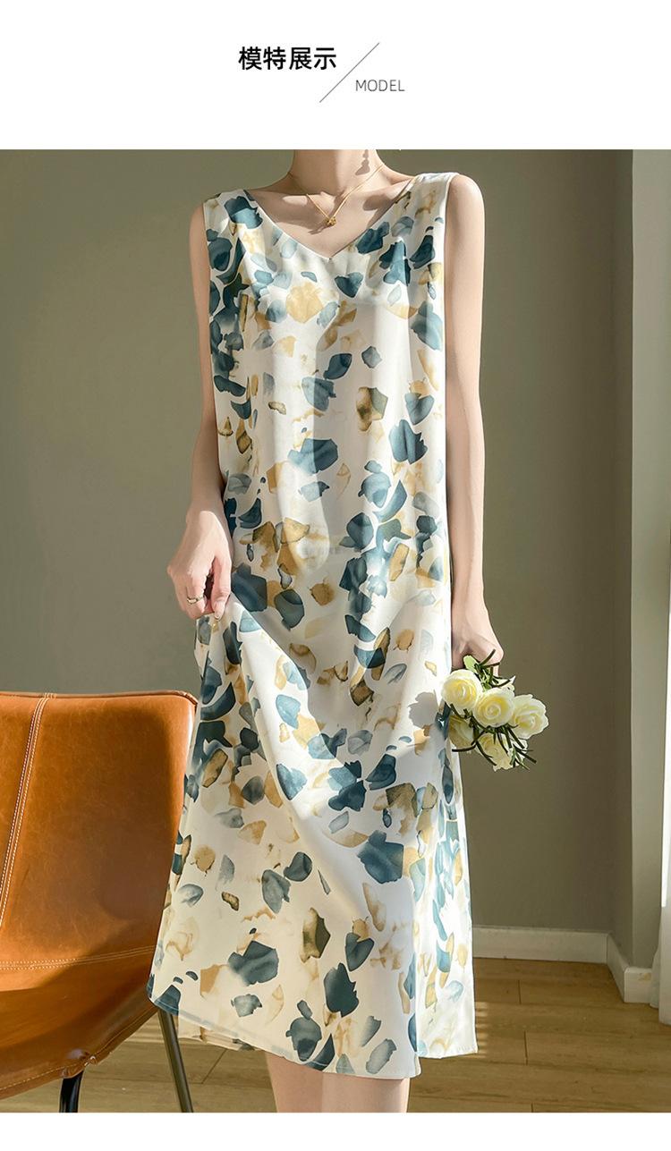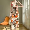Transfronterizo 2025 Nuevo Verano Vestido de Mujer Cuello en V Estampado Moderno Elegante Falda Larga Sin Mangas Vestido de Tirantes Ropa de Mujer
