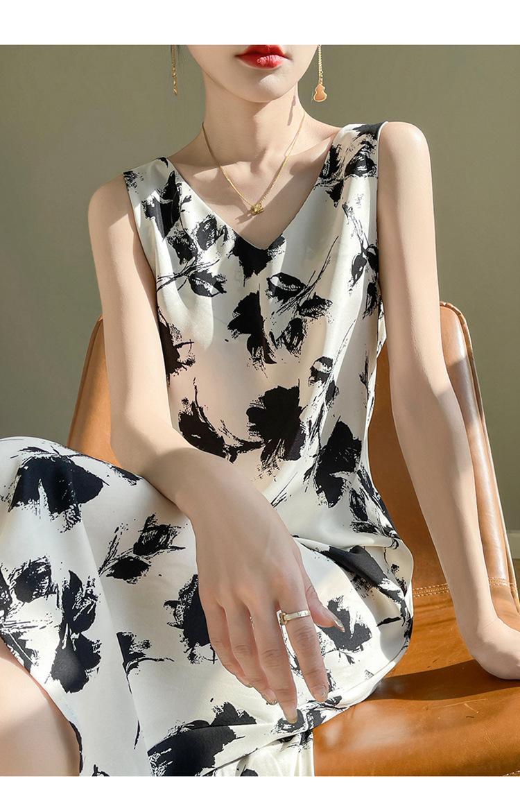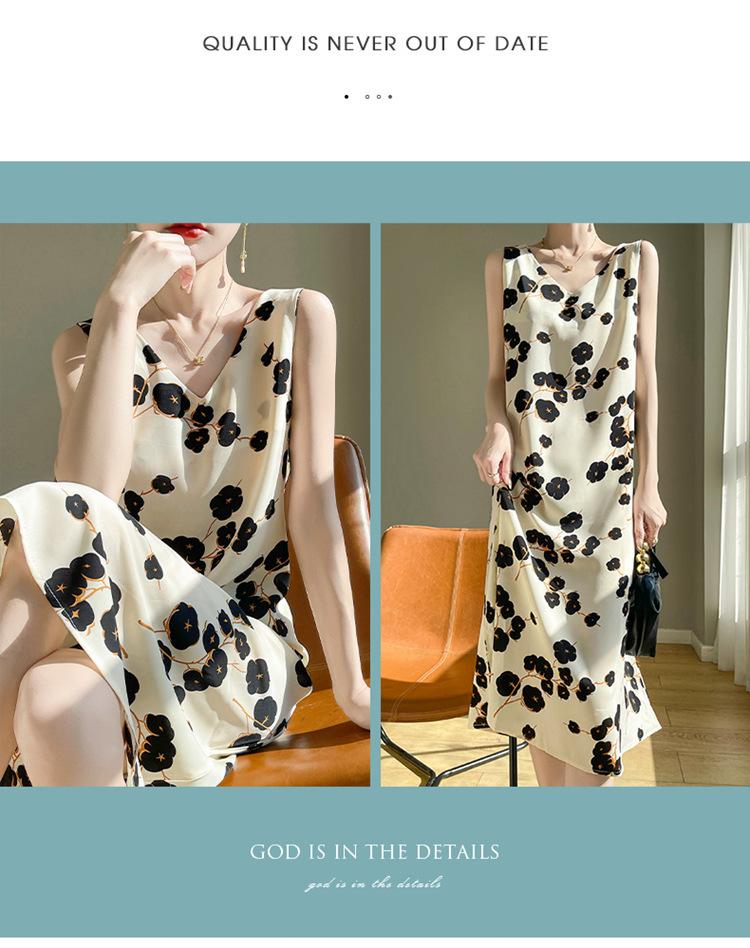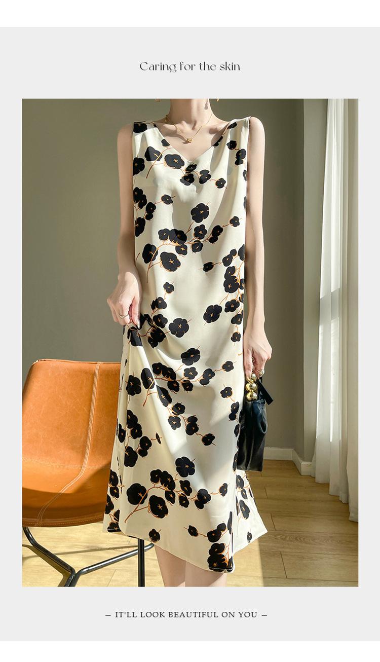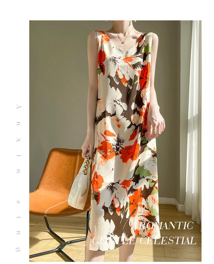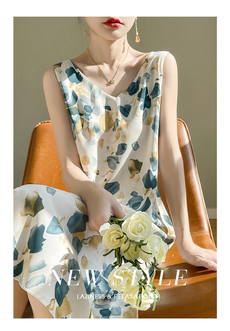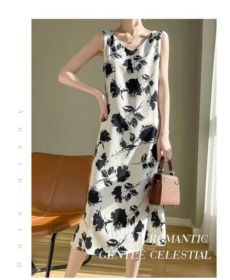 Transfronterizo 2025 Nuevo Verano Vestido de Mujer Cuello en V Estampado Moderno Elegante Falda Larga Sin Mangas Vestido de Tirantes Ropa de Mujer