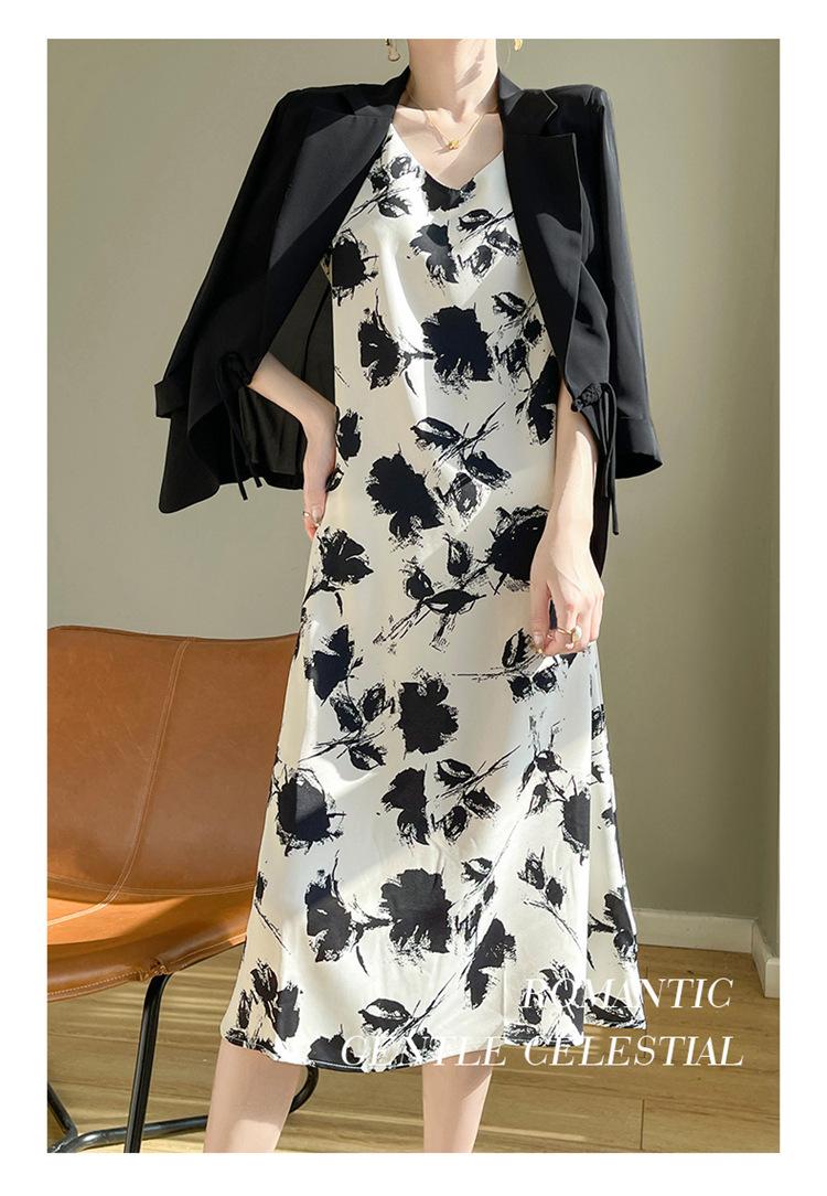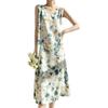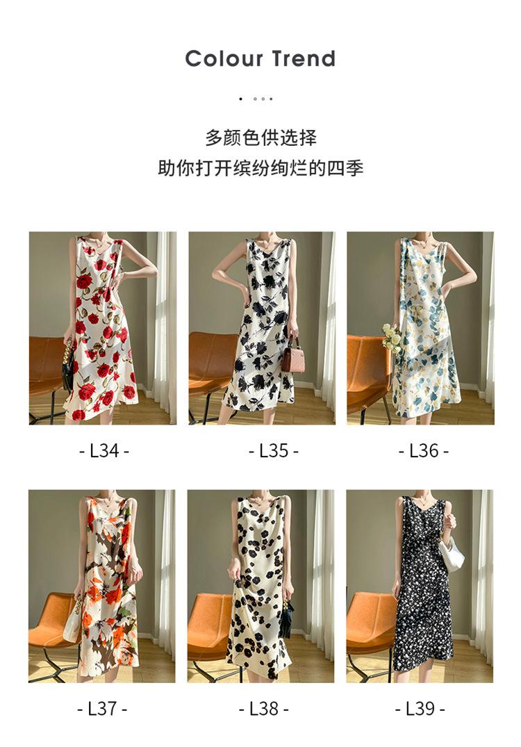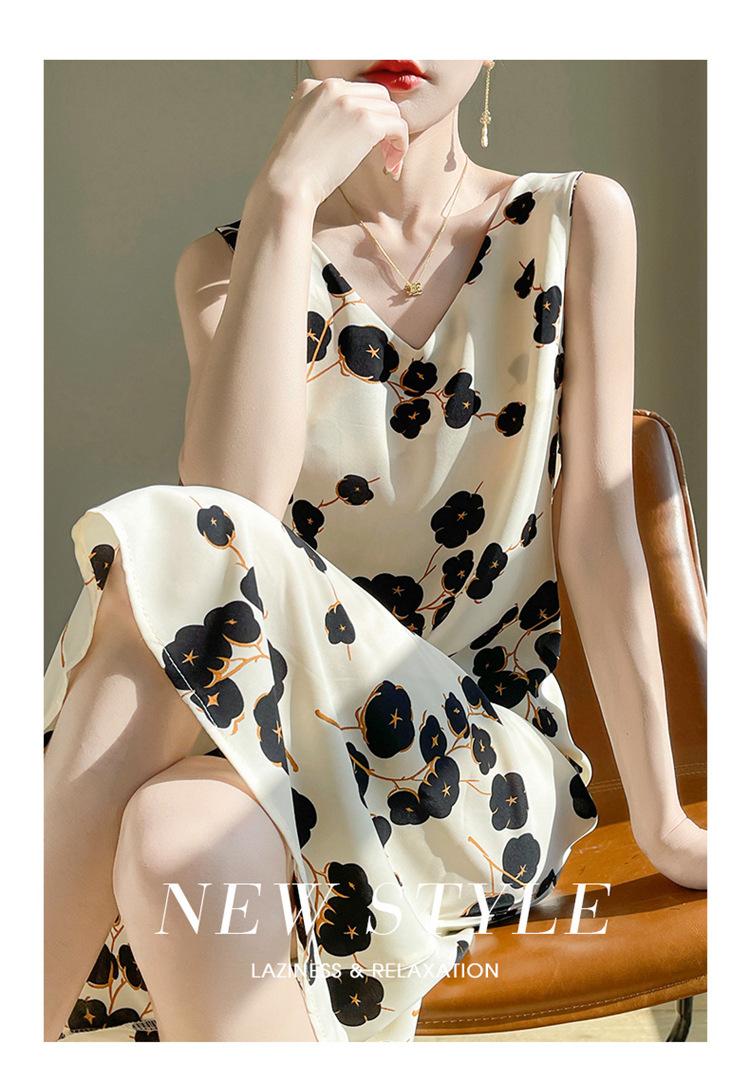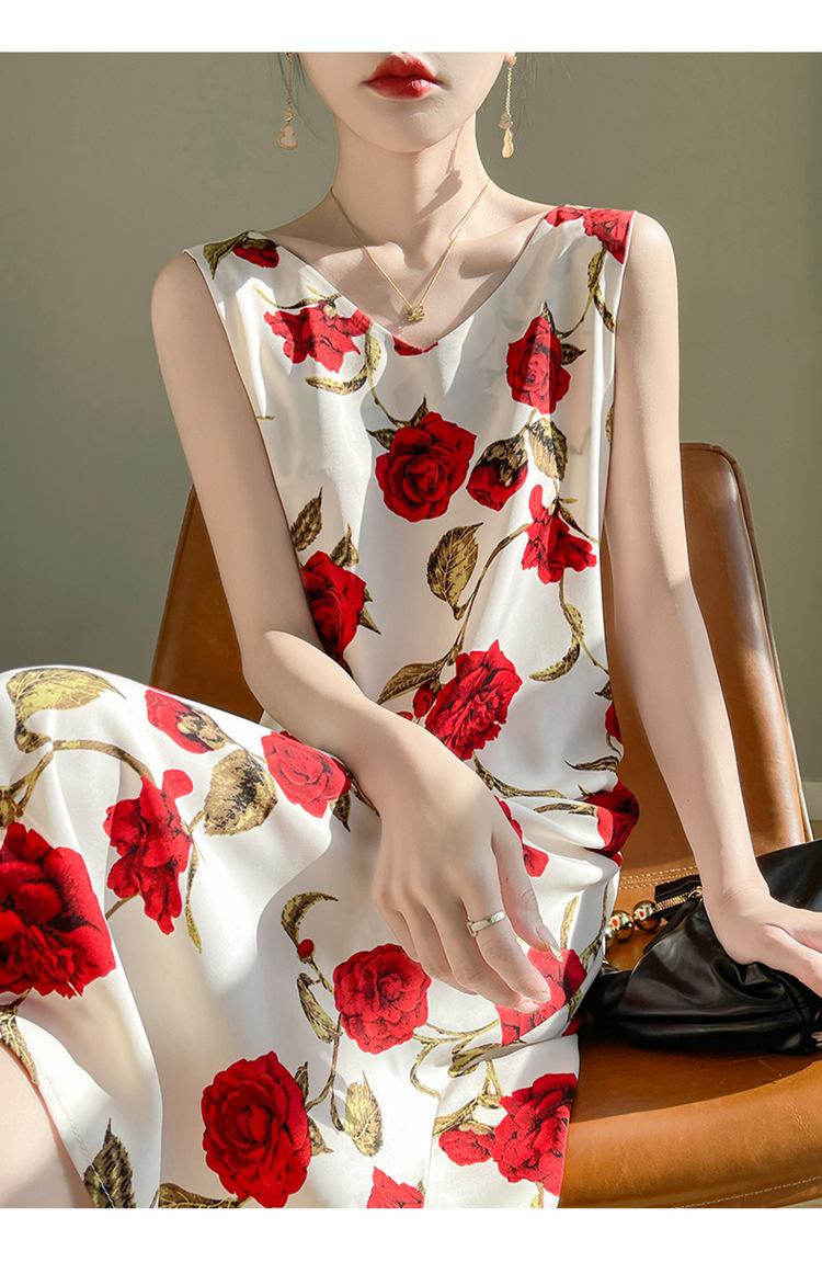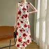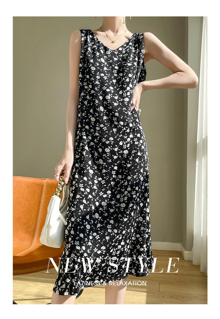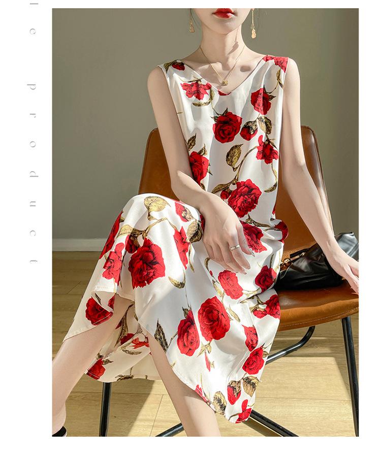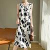 Transfronterizo 2025 Nuevo Verano Vestido de Mujer Cuello en V Estampado Moderno Elegante Falda Larga Sin Mangas Vestido de Tirantes Ropa de Mujer