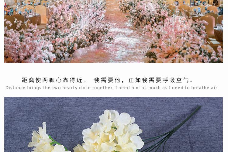 Simulación 7 Ramo de hortensias arreglo floral decoración boda hotel salón de bodas camino fondo paisajismo suave arte floral