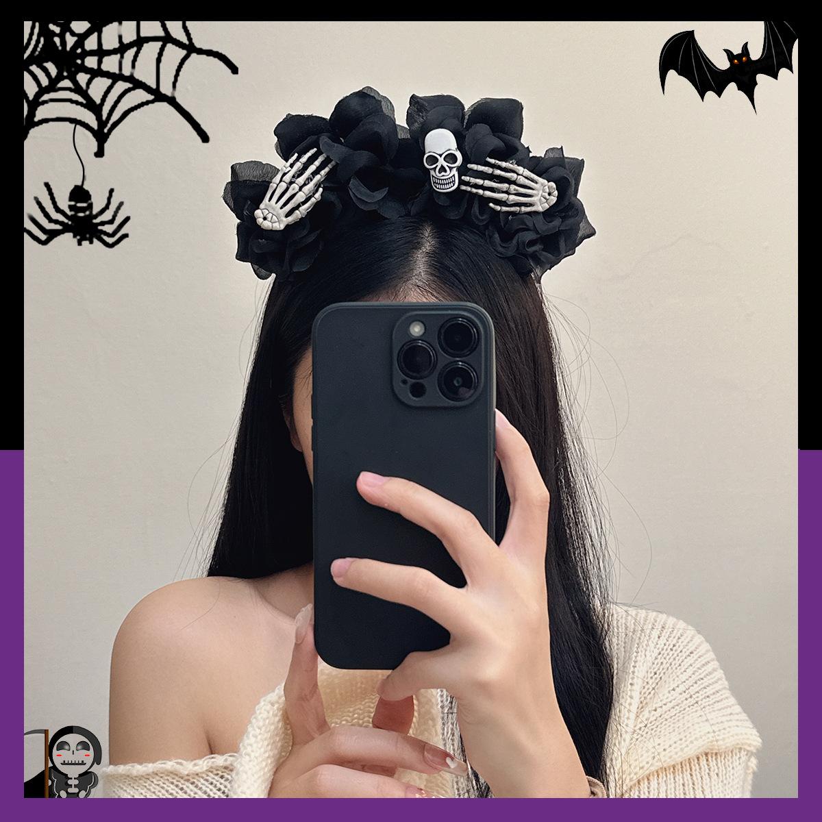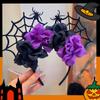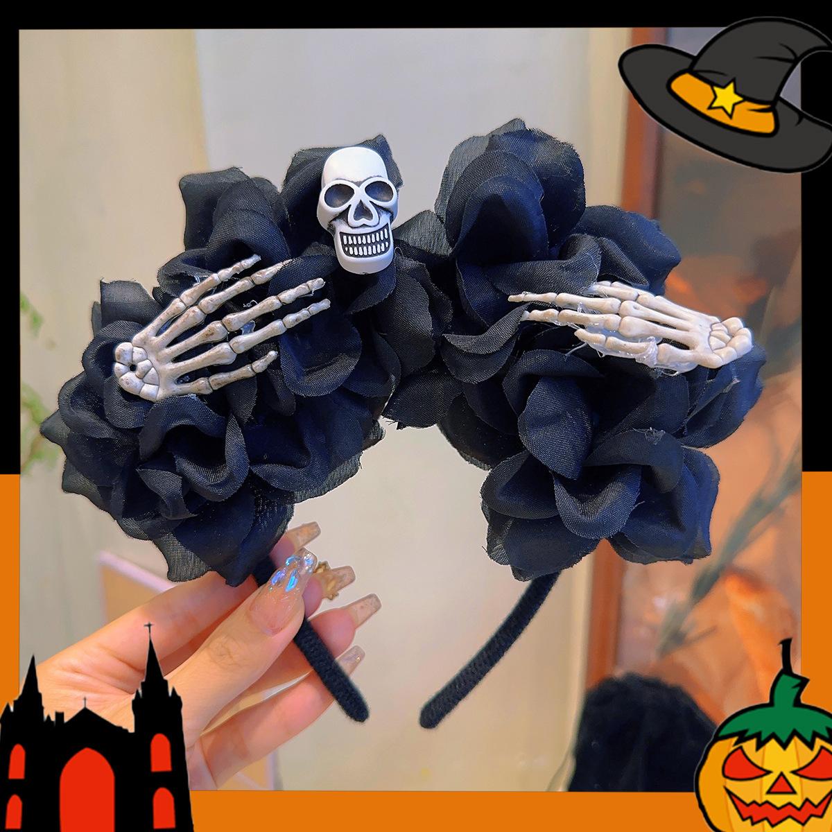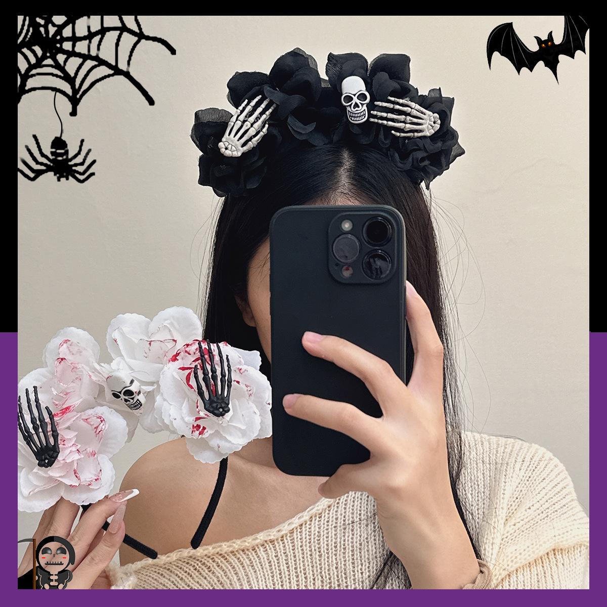 Diadema de calavera con truco divertido para Halloween, diadema de flores negras, accesorios para el cabello con ambiente malvado de terror