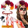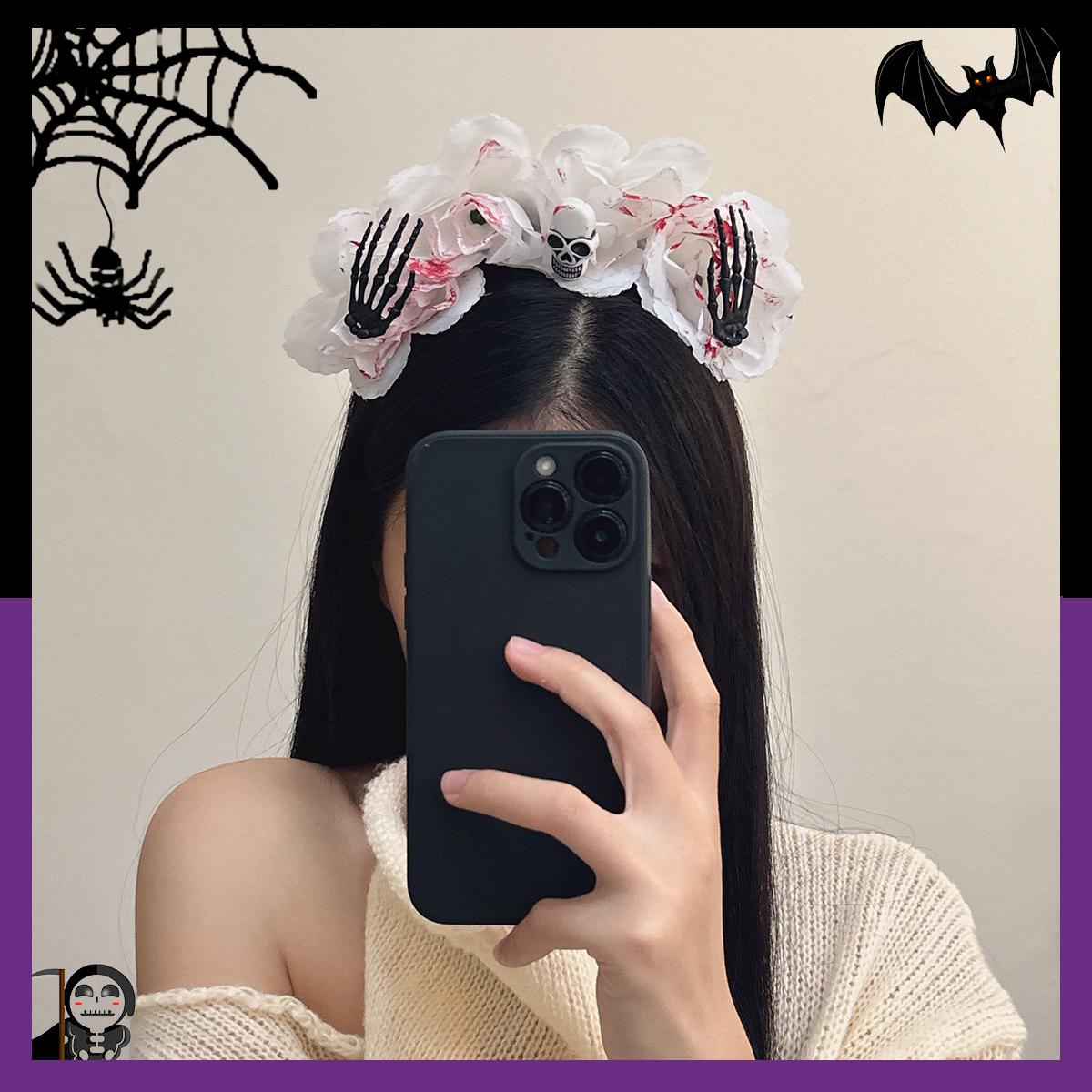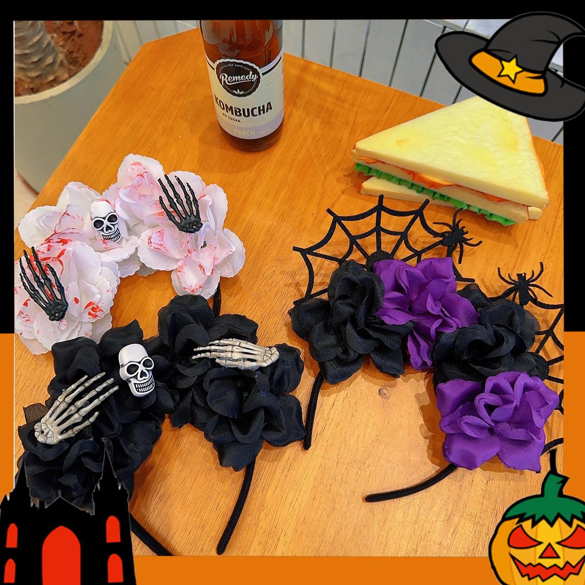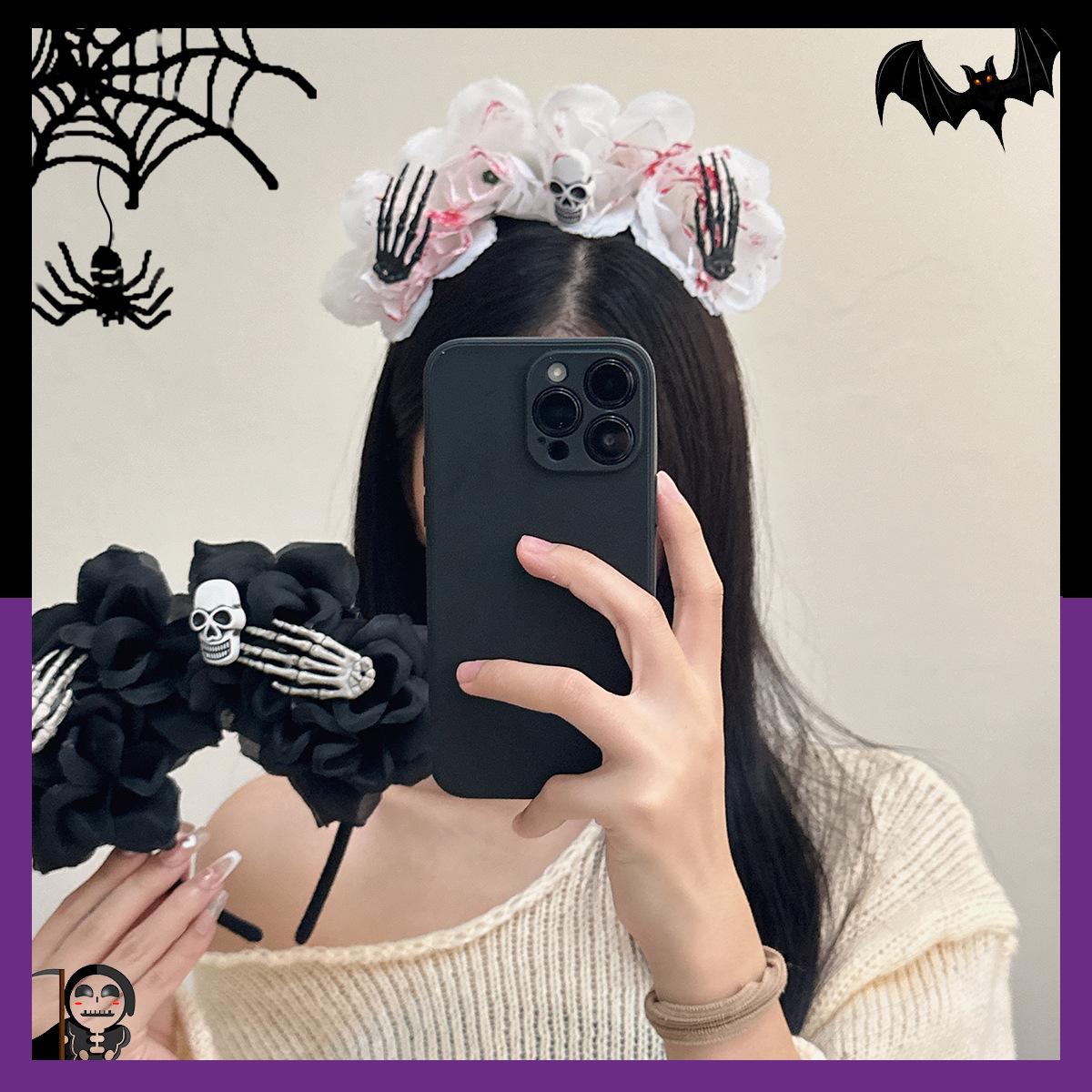 Diadema de calavera con truco divertido para Halloween, diadema de flores negras, accesorios para el cabello con ambiente malvado de terror