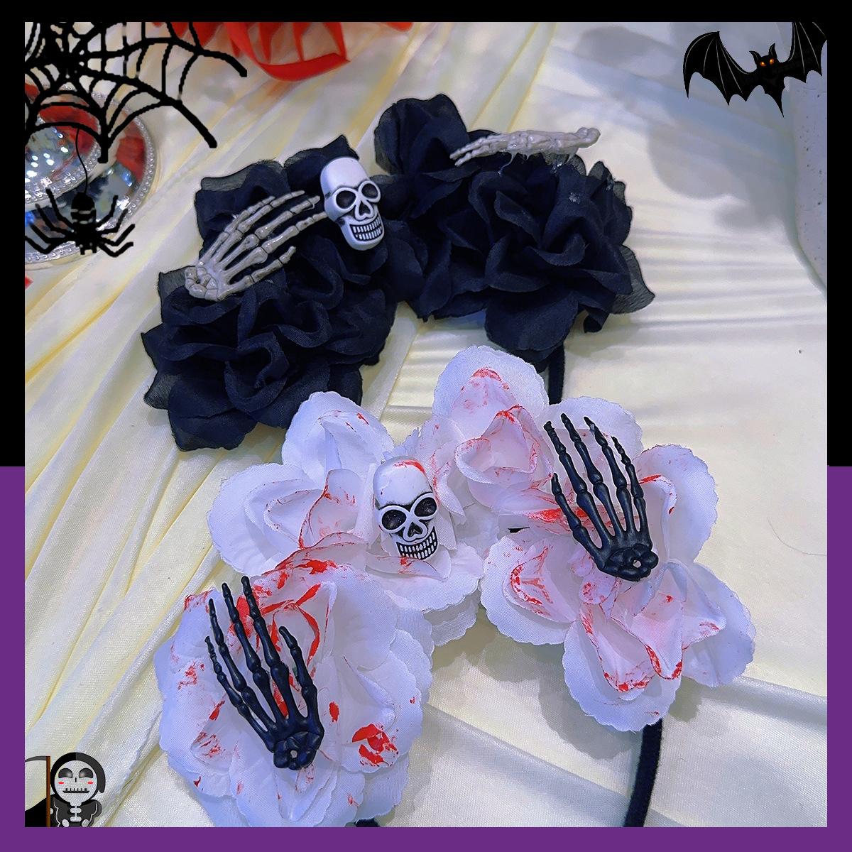 Black flower ghost claw headband (cb0155), White flower ghost claw headband (ca0311), Purple flower spider web...