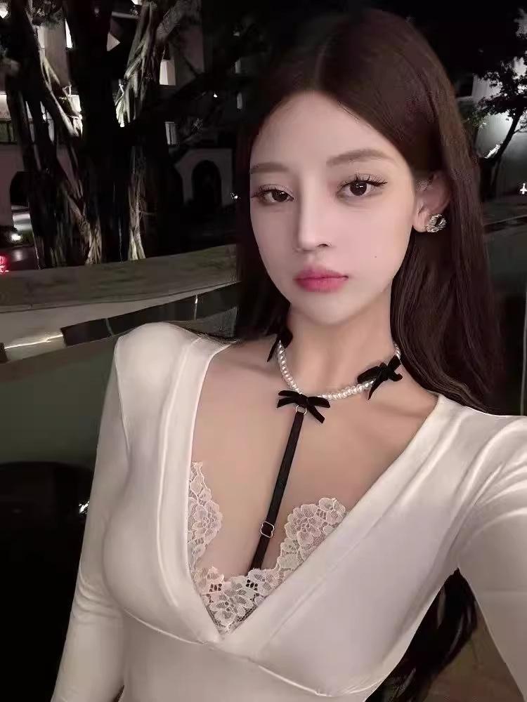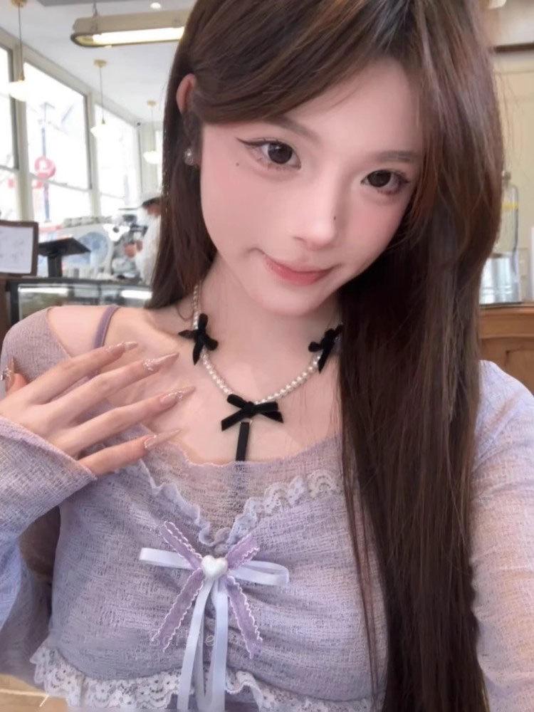 Bow pearl t-shaped clavicle chain (g5126), Black lace halter (ga0740), White lace halter (gb0731), Black and w...