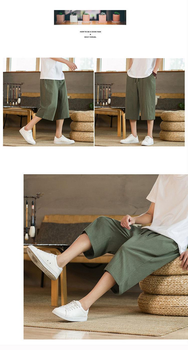 2023 Verano Nuevo talla grande estilo chino pantalones de lino pantalones casuales para hombre modernos algodón lino rectos capri