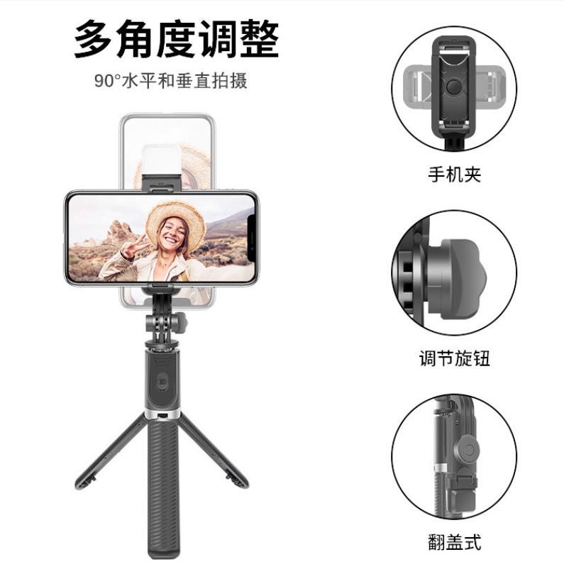 Palo de selfie con Bluetooth, luz de relleno, soporte portátil para cámara de mano, luz de relleno, control remoto, trípode de piso de acero inoxidable para viaje