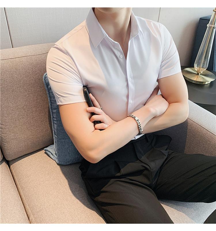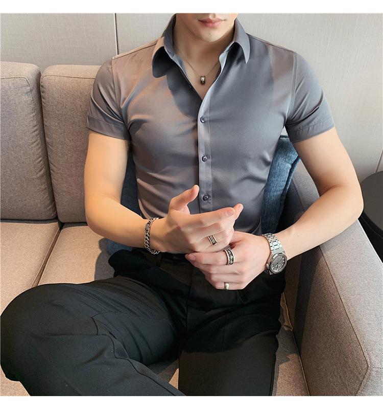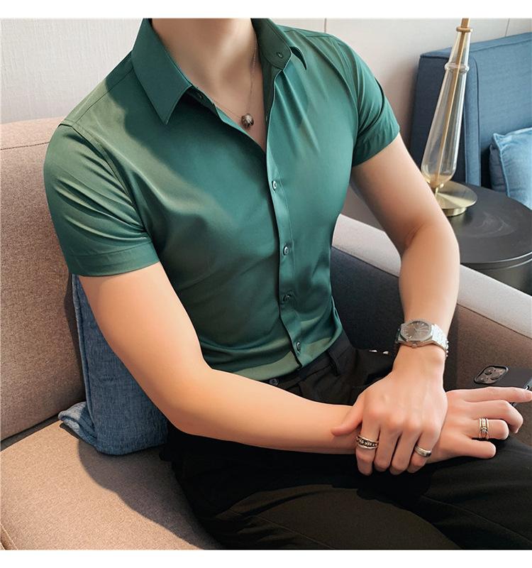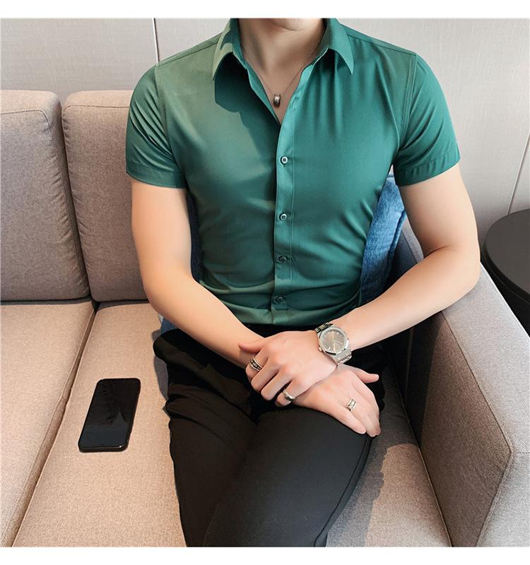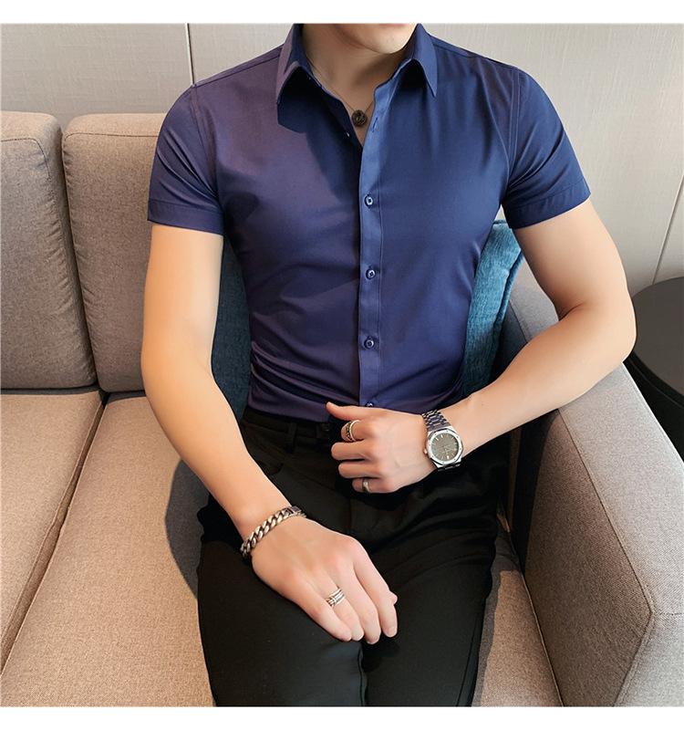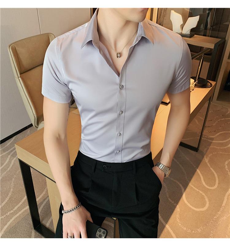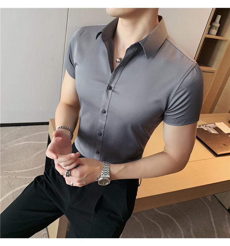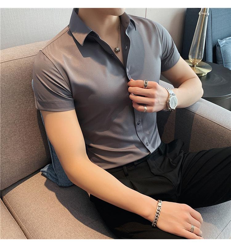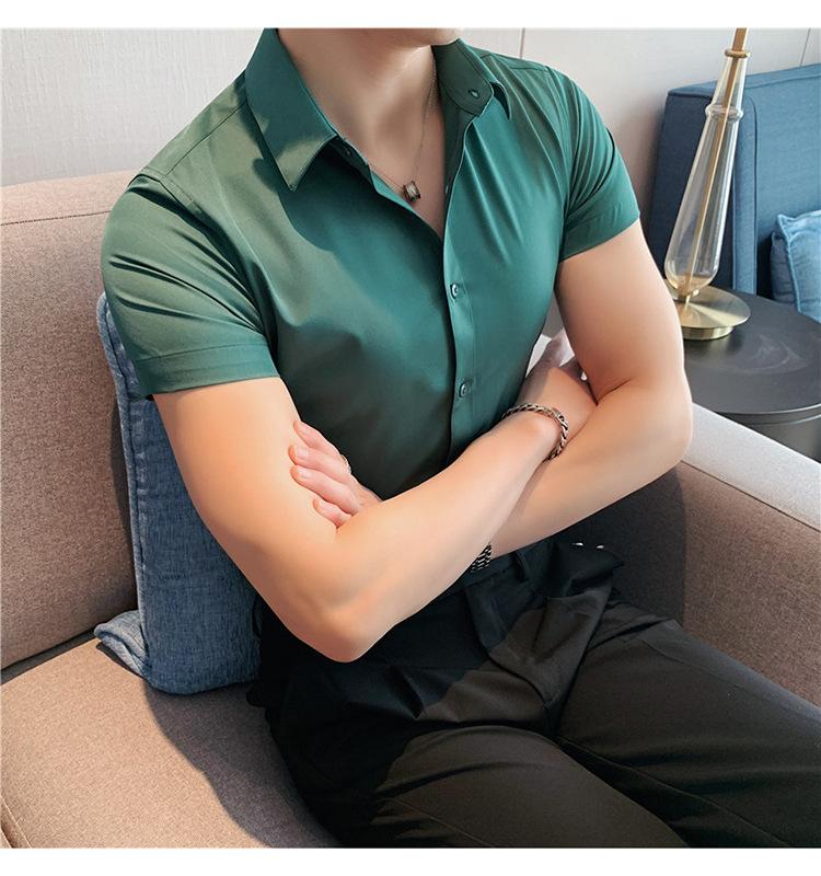 Camisa de manga corta elástica fina de verano 2025 para hombre de negocios británico, camisa ajustada de color liso, combina con todo.