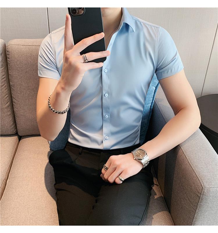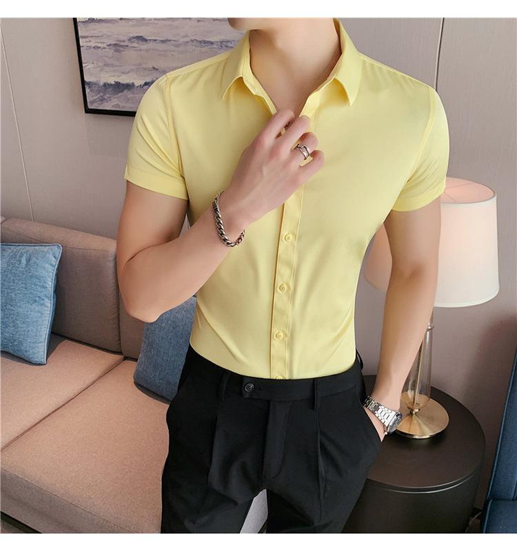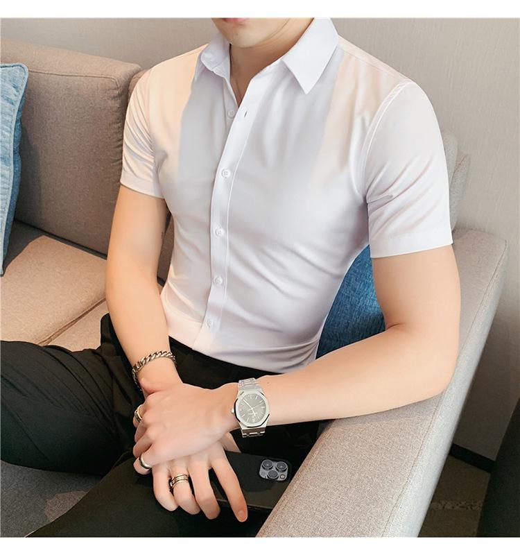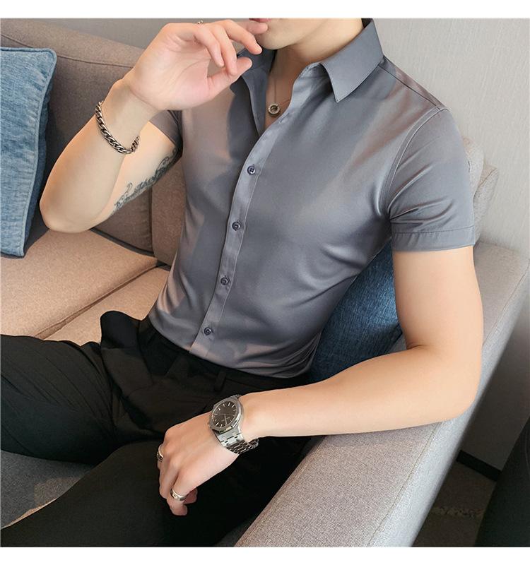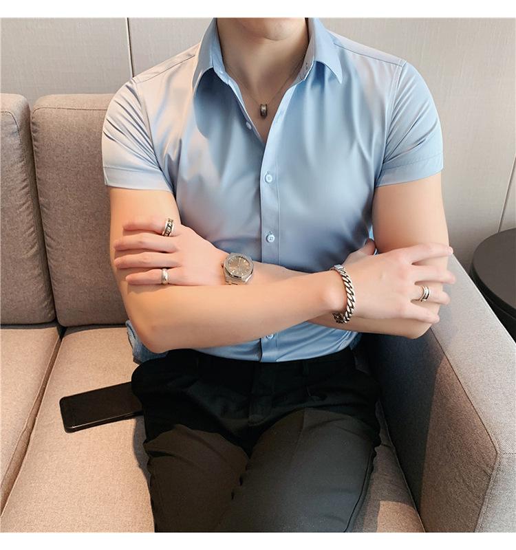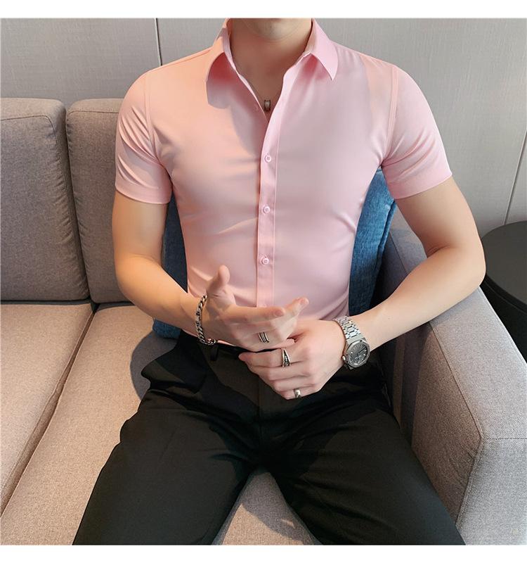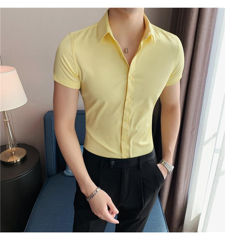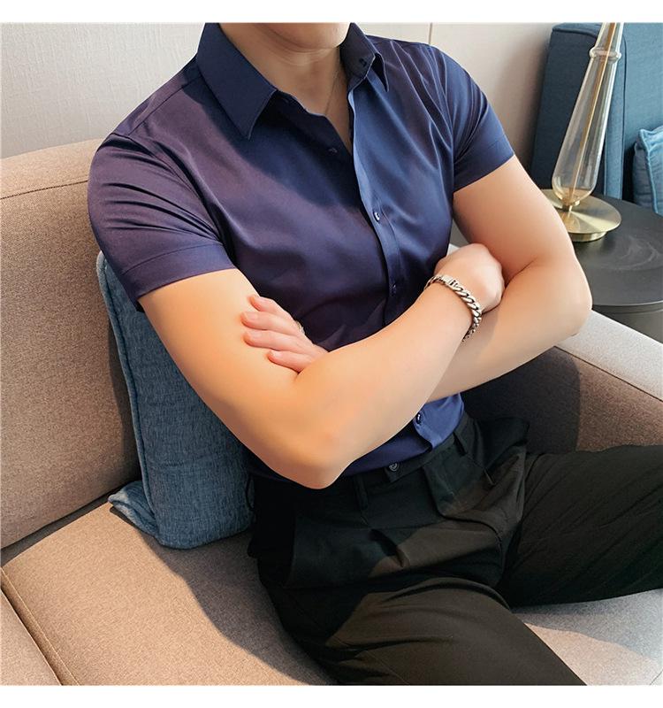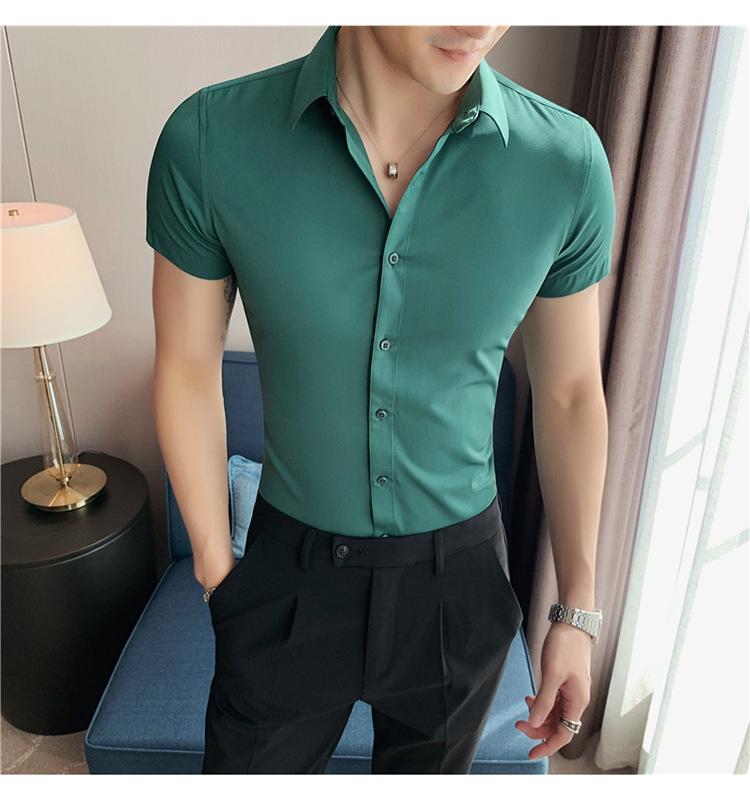 Camisa de manga corta elástica fina de verano 2025 para hombre de negocios británico, camisa ajustada de color liso, combina con todo.