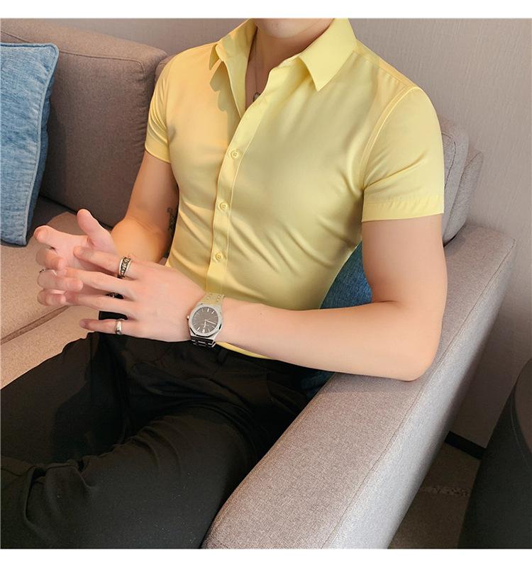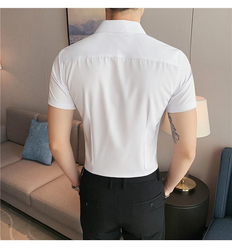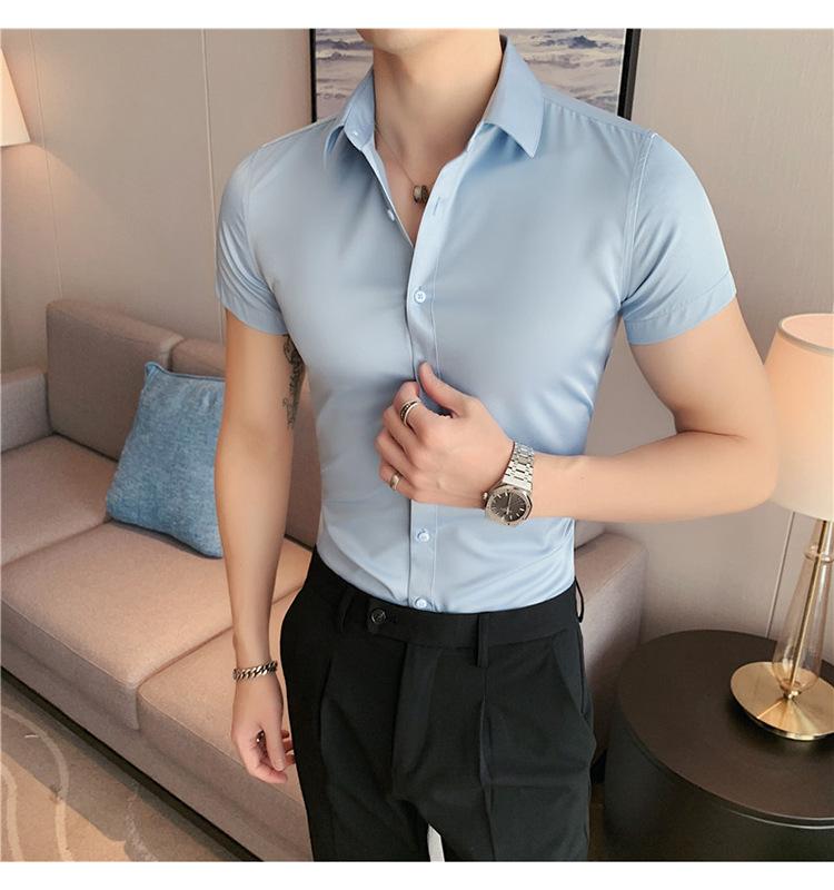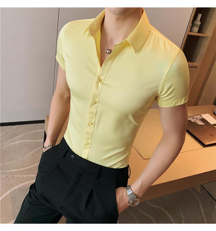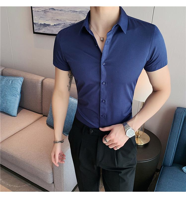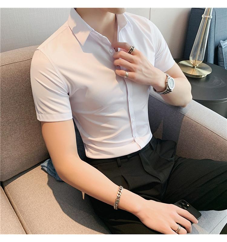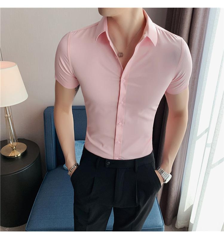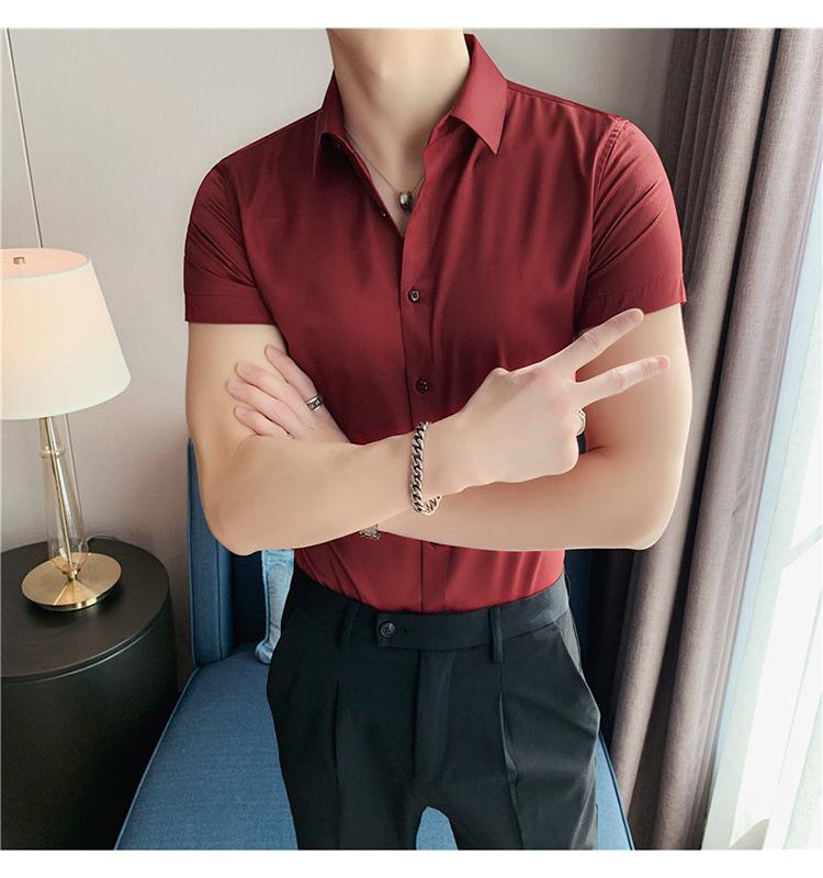 Camisa de manga corta elástica fina de verano 2025 para hombre de negocios británico, camisa ajustada de color liso, combina con todo.