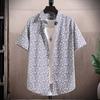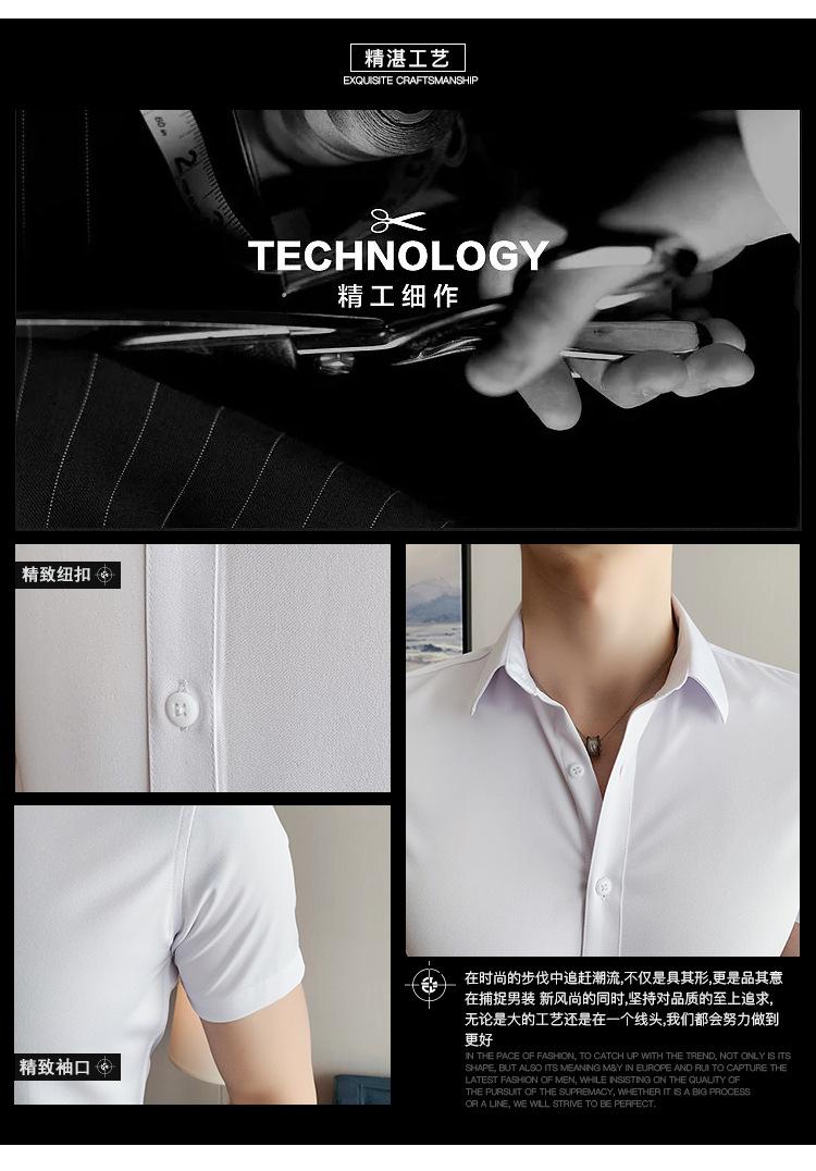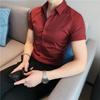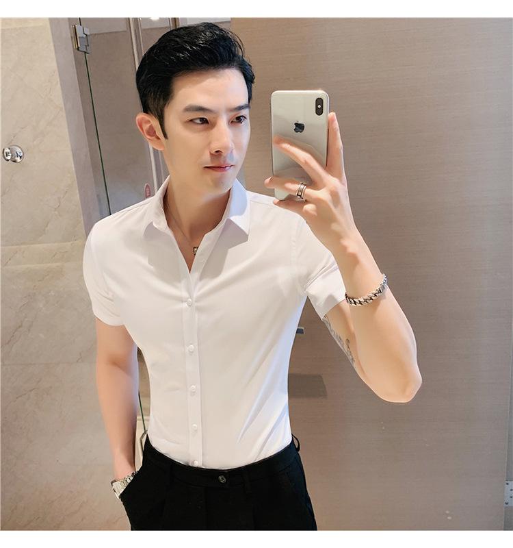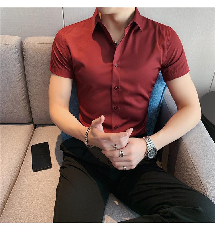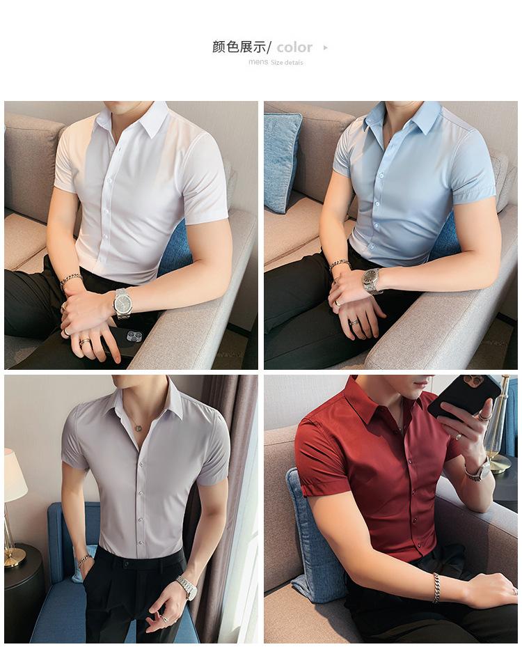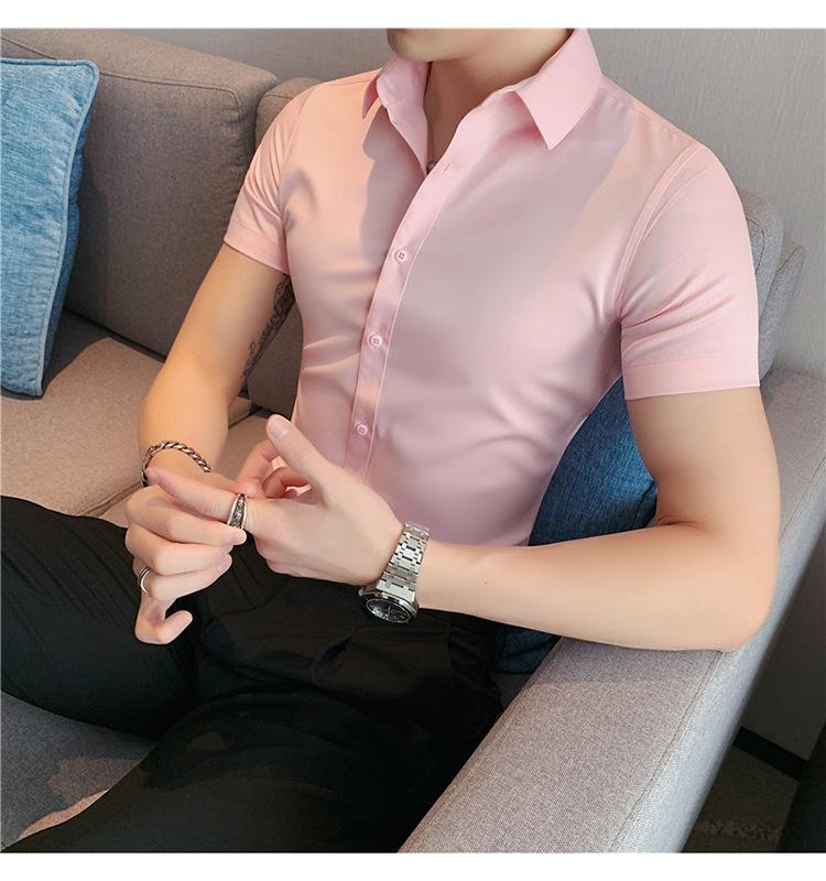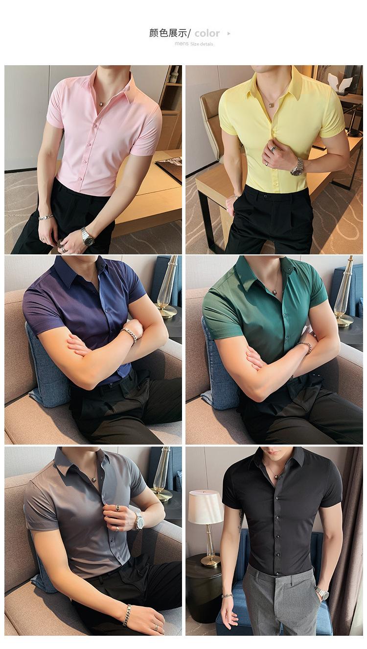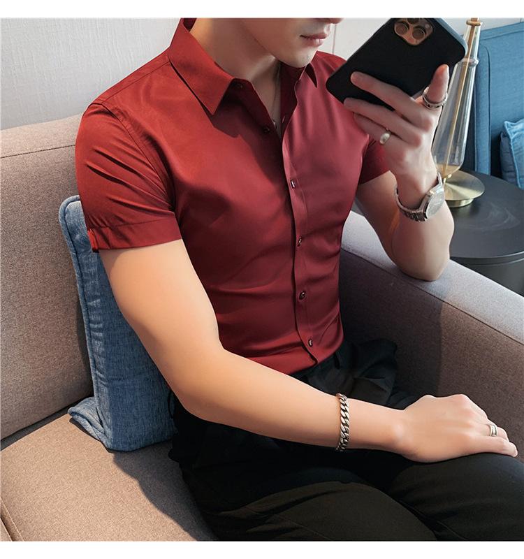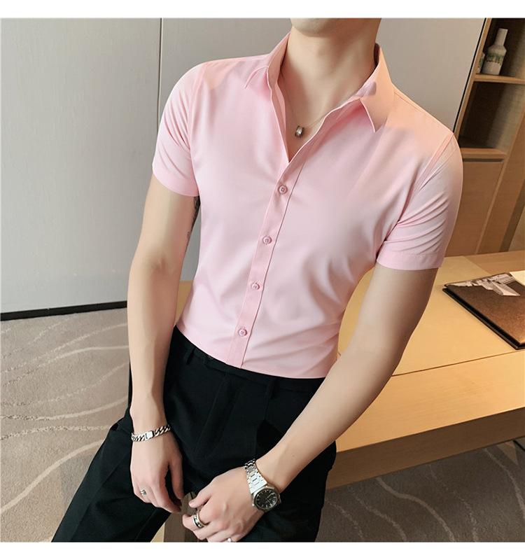 Camisa de manga corta elástica fina de verano 2025 para hombre de negocios británico, camisa ajustada de color liso, combina con todo.