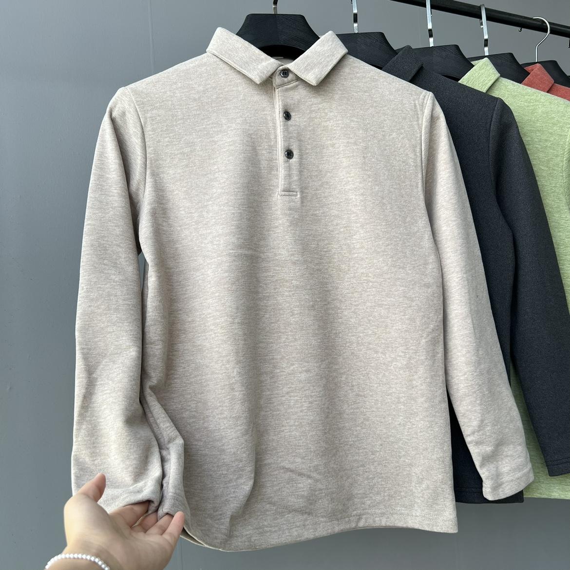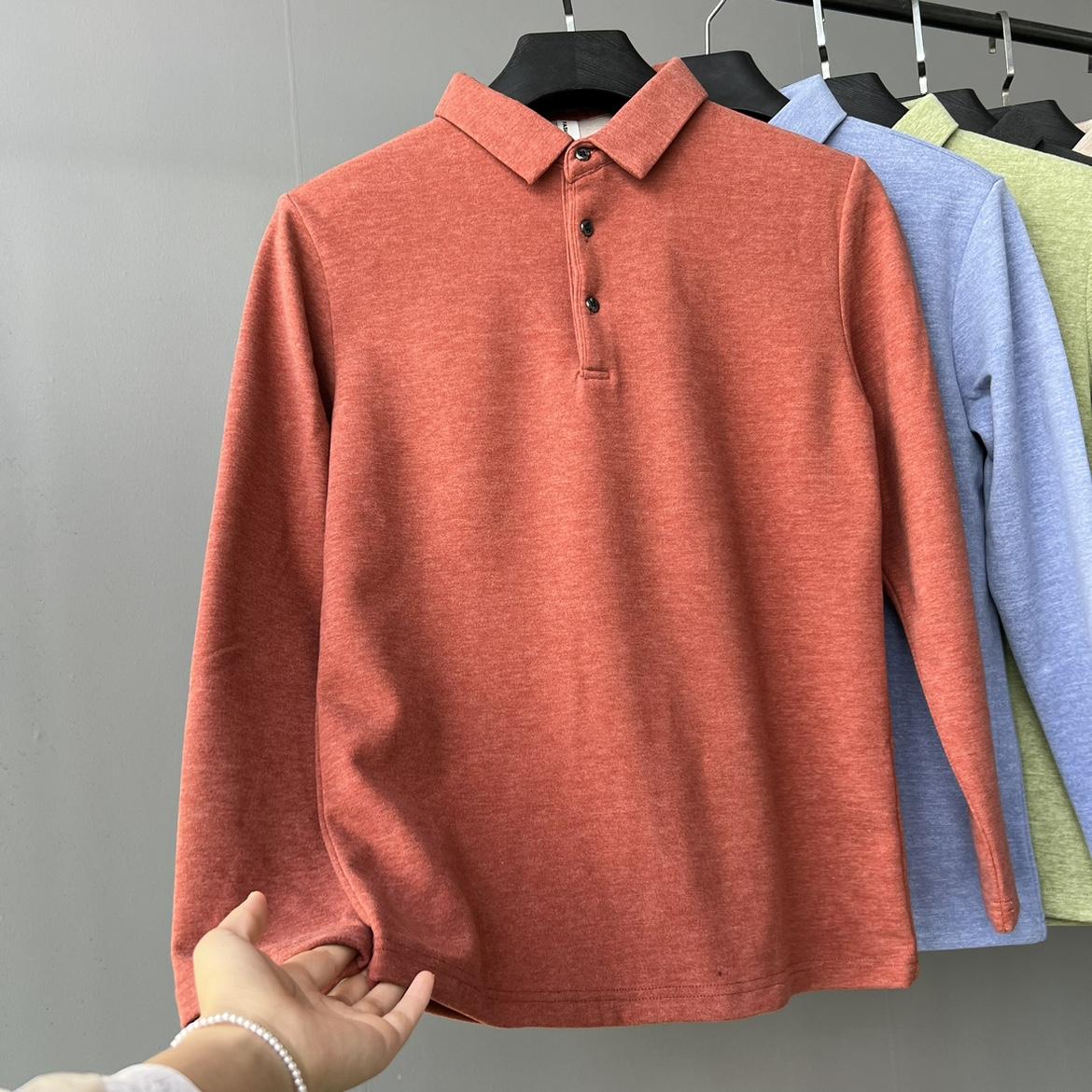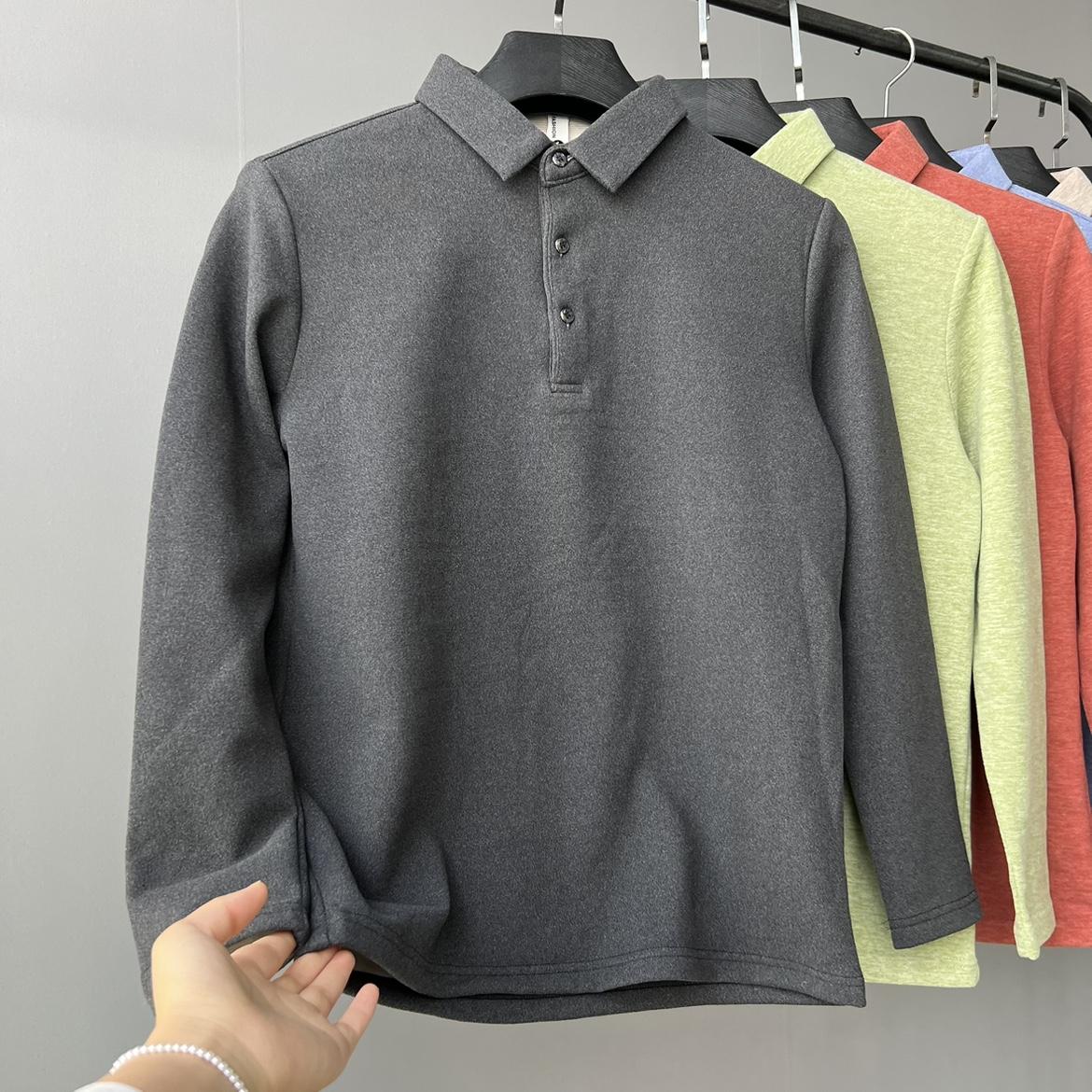 Camisa polo de solapa de negocios de color sólido para hombre, gruesa, de invierno, de terciopelo de doble cara, de manga larga, de color sólido, base de camiseta