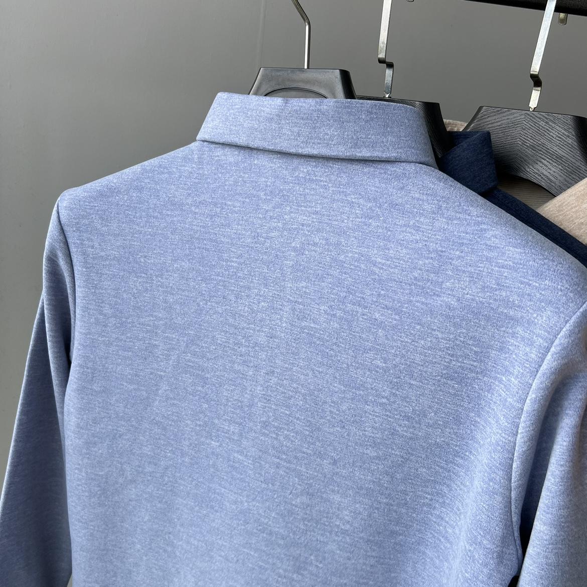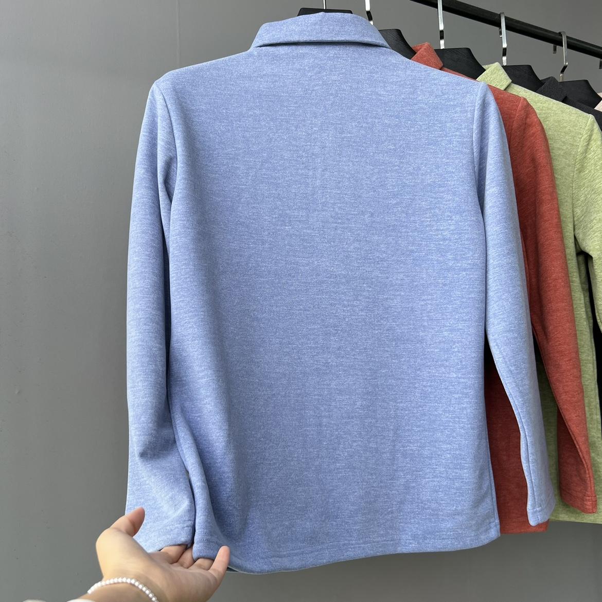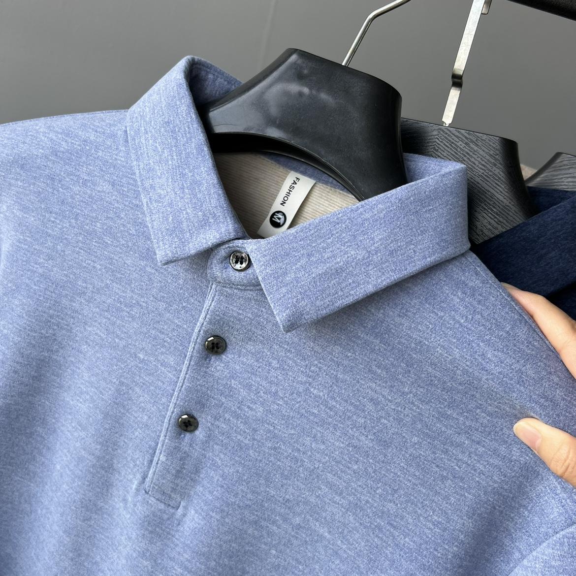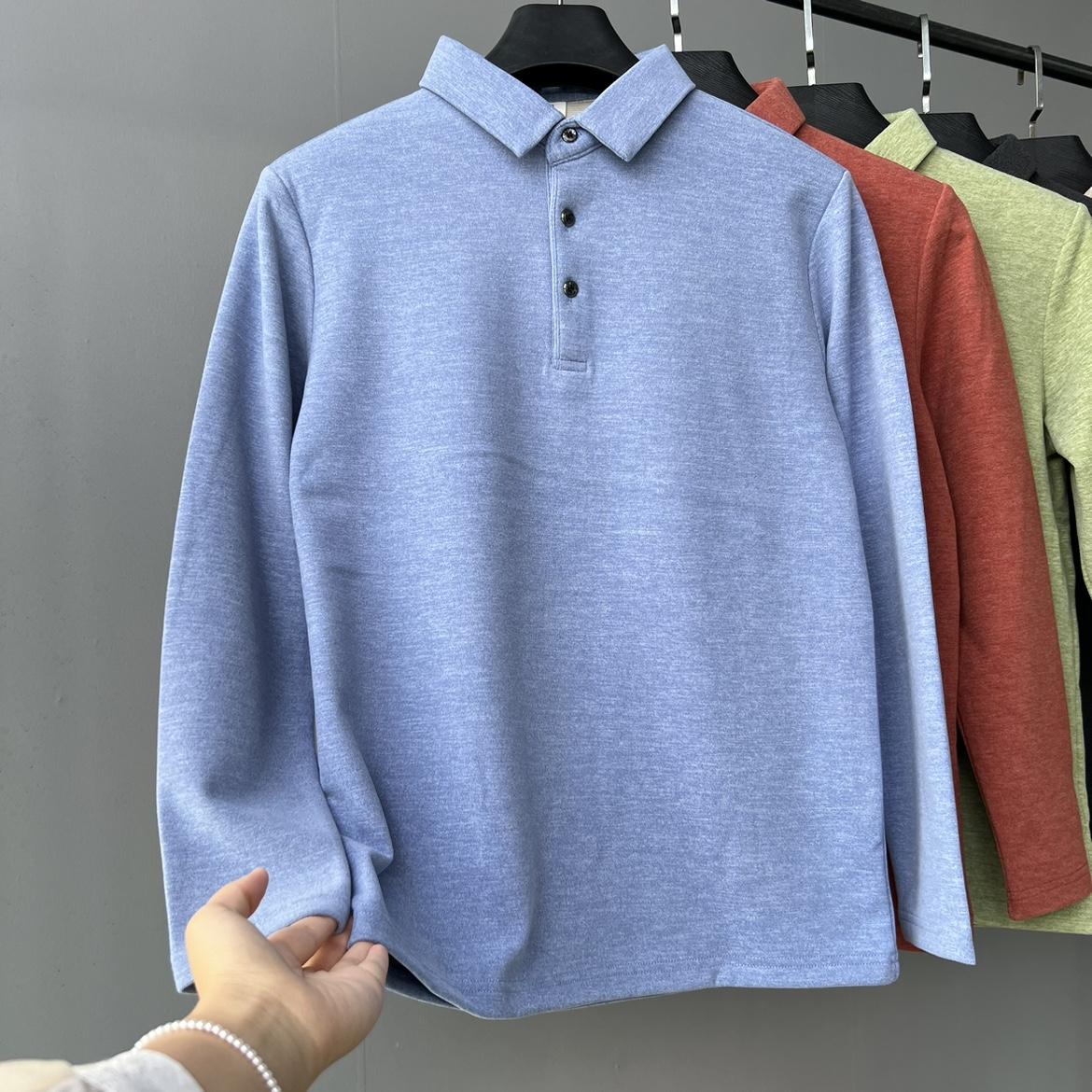 Camisa polo de solapa de negocios de color sólido para hombre, gruesa, de invierno, de terciopelo de doble cara, de manga larga, de color sólido, base de camiseta