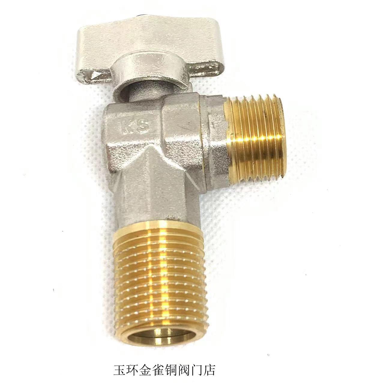 Válvula triangular de cobre de 4 puntos, válvula de ángulo de flujo grande, rosca de cobre puro, calentador de agua de cobre, válvula de tornillo caliente y frío, válvula DN15