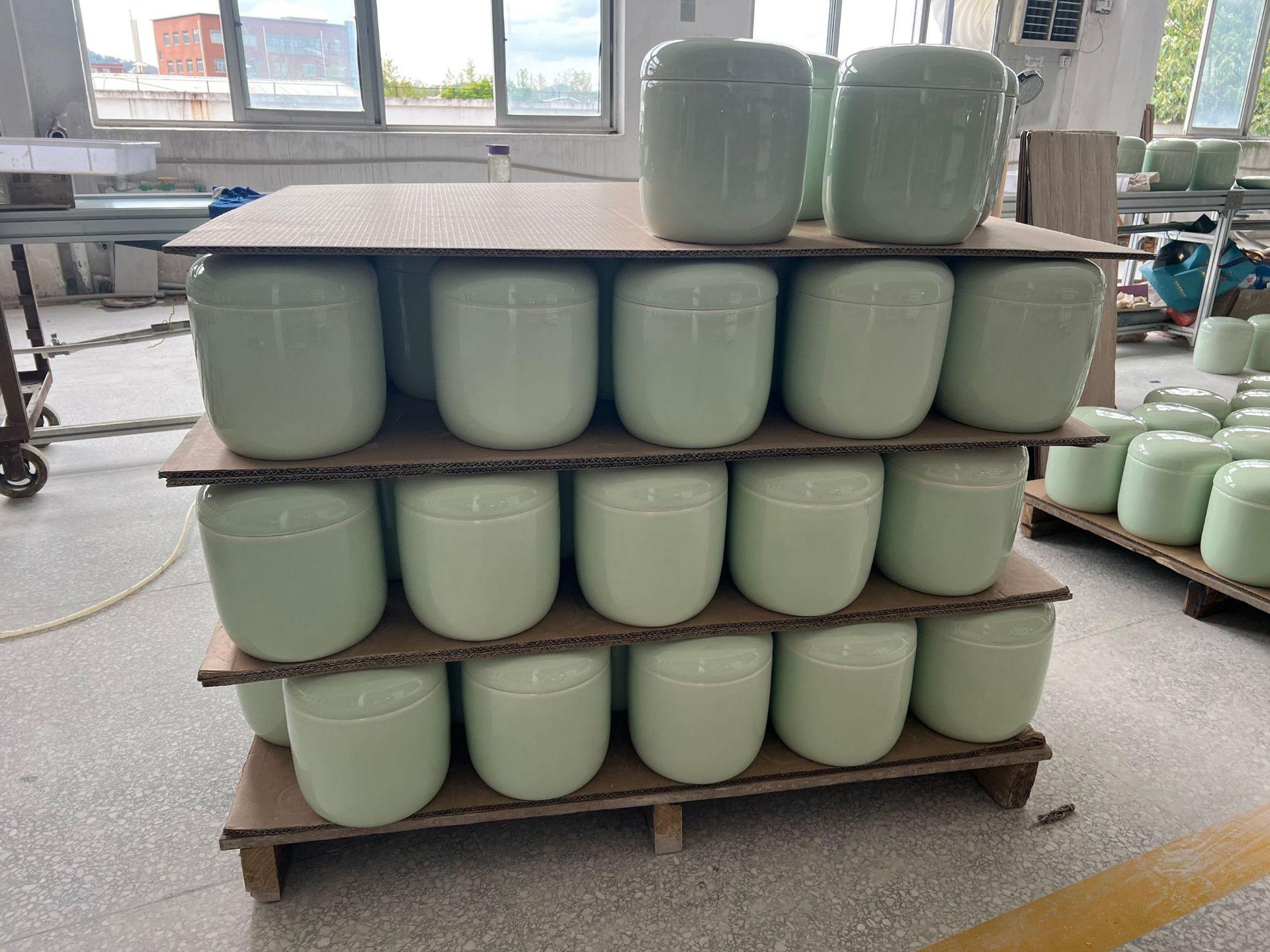Urna de Cerámica Cian Sombra de Jingdezhen Personalizada Urna Tradicional de Cremación Entierro Suministros Funerarios Adornos