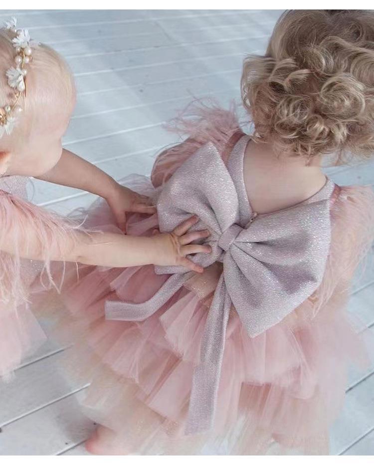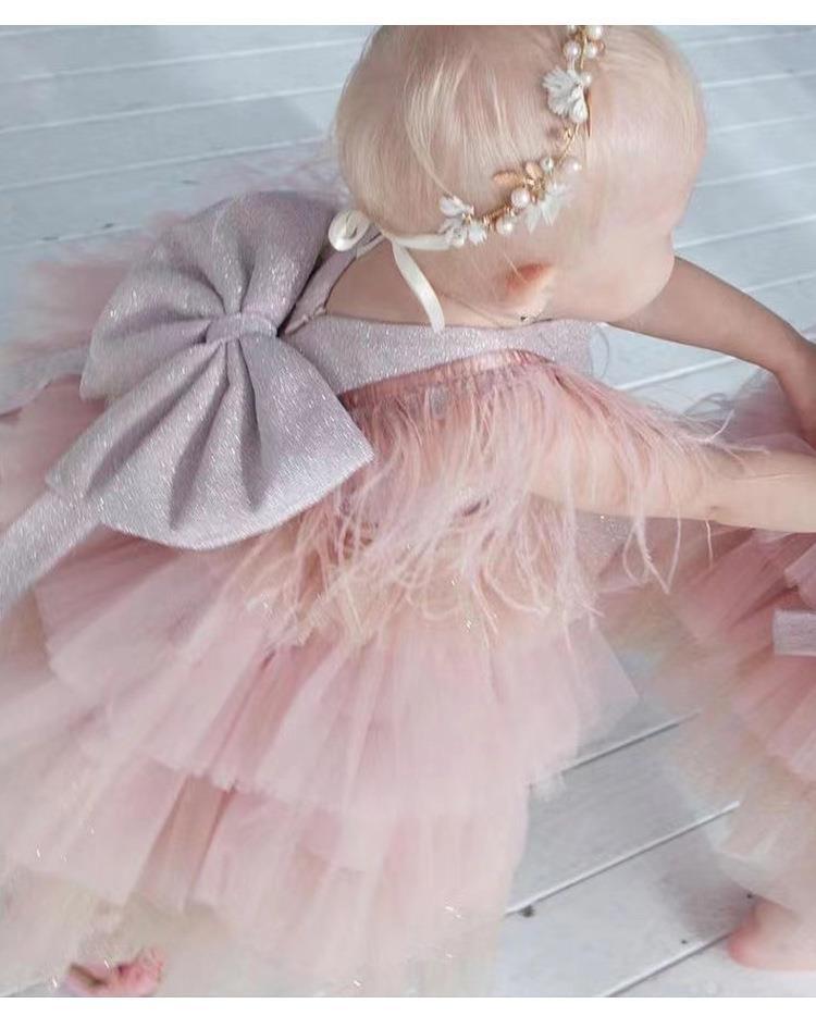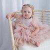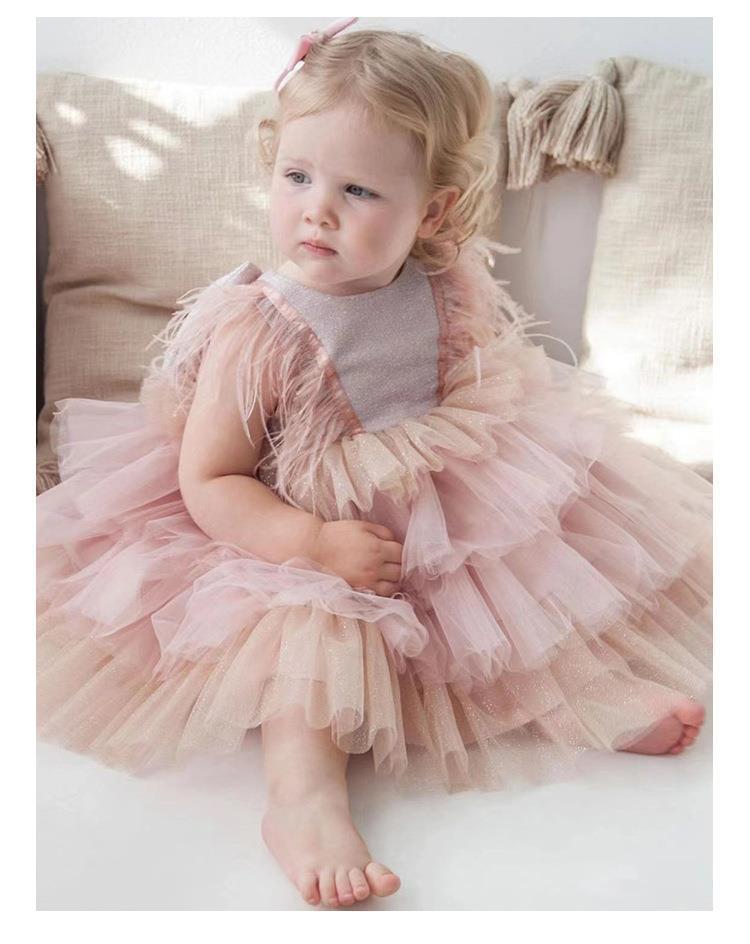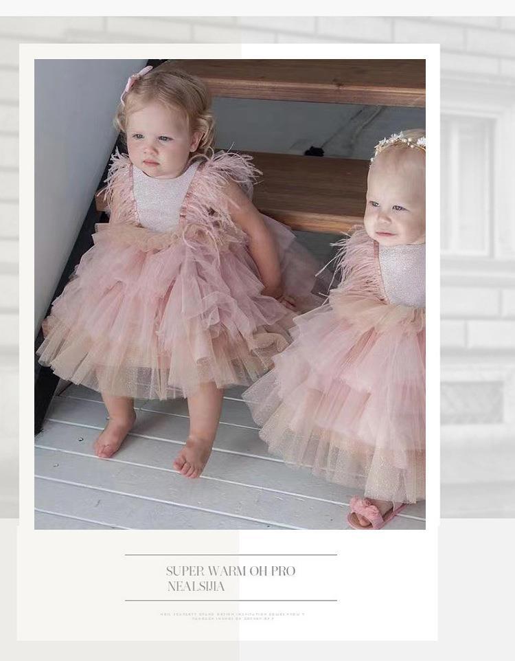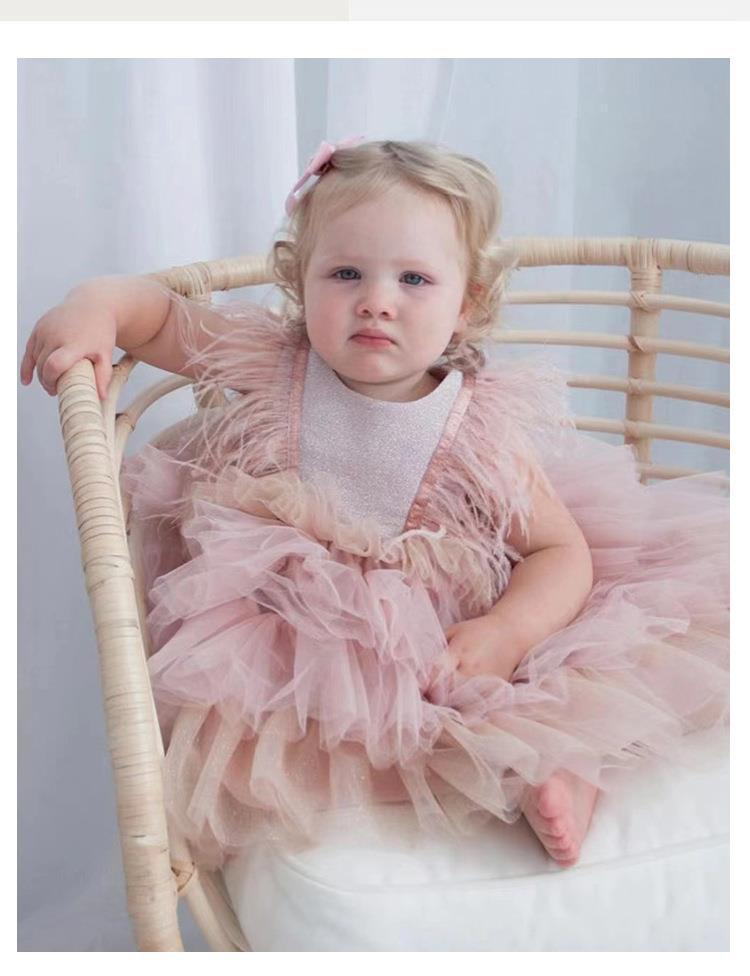 Vestido de niña estilo occidental, vestido de princesa, vestido blanco de flores pequeñas para niña, vestido de cumpleaños infantil de hilo esponjoso para niña de un año