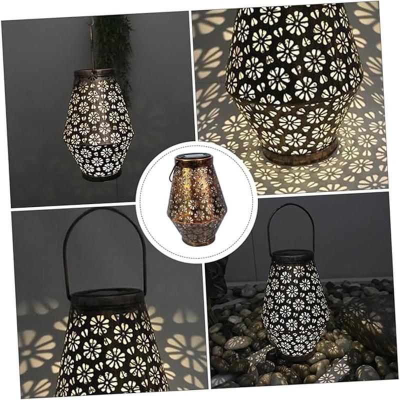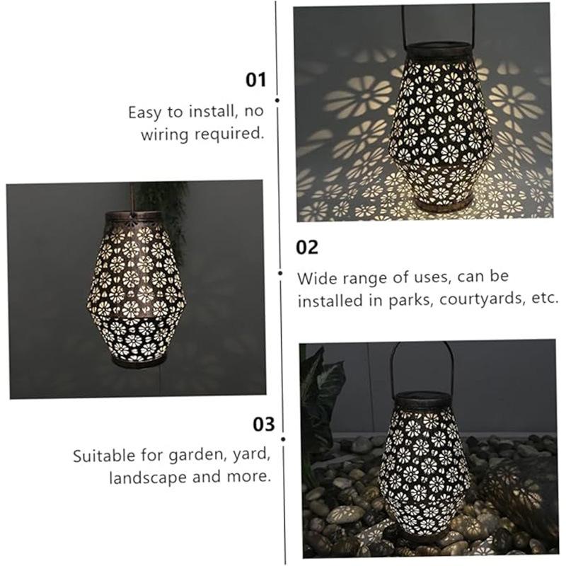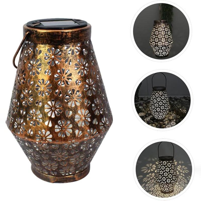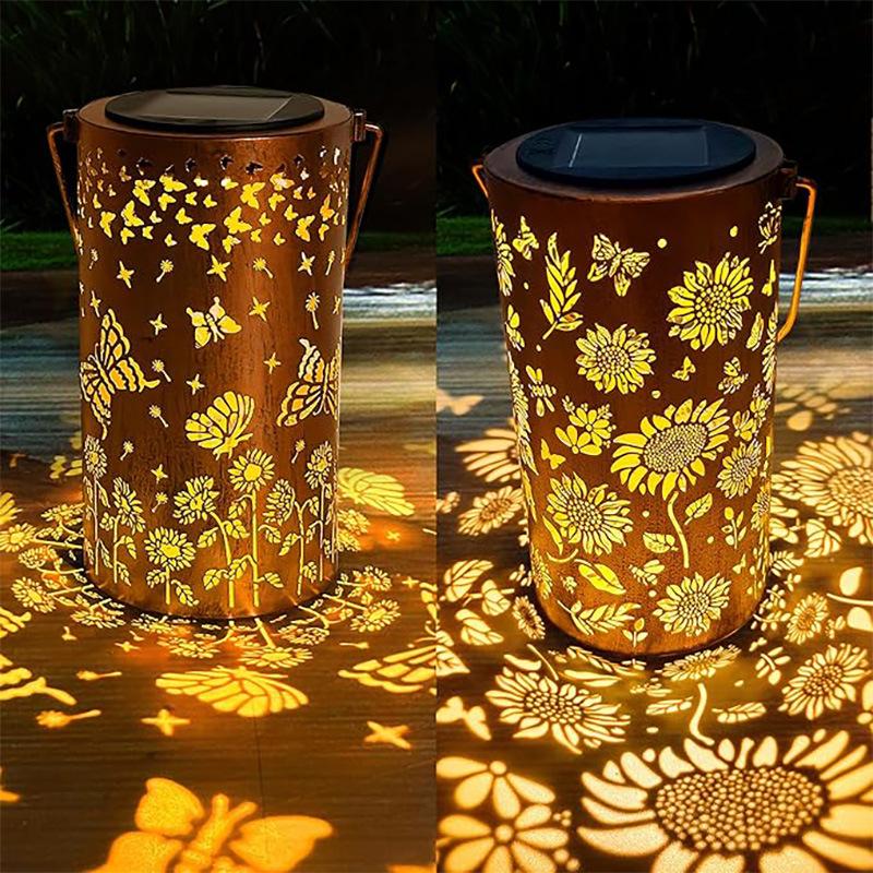 Explosiones transfronterizas lámpara de girasol solar de mariposa lámpara cilíndrica de hierro hueco patio de villa luz fundida lámpara de césped