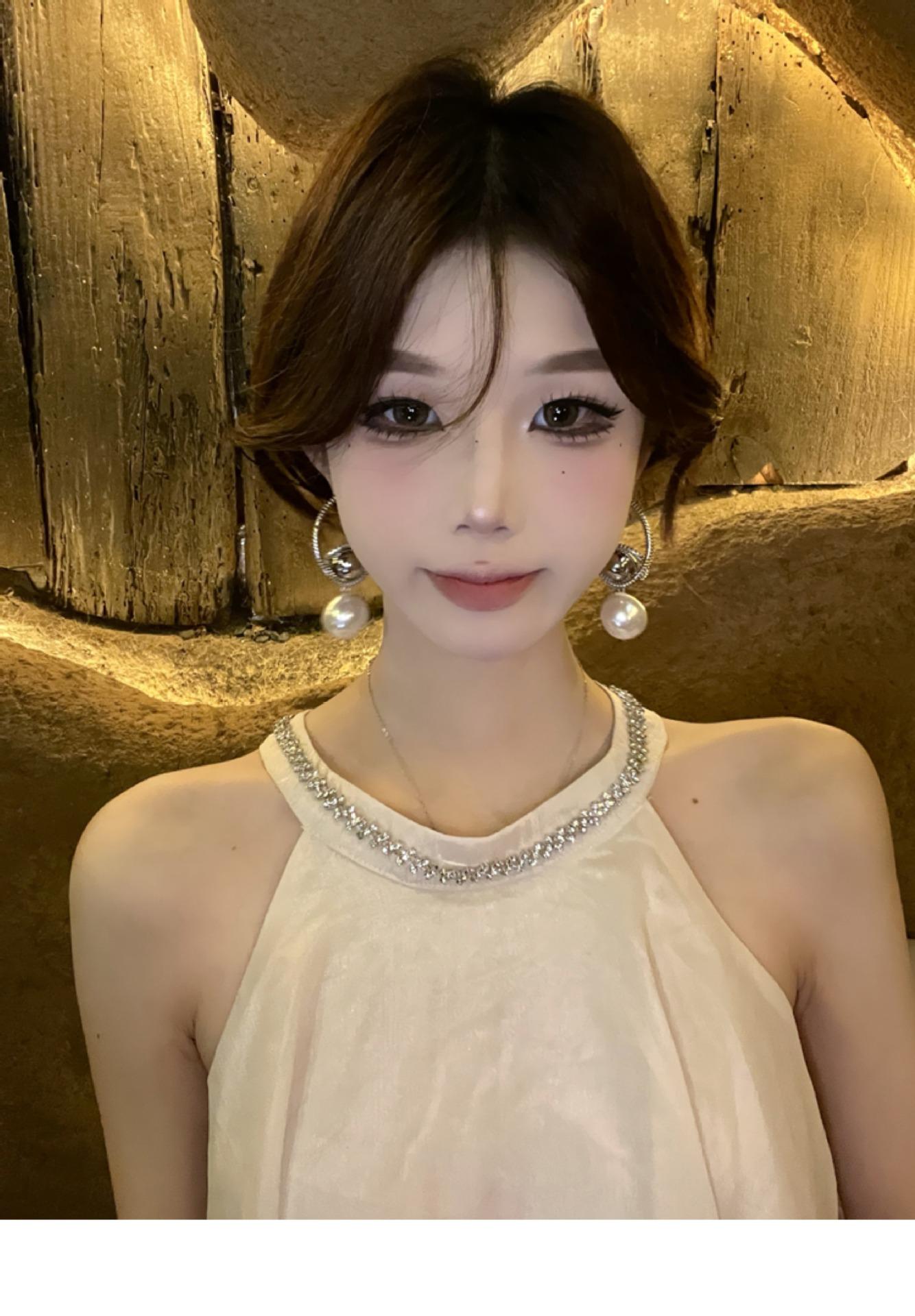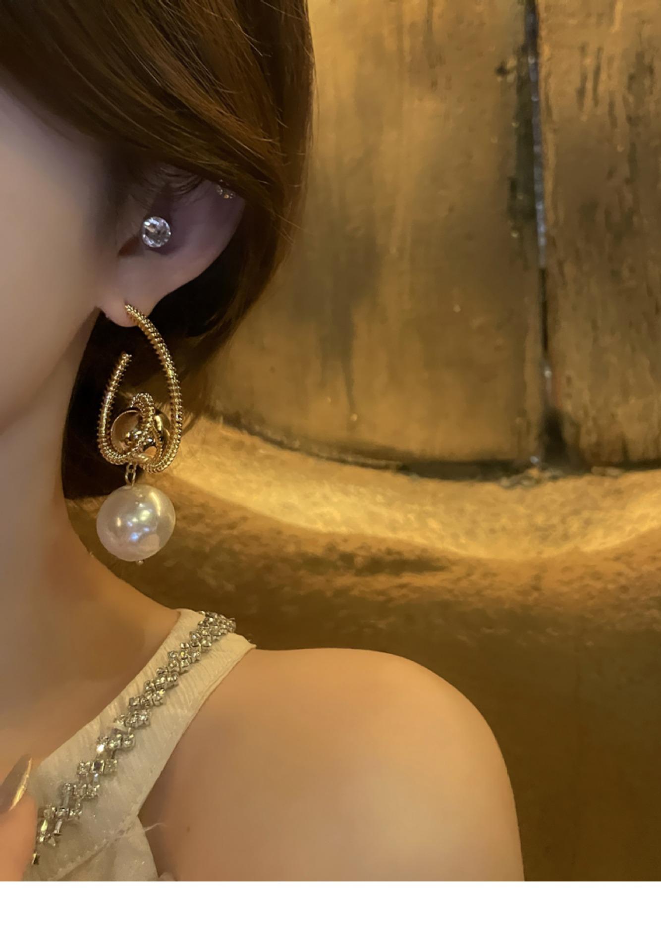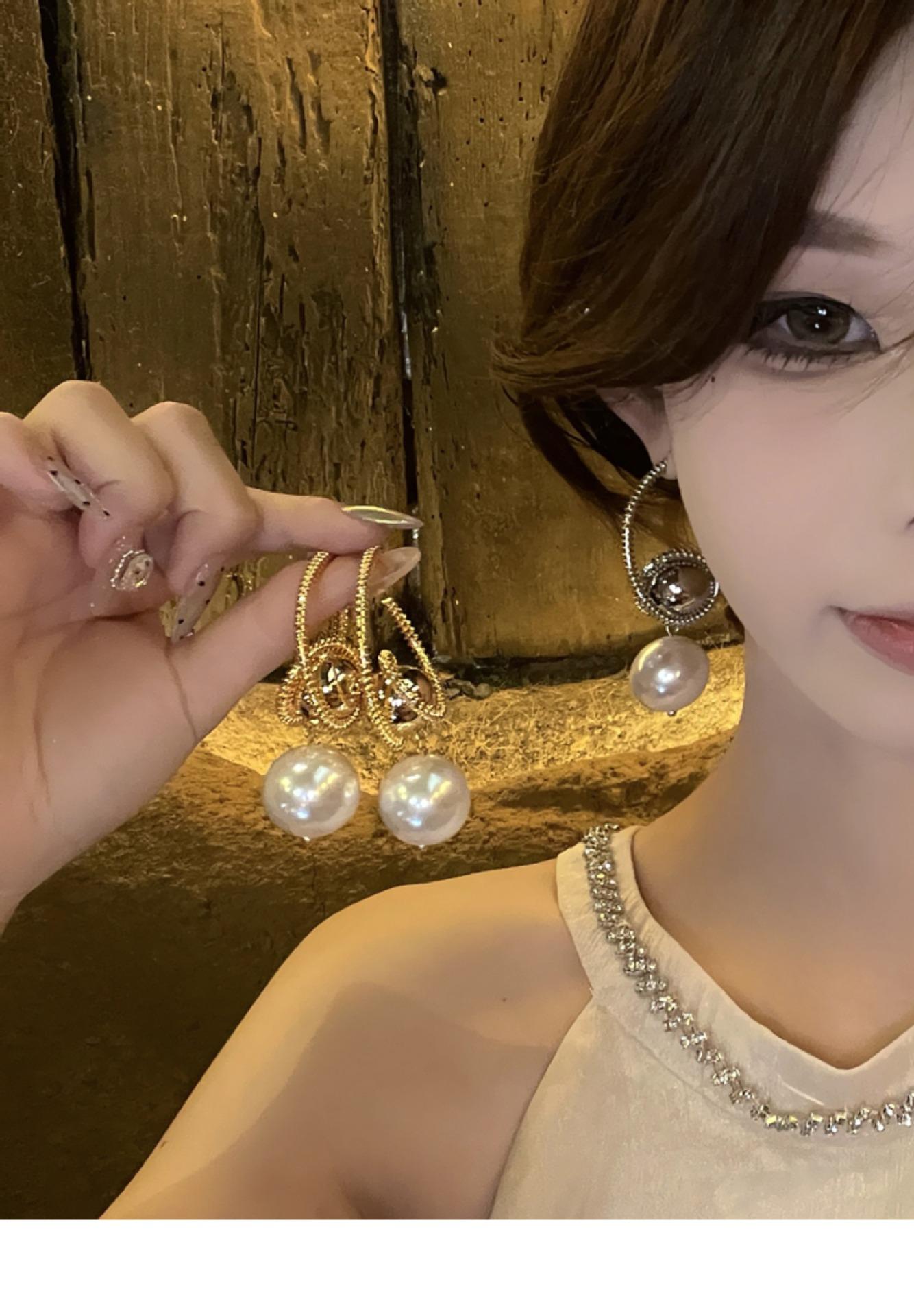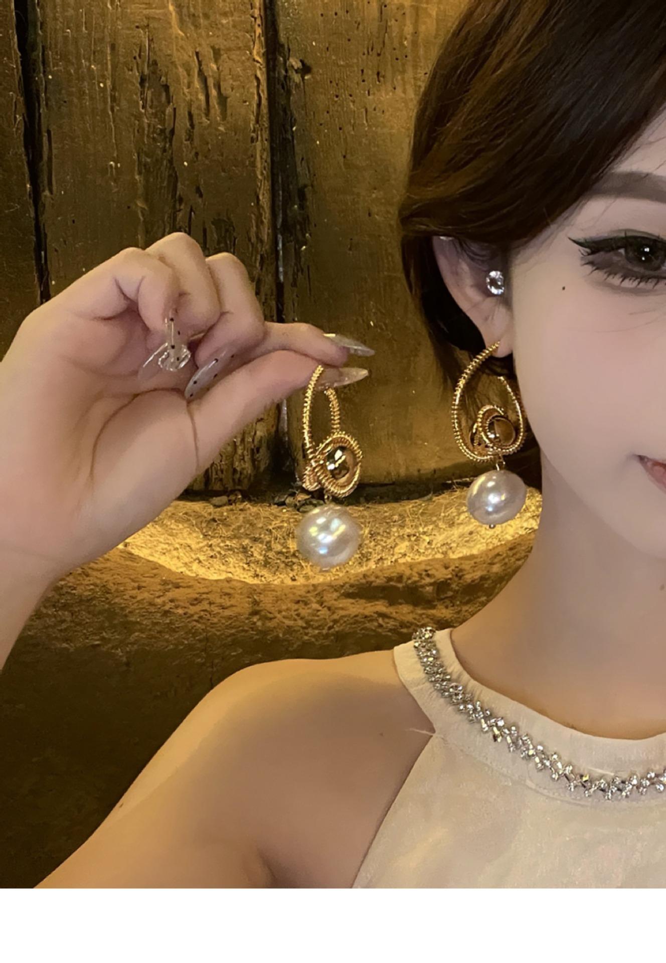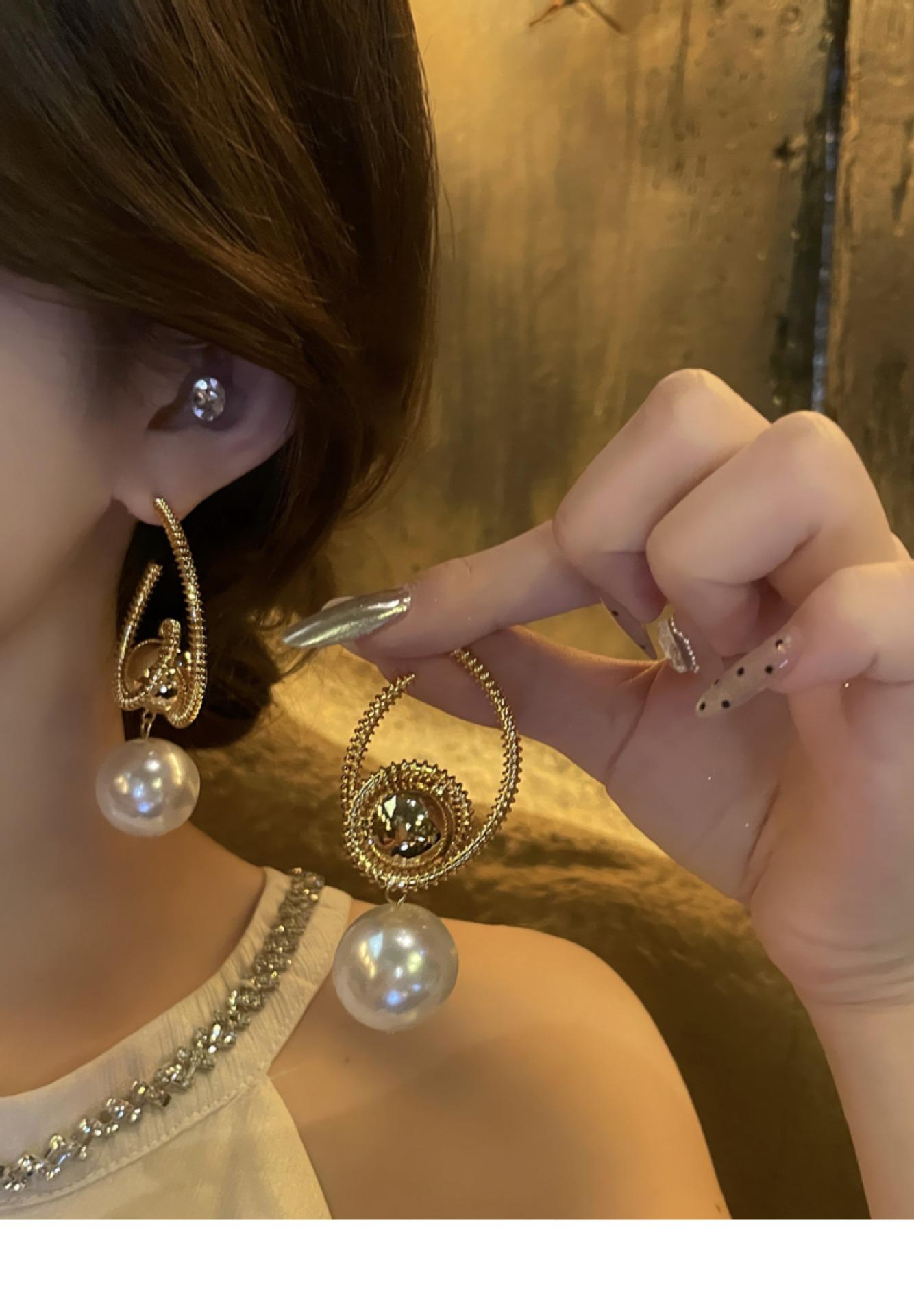 Aretes de Nicho Retro Estilo Europeo y Americano Diseño Exagerado Metal Perla Aretes de Moda Personalidad Aretes de Alta Gama
