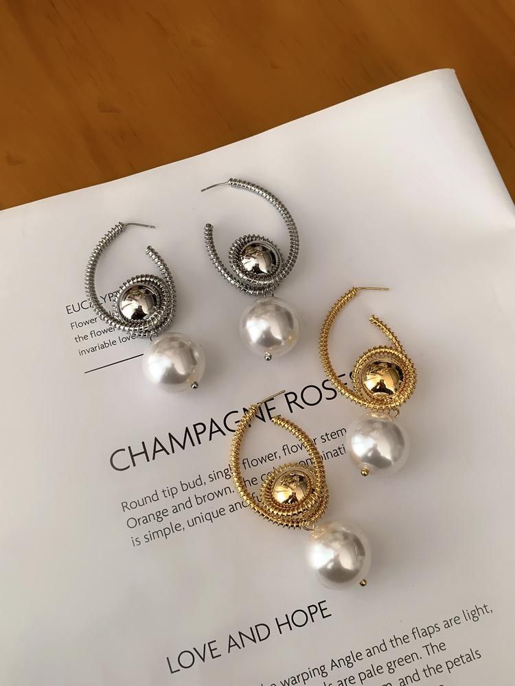 Gold ball pearl earrings (fb1173), Silver ball pearl earrings (fb1129)