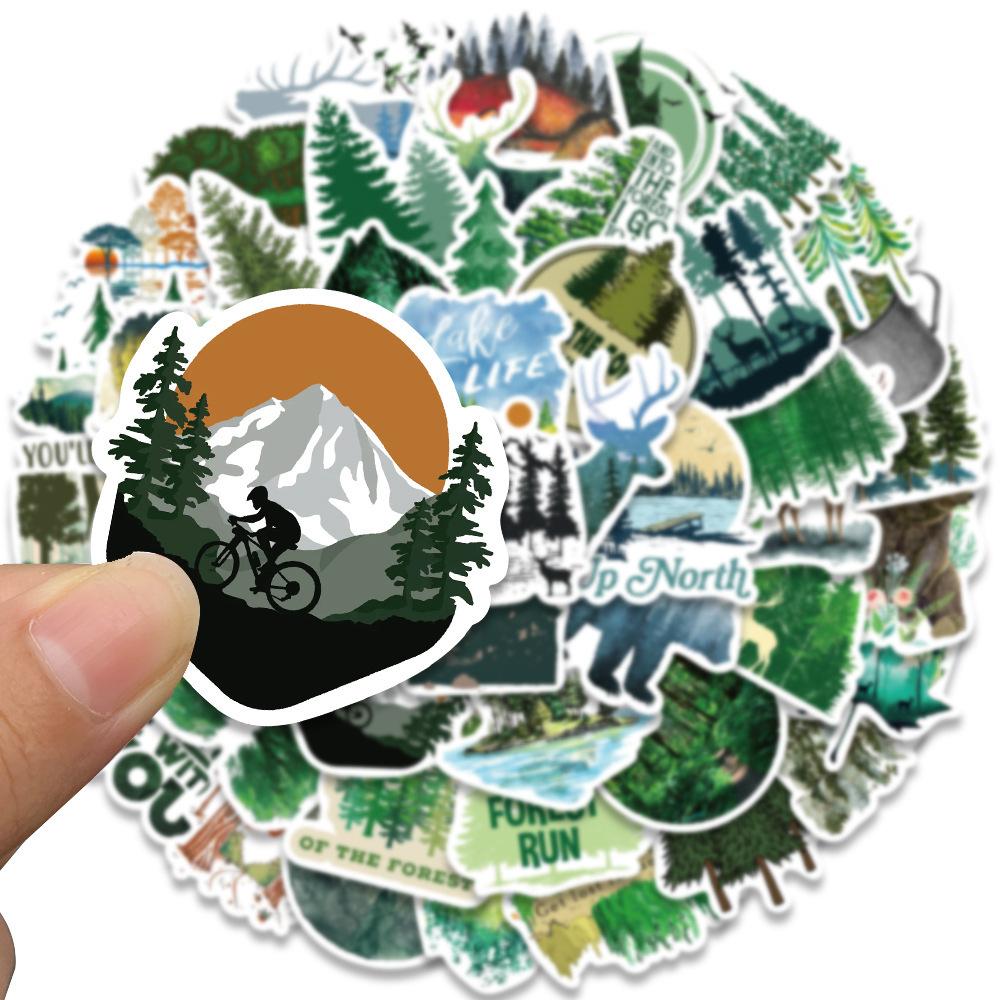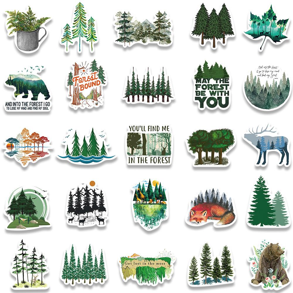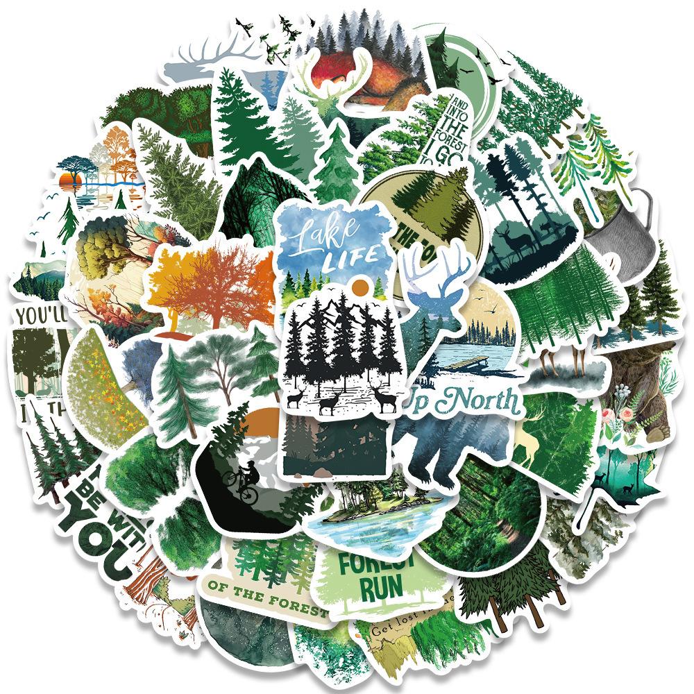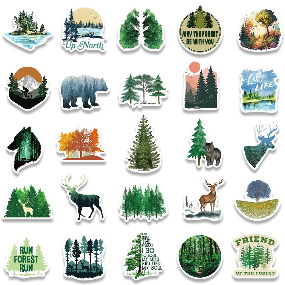 50 pegatinas de grafiti de dibujos animados de bosque salvaje transfronterizo para equipaje, portátil, guitarra, impermeables, para exteriores