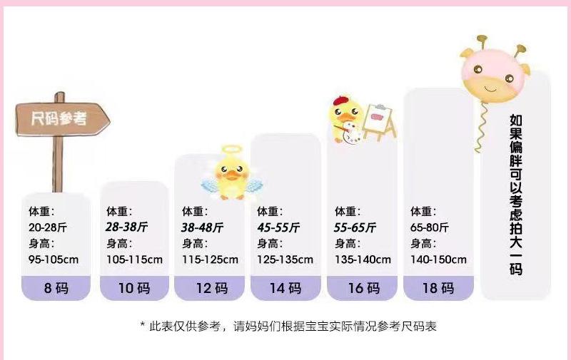 8 size recommended height 90-105cm, 10 size recommended height 105-115cm, 12 size recommended height 115-125cm...