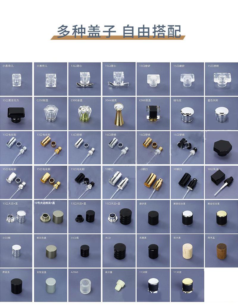 50ml (bottle + nozzle + acrylic cap; transparent; glass, 50ml naked bottle; transparent; glass