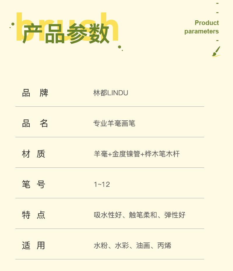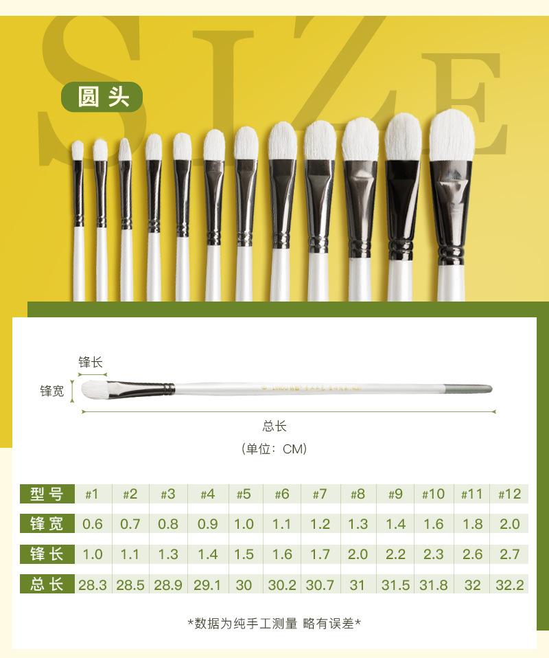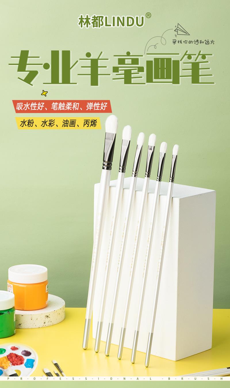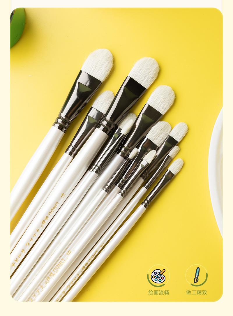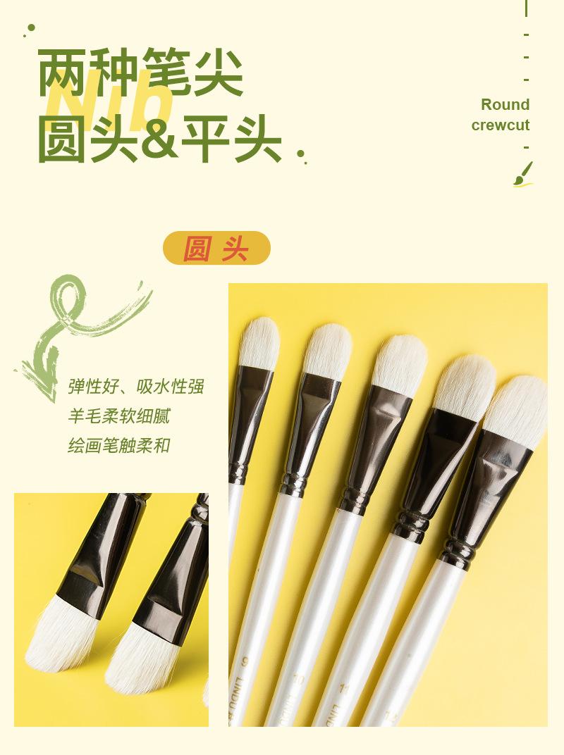 Lindu Juego de Pinceles Redondos de Cabeza Plana de Lana para Pintura al Óleo Gouache Acrílico Acuarela Pelo de Oveja Pincel Individual para Pintura para Principiantes