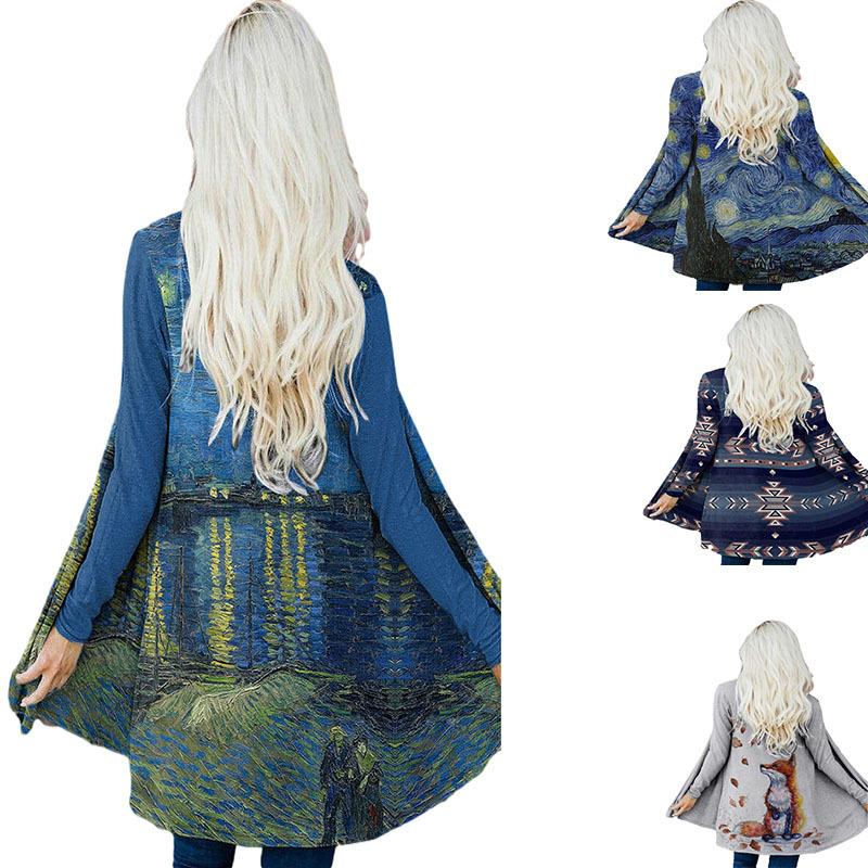Chaqueta de mujer de primavera y otoño de Amazon, estilo europeo y americano, con estampado de elementos étnicos, cárdigan de manga larga, chaqueta ajustada para mujer