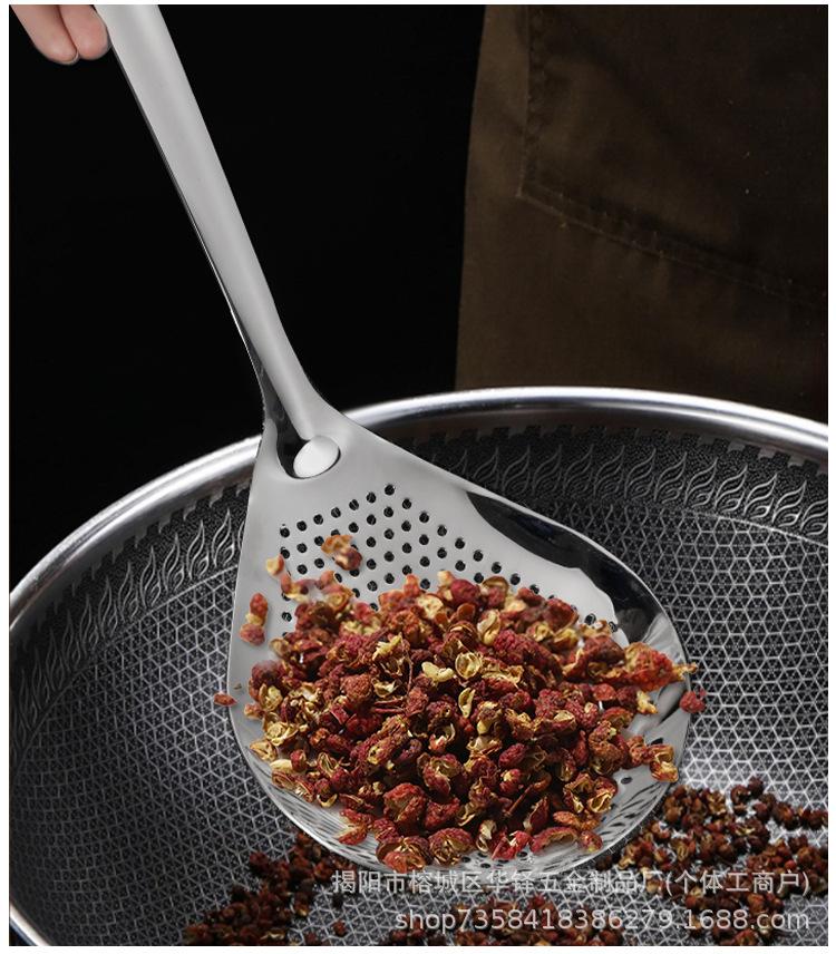 Colador de acero inoxidable 304, venta al por mayor, filtro de aceite para cocina, cuchara de red para escurrir fideos, cuchara de filtro para escurrir, red para derrames fritos.