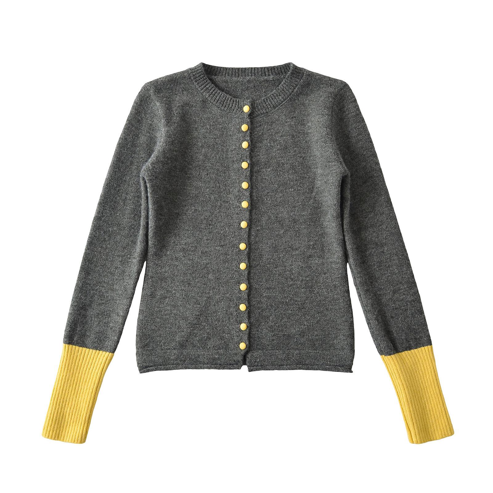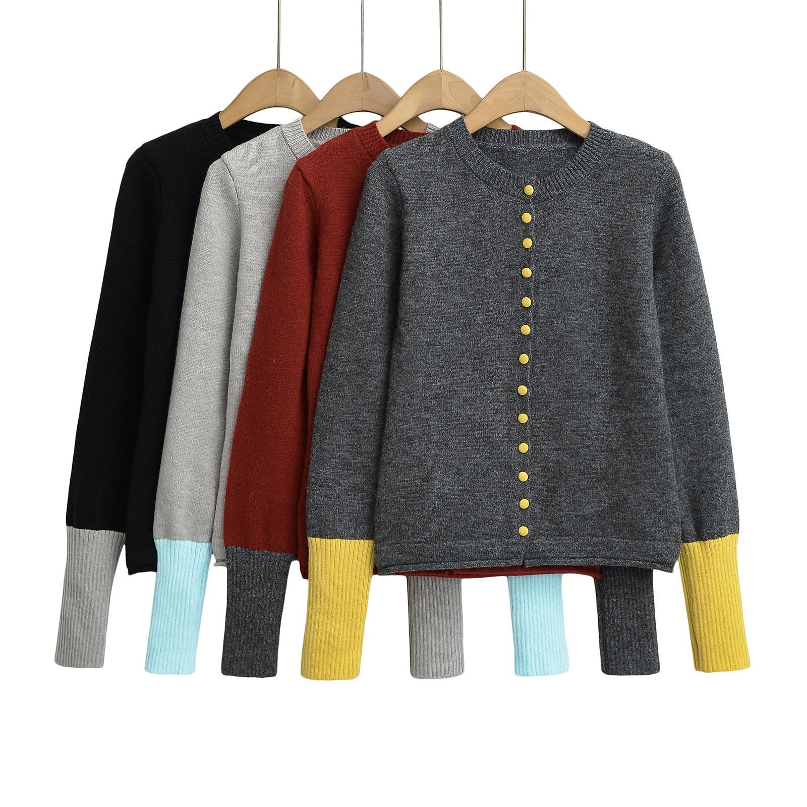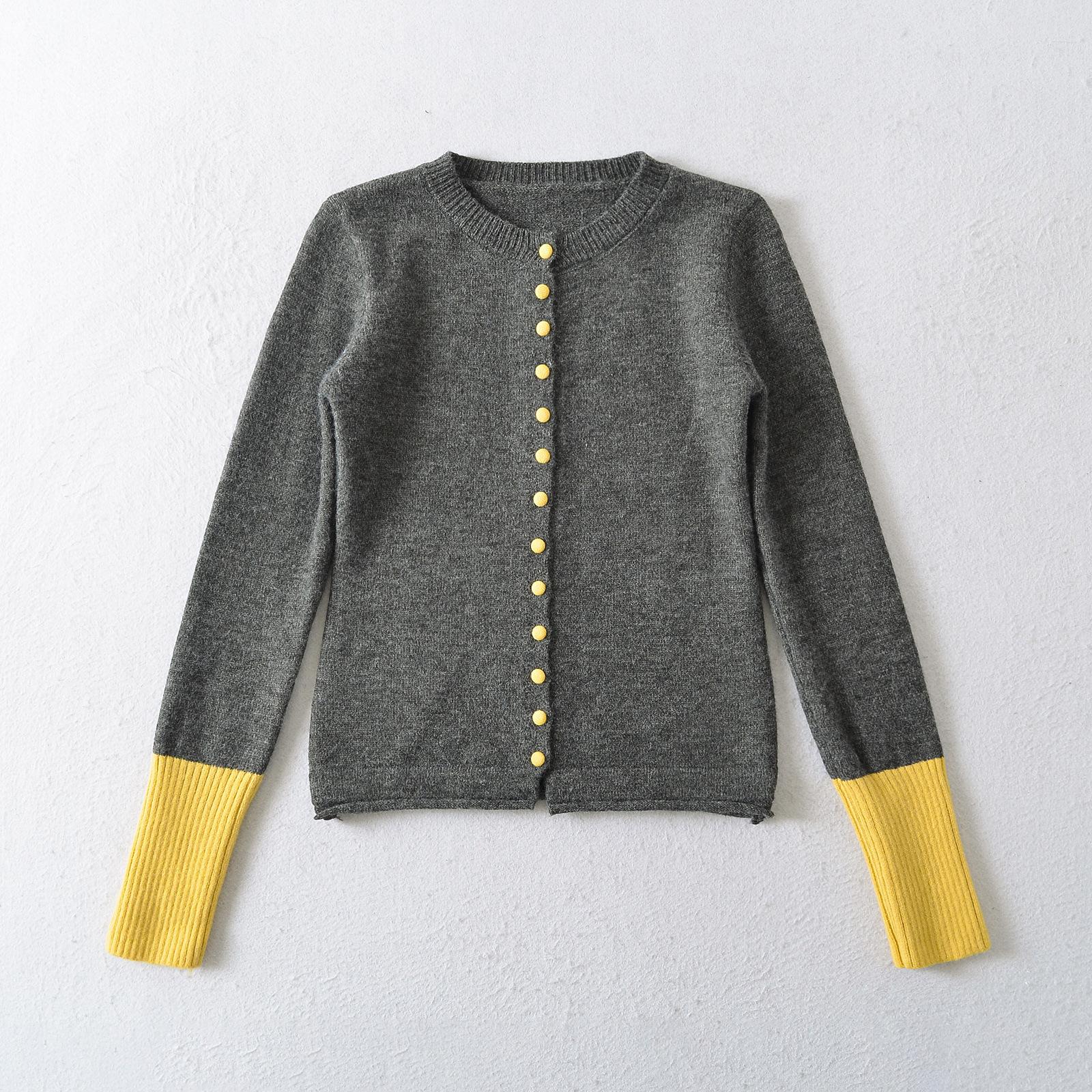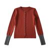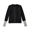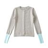 Suéter de contraste ajustado europeo y americano 2025 para mujer, nuevo cárdigan suave y encerado de principios de primavera, top de punto de manga larga con cuello redondo