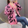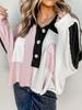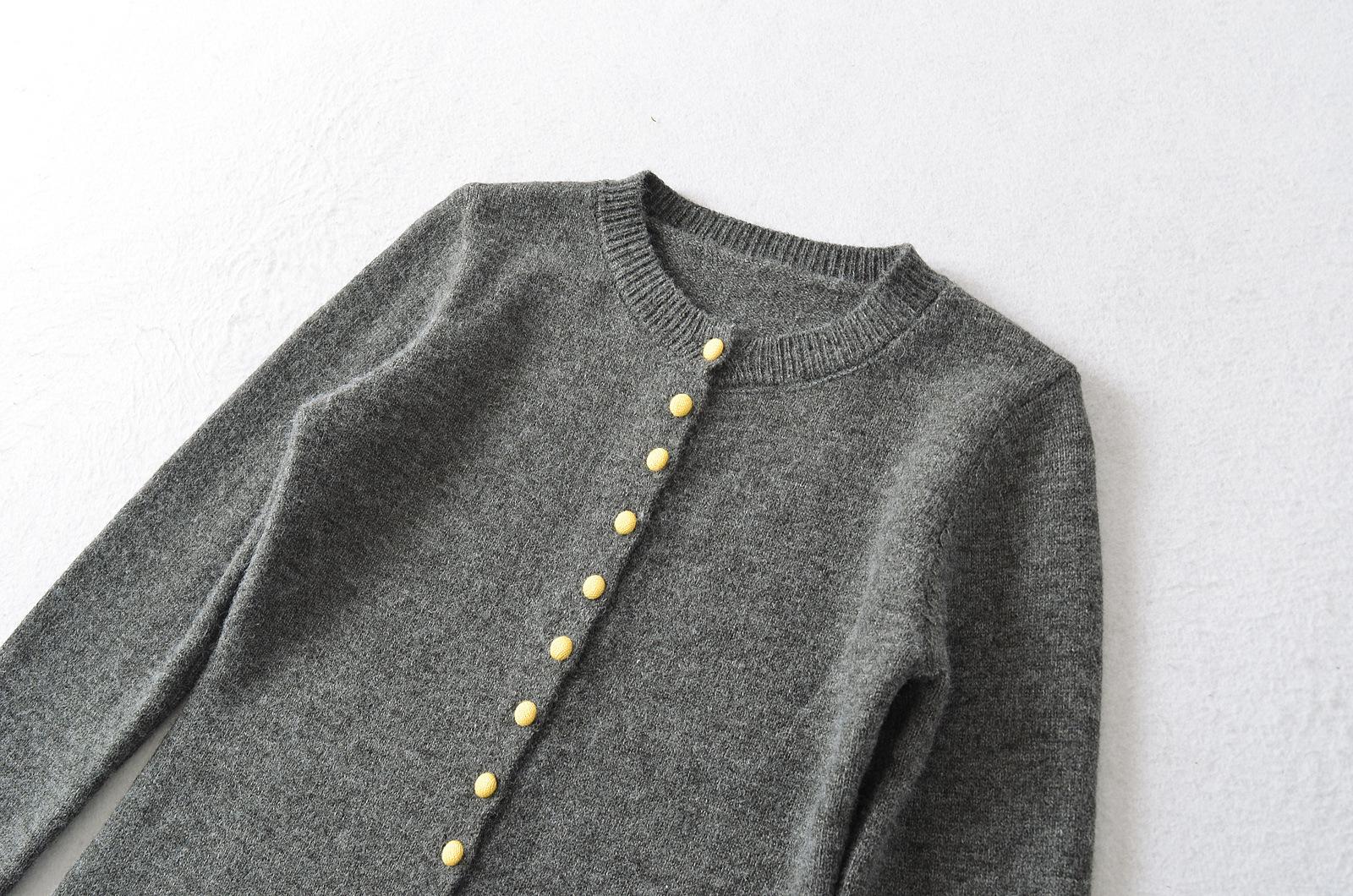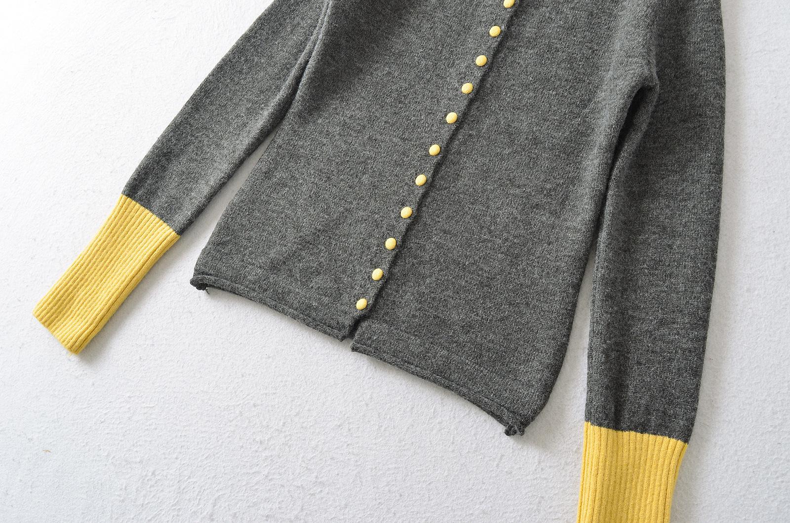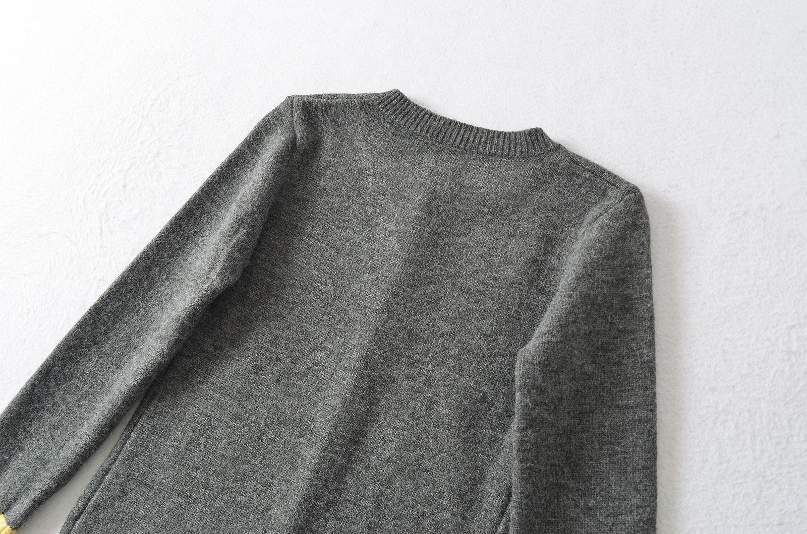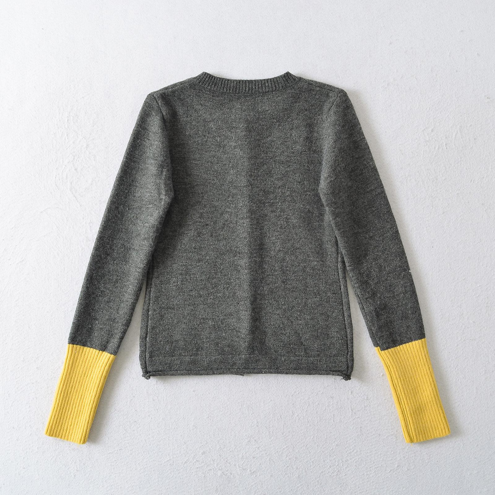Suéter de contraste ajustado europeo y americano 2025 para mujer, nuevo cárdigan suave y encerado de principios de primavera, top de punto de manga larga con cuello redondo