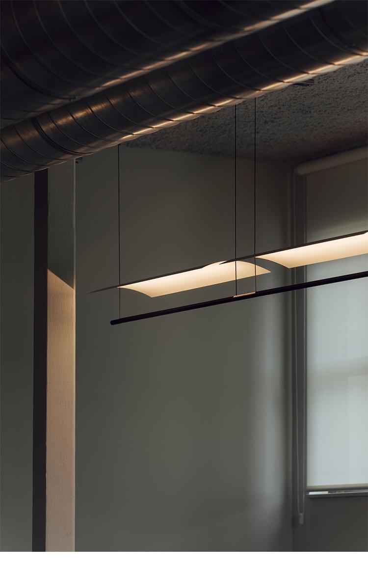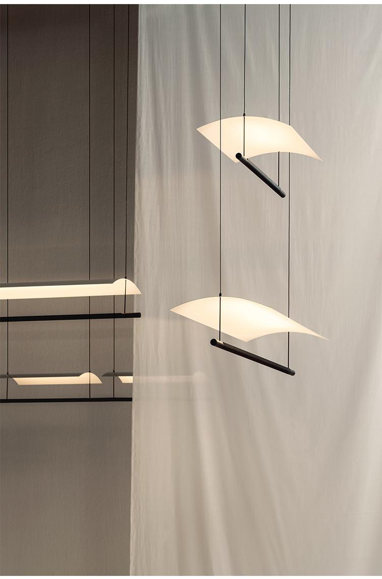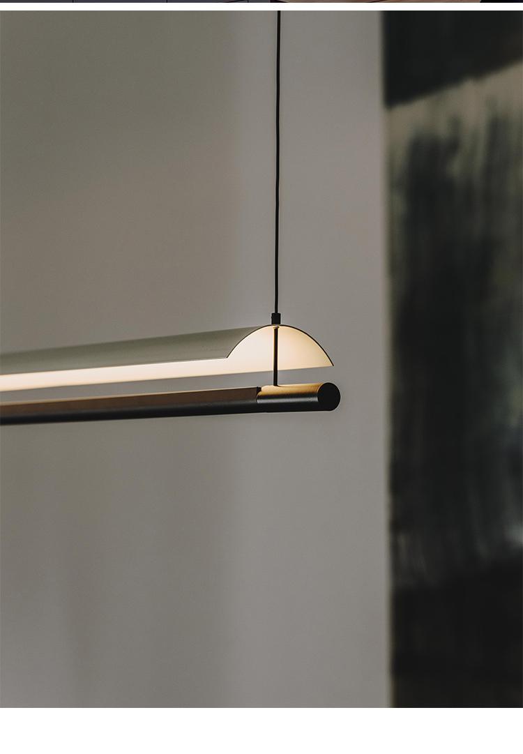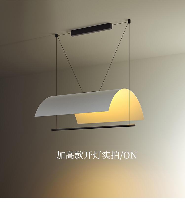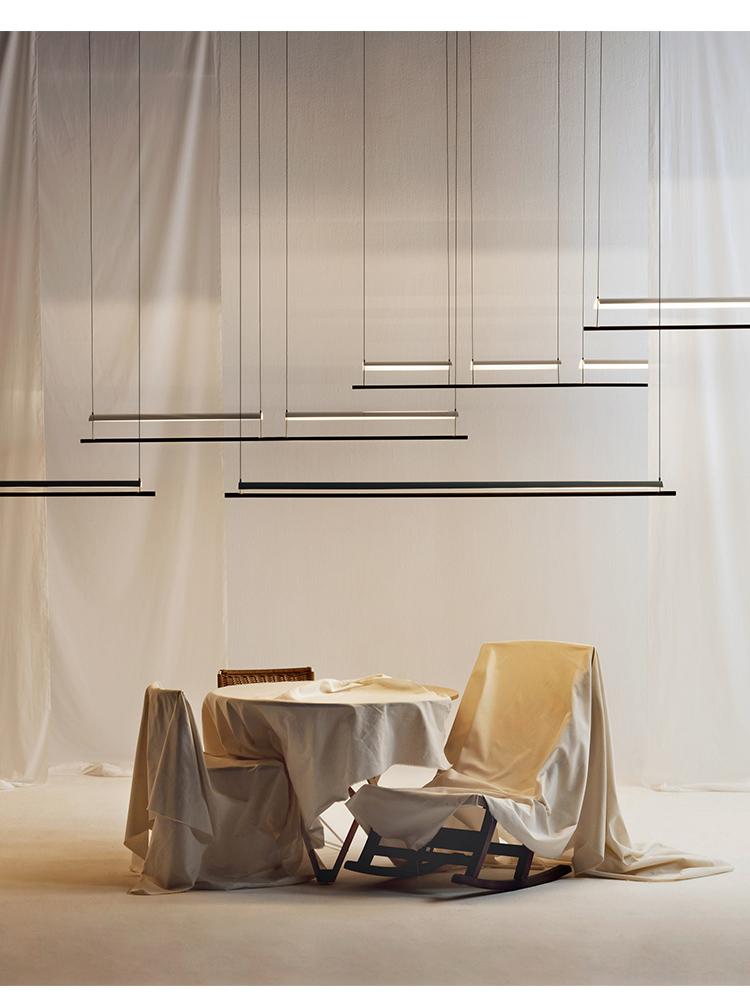 Lámpara de restaurante minimalista, lámpara de araña de lujo con nota artística, lámpara de tira larga creativa de diseñador, lámpara de línea de barra de mesa de comedor de una palabra