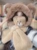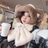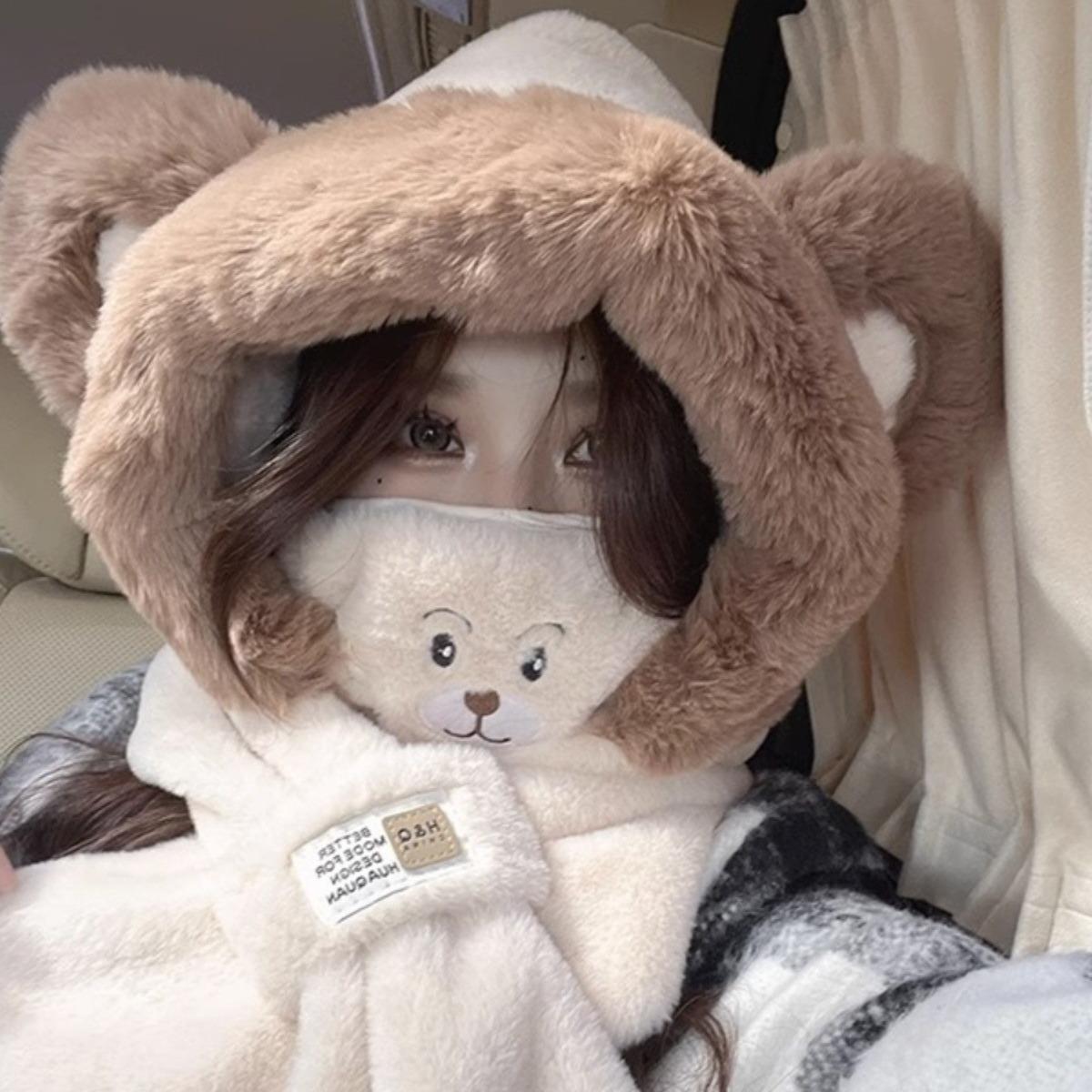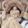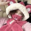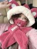 Gorro con orejas de oso de fresa, bufanda, máscara, cálido y resistente al frío, gorro Lei Feng para mujer, protección para las orejas de invierno, gorro de montar