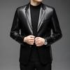 Chaqueta de hombre, chaqueta juvenil, ropa de hombre, chaqueta de cuero PU con cuello alto y corte entallado, chaqueta de primavera para hombre
