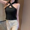 Compra Chaleco de verano 2023, pequeño, sexy, negro, adelgazante, combinable con todo, de punto cruzado con tirantes en el ombligo para mujer al por mayor en Joom.pro