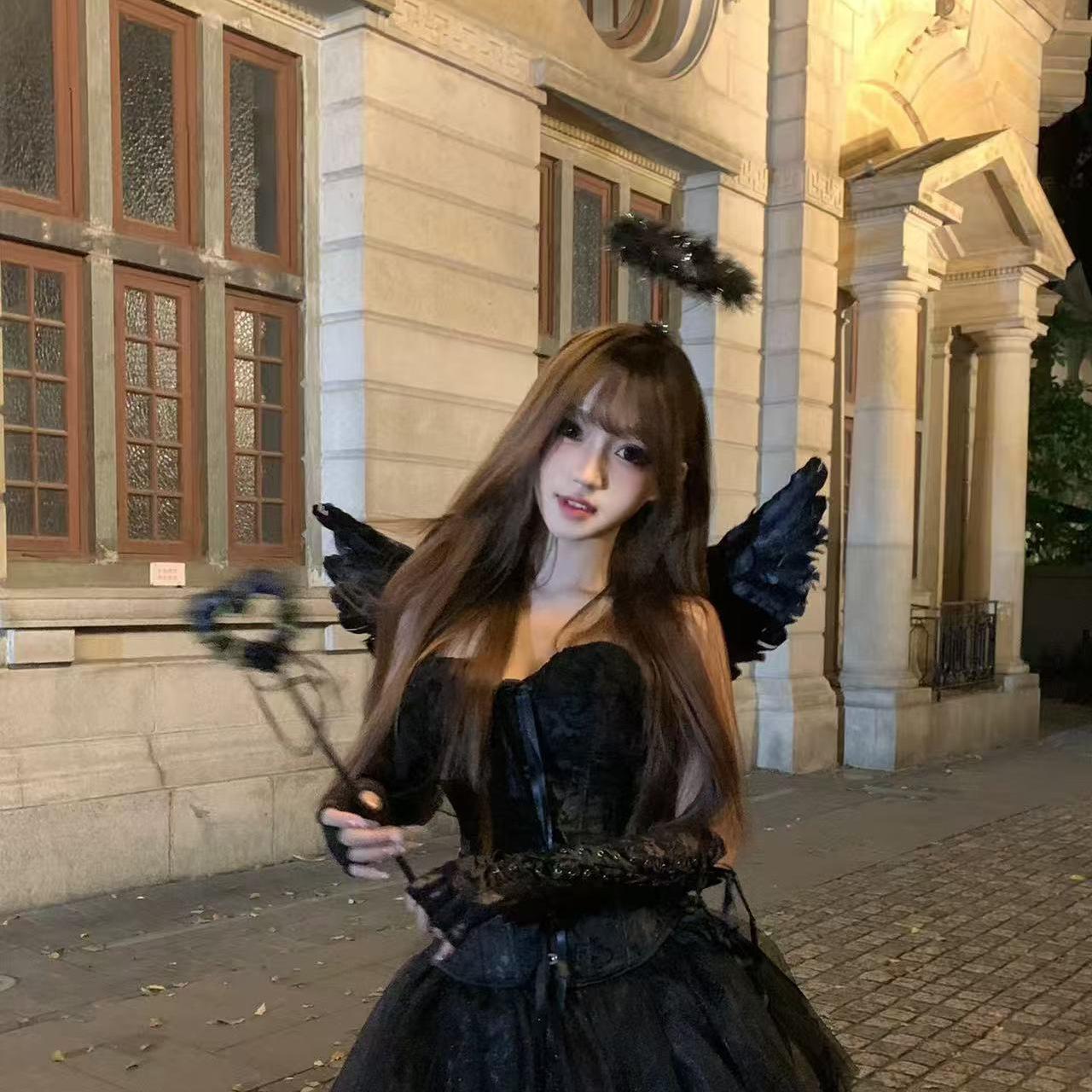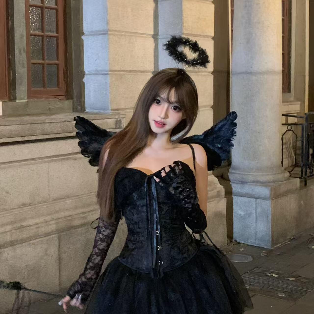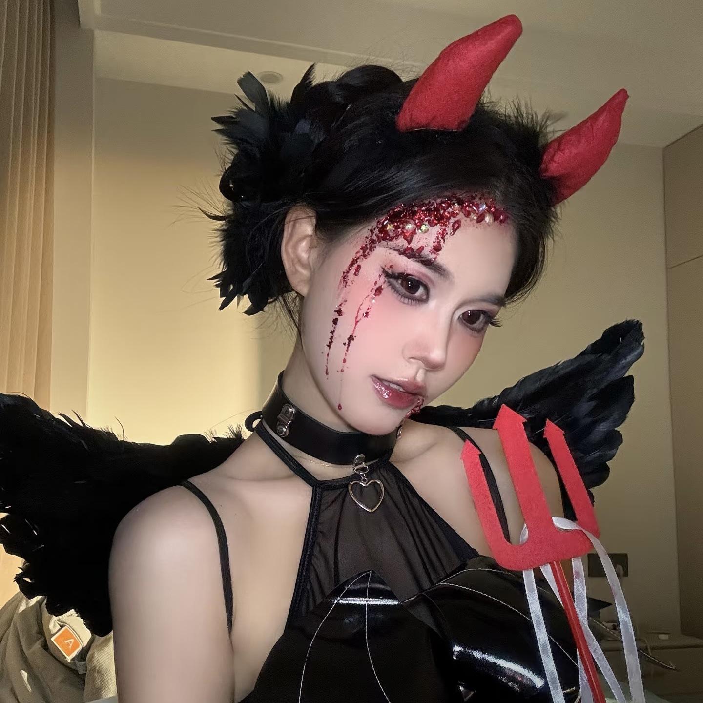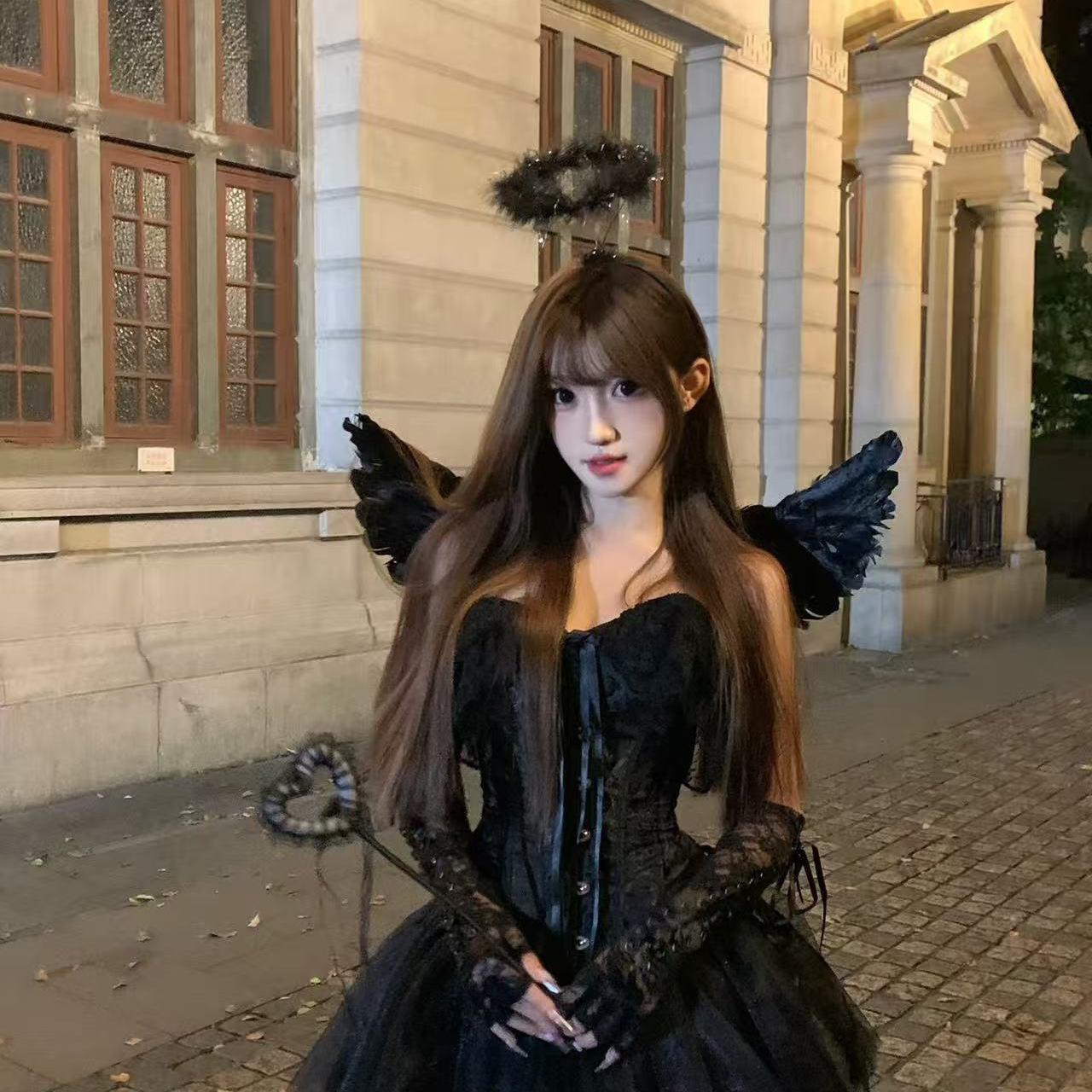 Disfraz de Fiesta de Halloween Tocado Alas de Ángel Accesorios Estilo Oscuro Accesorios para el Cabello Diadema de Diablo Bidimensional Aro para la Cabeza