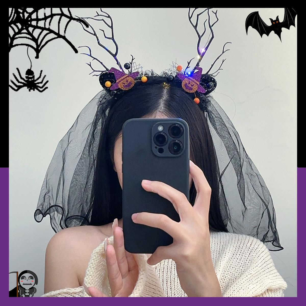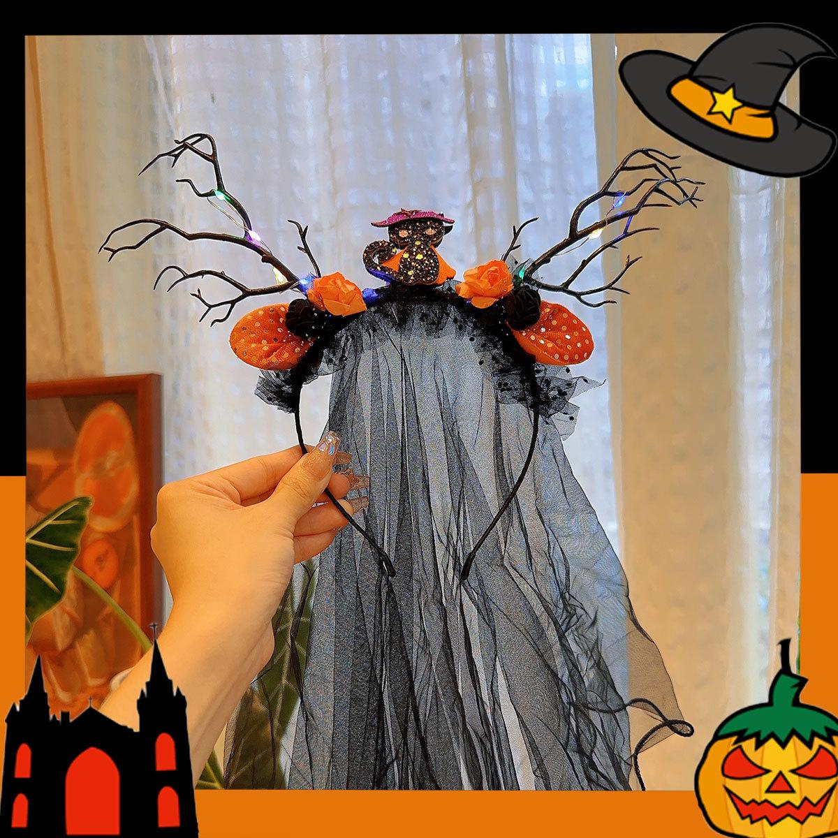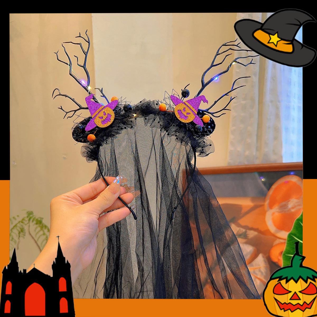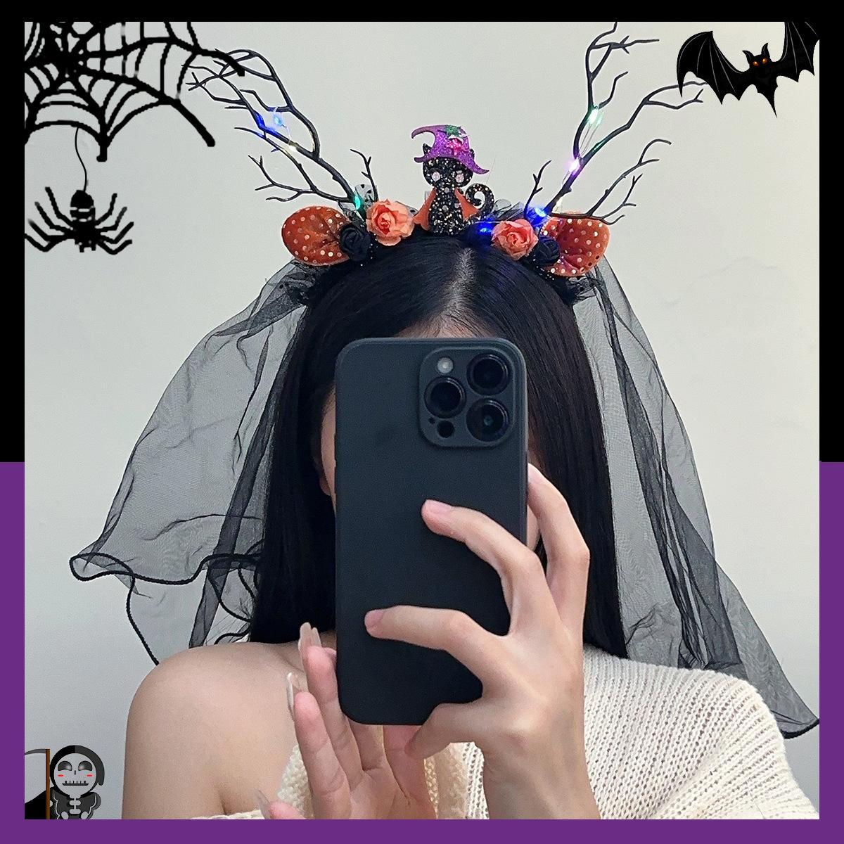 Purple hat pumpkin veil headband (glow) (gd522), Pumpkin butterfly veil headband (luminous) (gd523), Black cat...