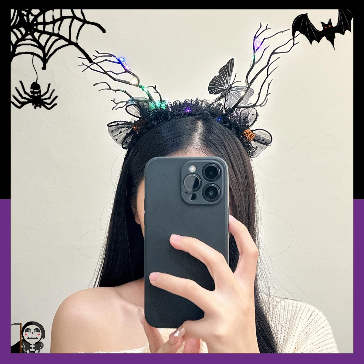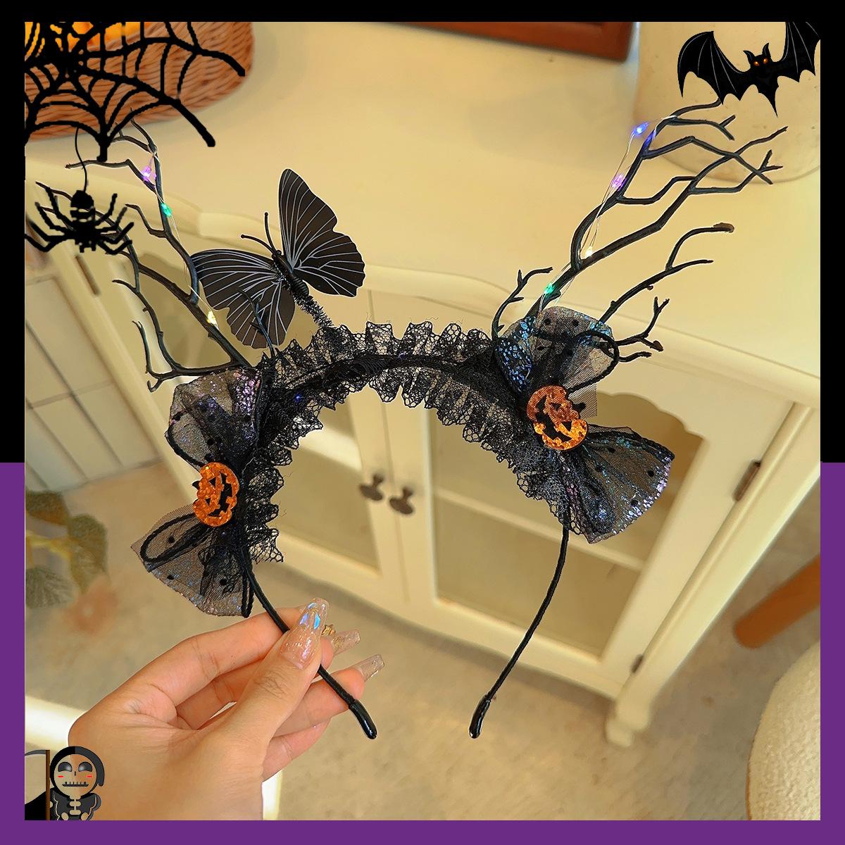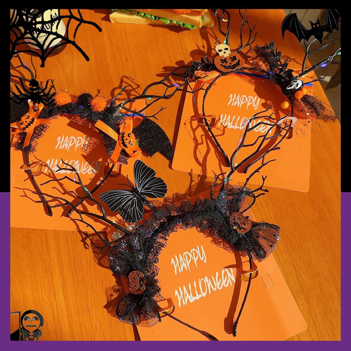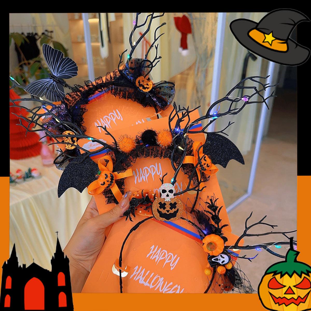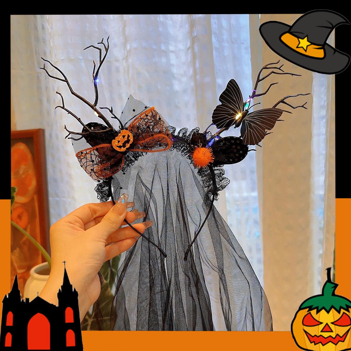 Purple hat pumpkin veil headband (glow) (gd522), Pumpkin butterfly veil headband (luminous) (gd523), Black cat...