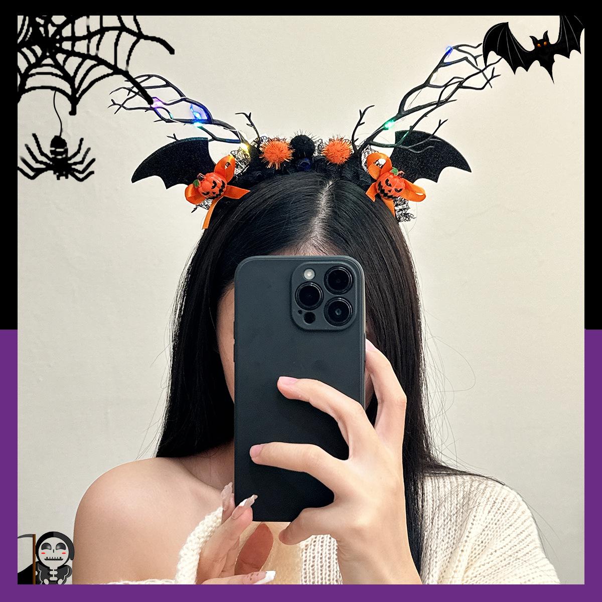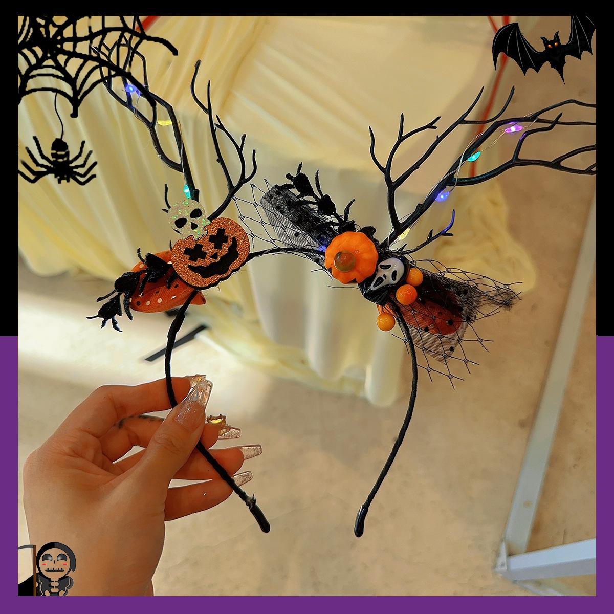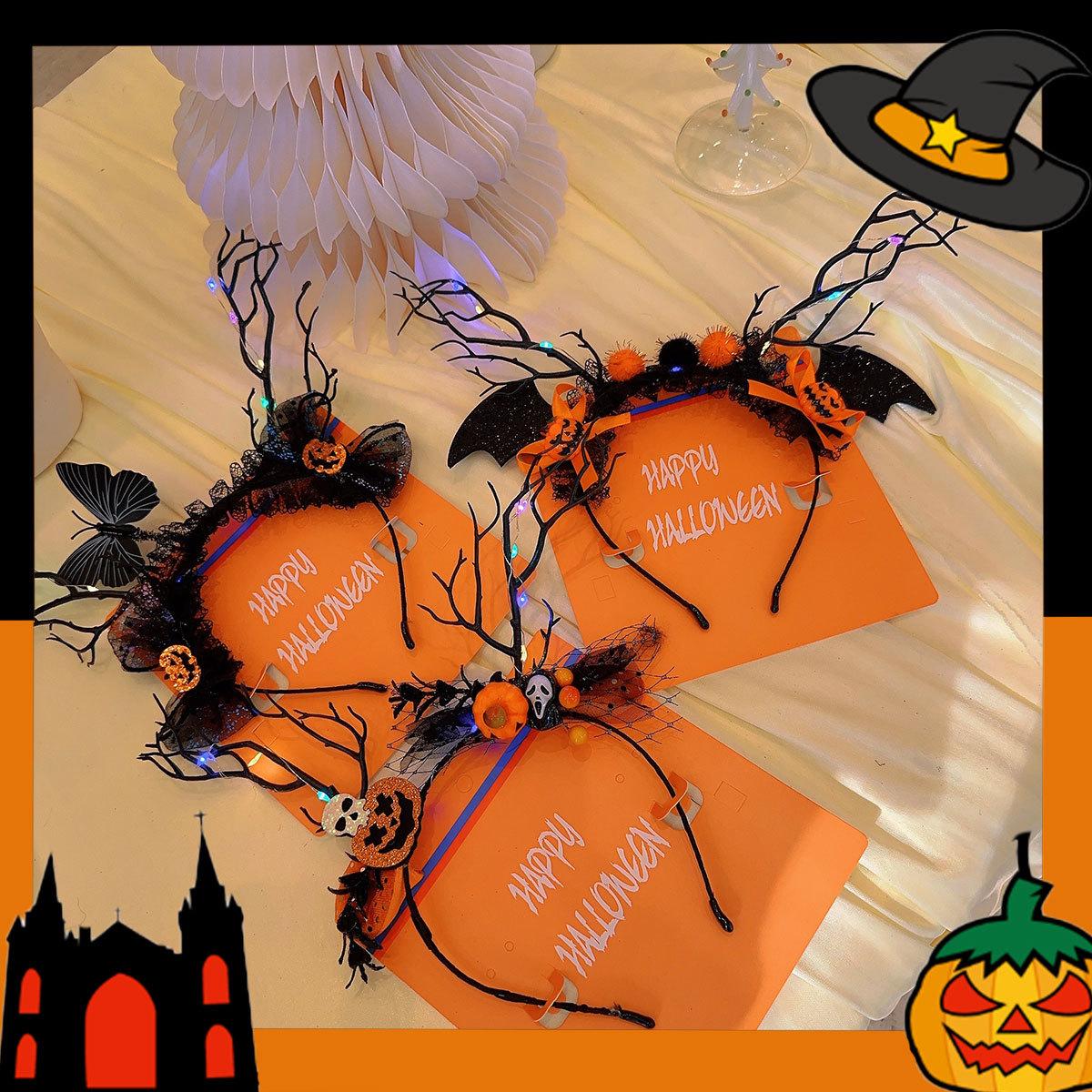 Diadema luminosa de astas de calabaza para Halloween, accesorios para fotos divertidos, diadema para el cabello, adornos para tarjetas para el cabello