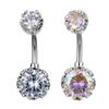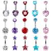 Nombre: Joyería de perforación corporal de comercio exterior, anillo de ombligo con flor de diamante, uña de ombligo con flor de cinco pétalos de circón estrella de cinco puntas popular europea y americana