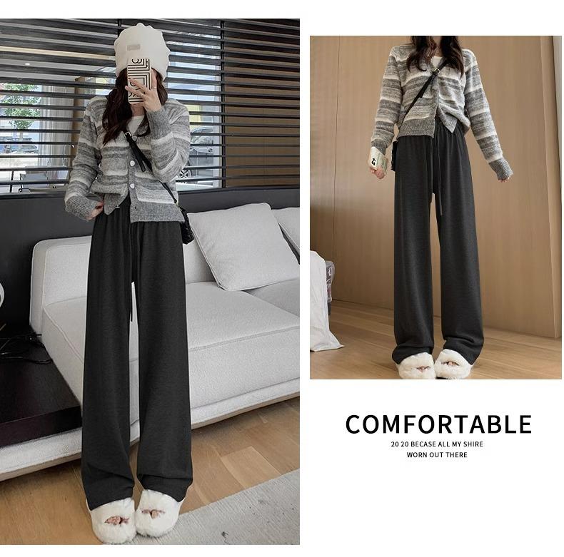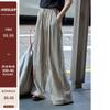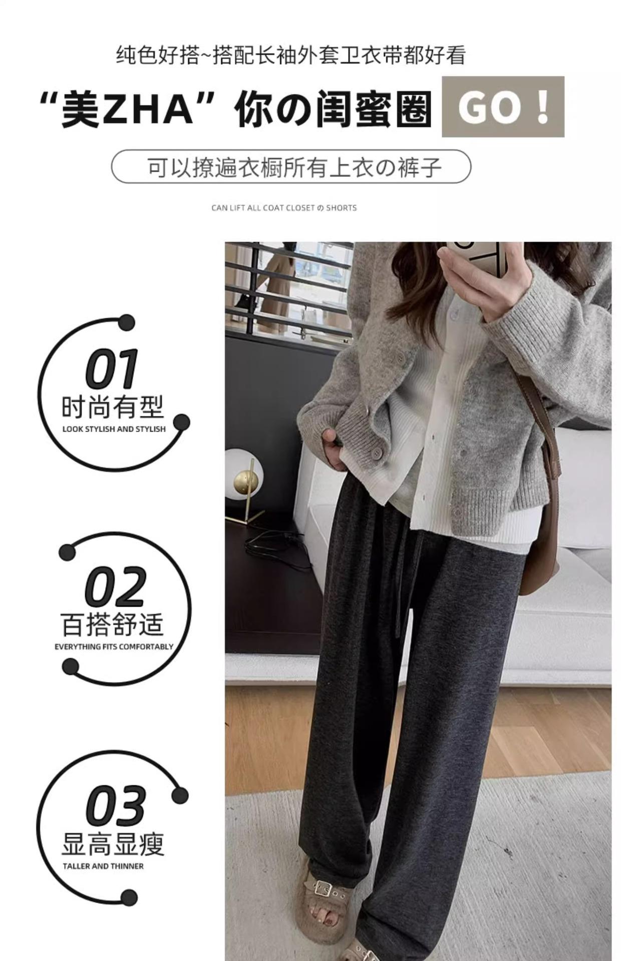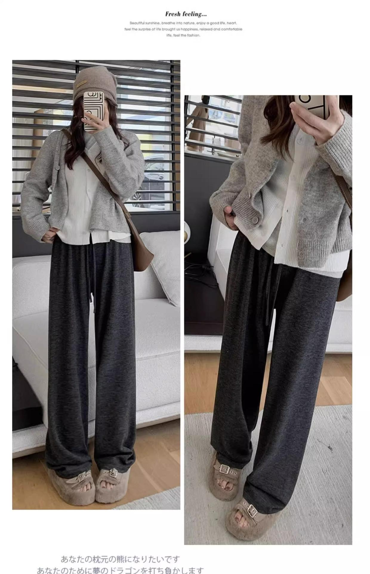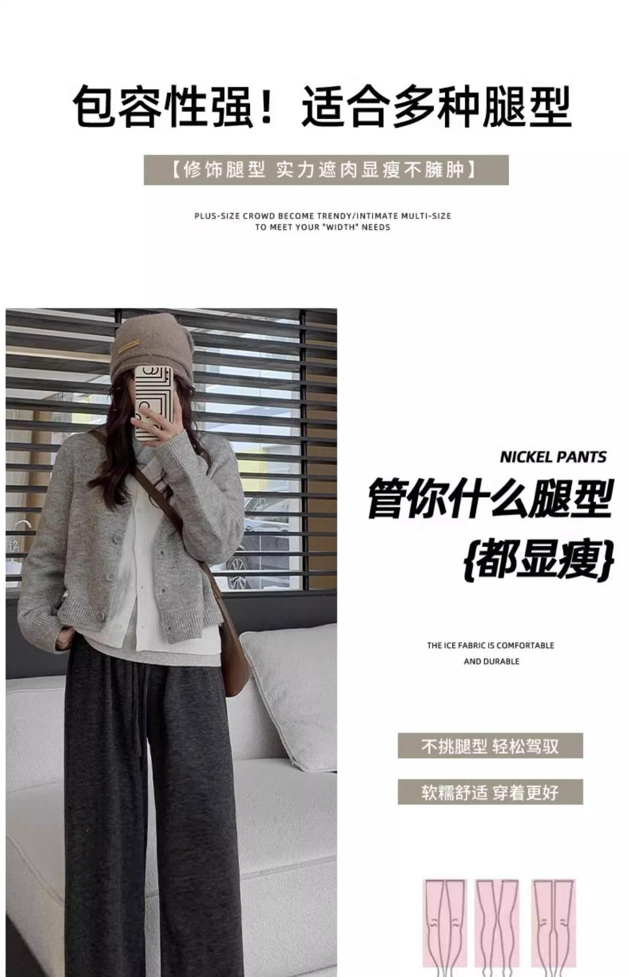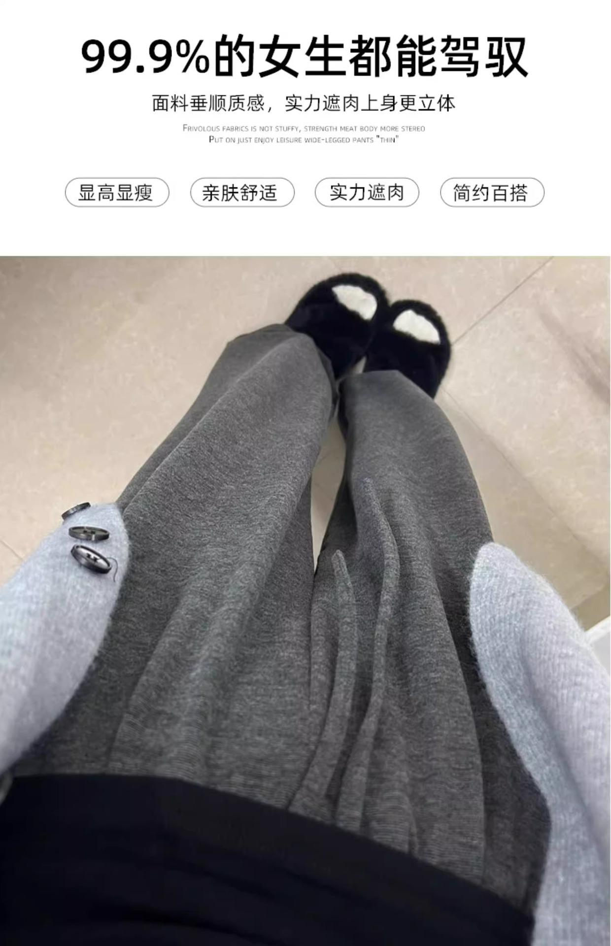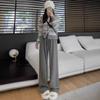 Pantalones de pierna ancha grises de cintura alta, rectos, informales, holgados, de primavera y otoño, talla pequeña 145, para mujer