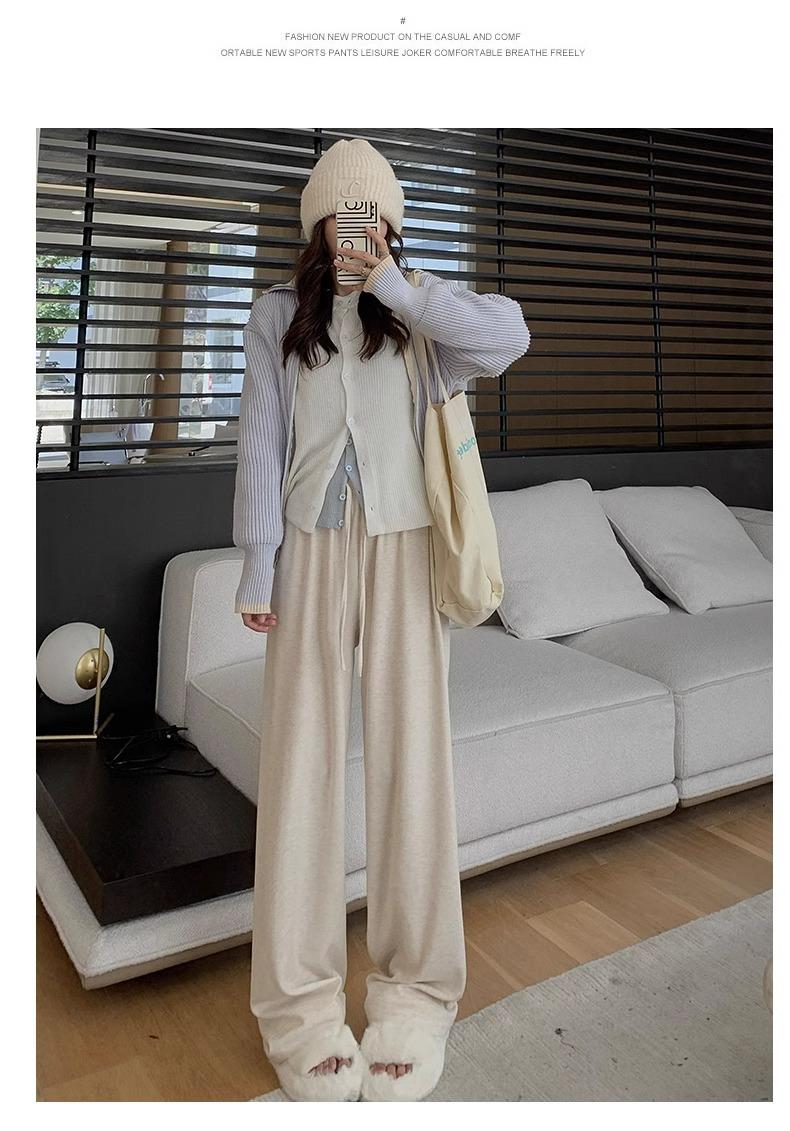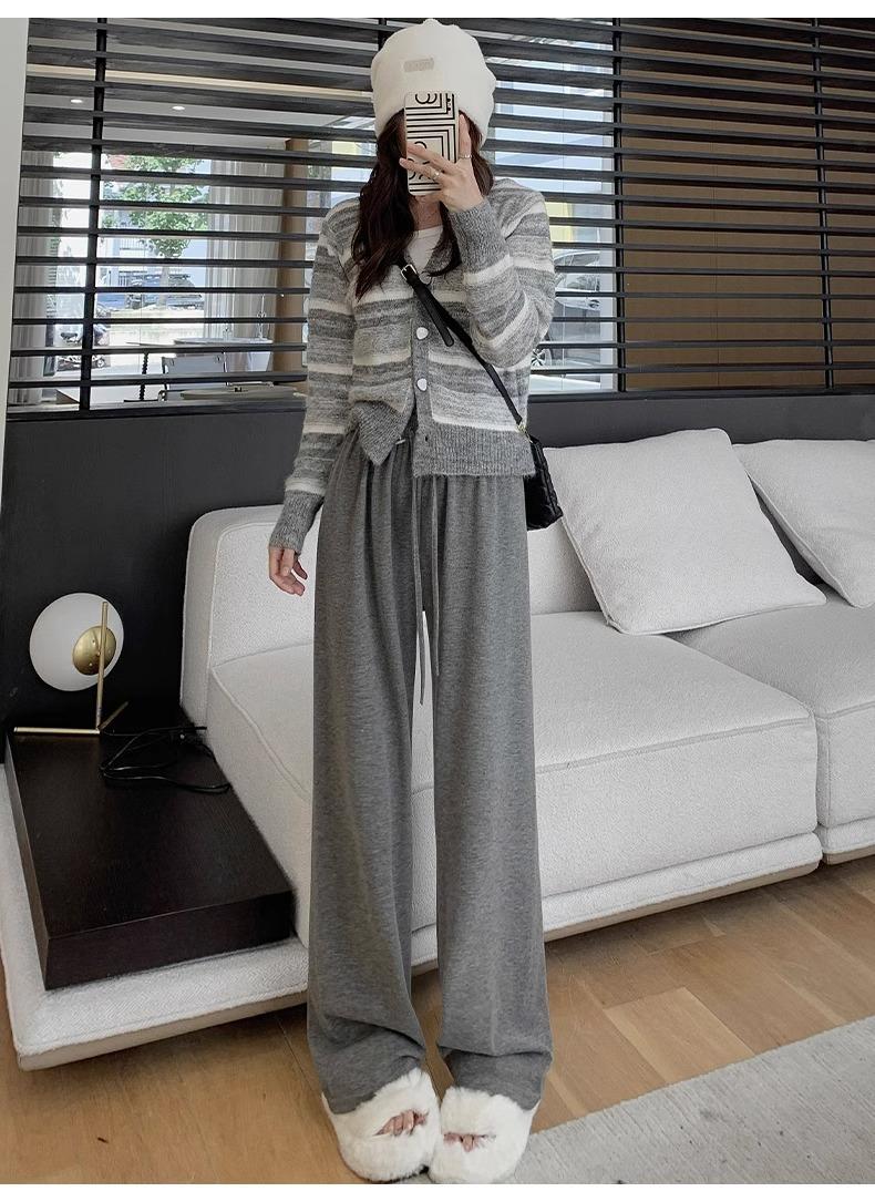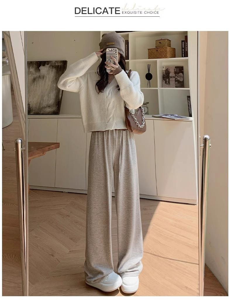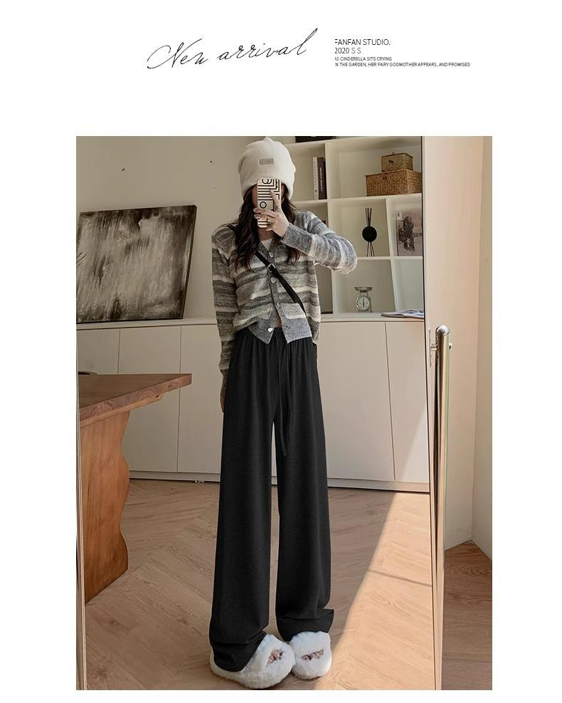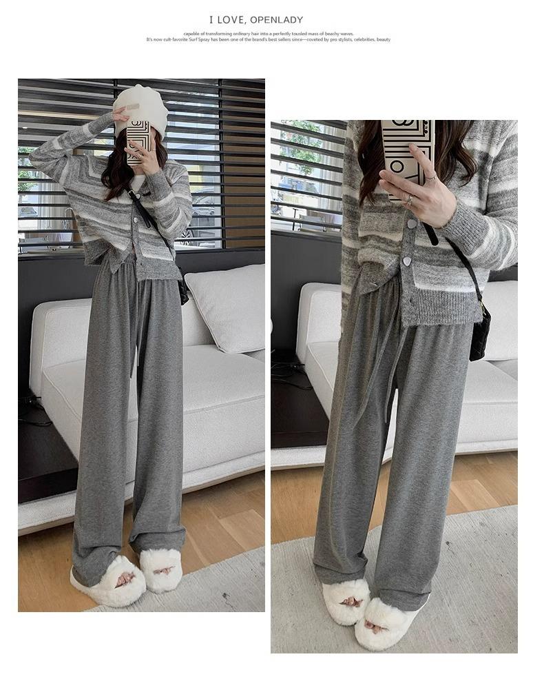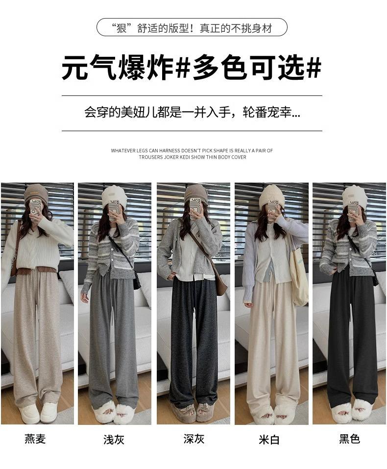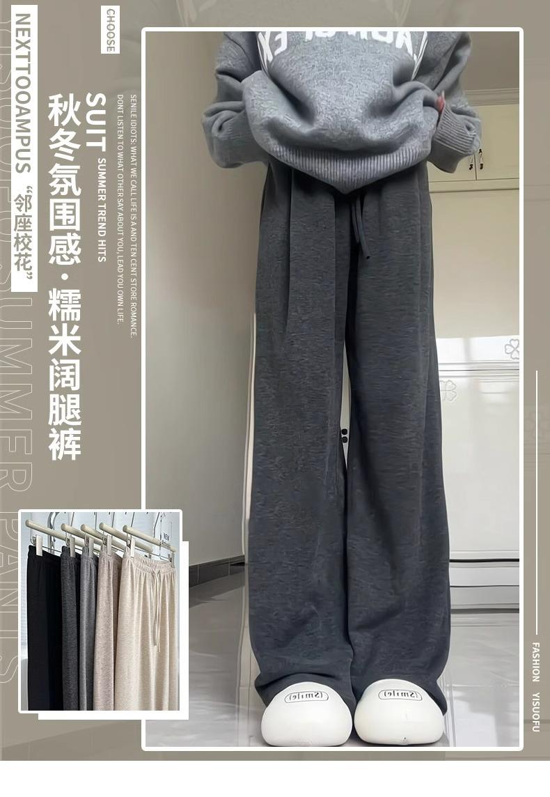 Pantalones de pierna ancha grises de cintura alta, rectos, informales, holgados, de primavera y otoño, talla pequeña 145, para mujer
