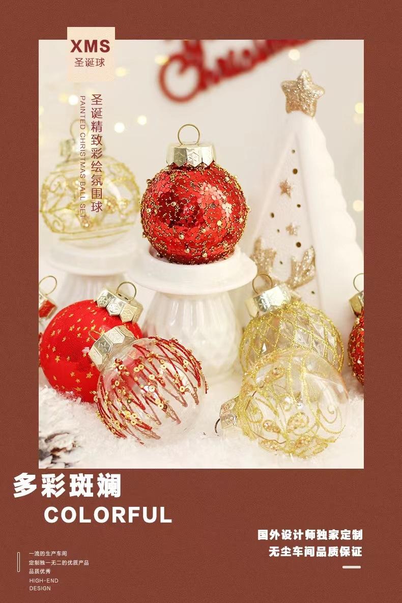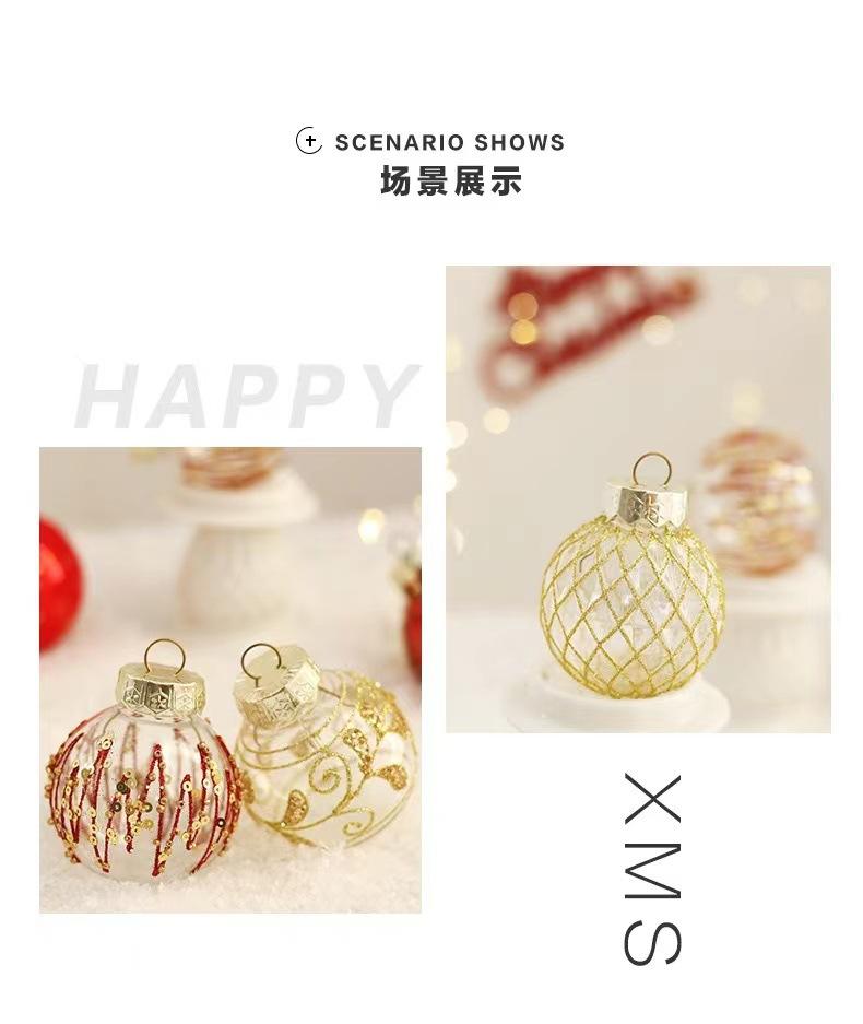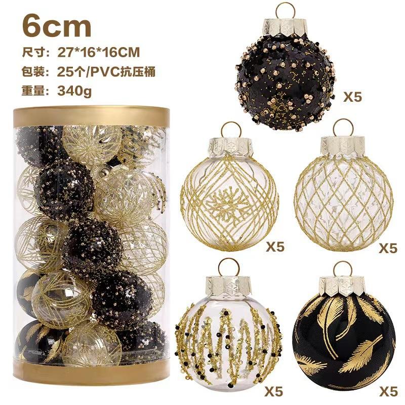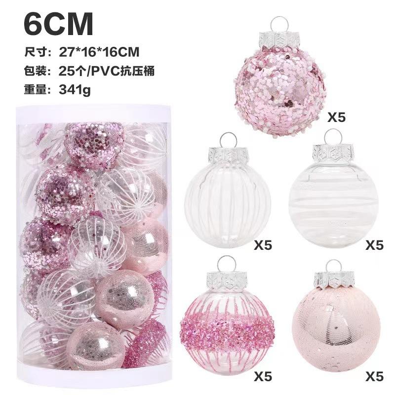 Adornos navideños de 6 cm/25 piezas, boutique de PET, bola de Navidad pintada, traje, bola de decoración para árbol de Navidad