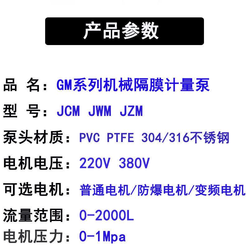 Bomba dosificadora GM, bomba dosificadora de diafragma mecánica, bomba dosificadora GM120/0.7, bomba dosificadora de acero inoxidable resistente a la corrosión