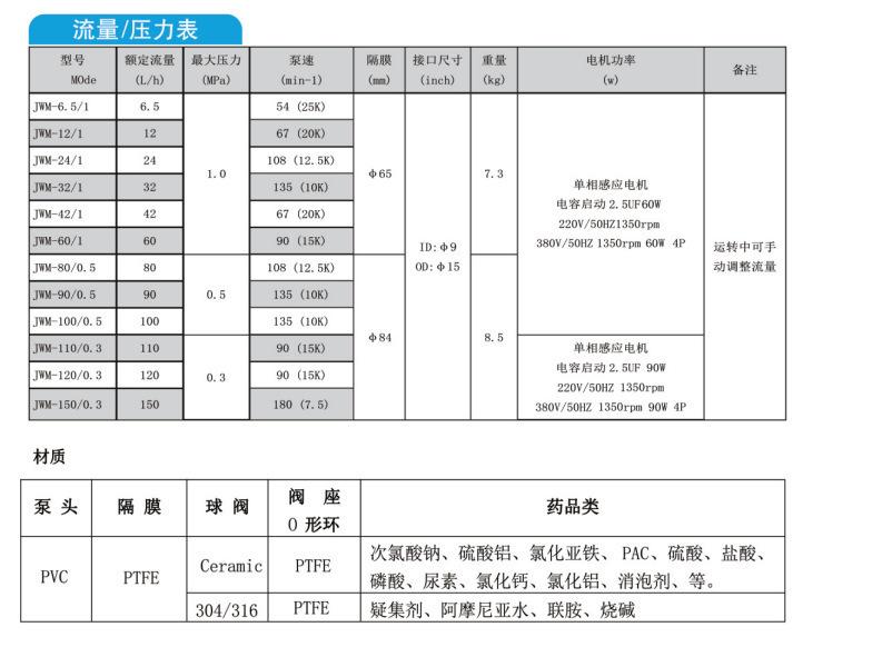 316 stainless steel, PVC engineering plastic