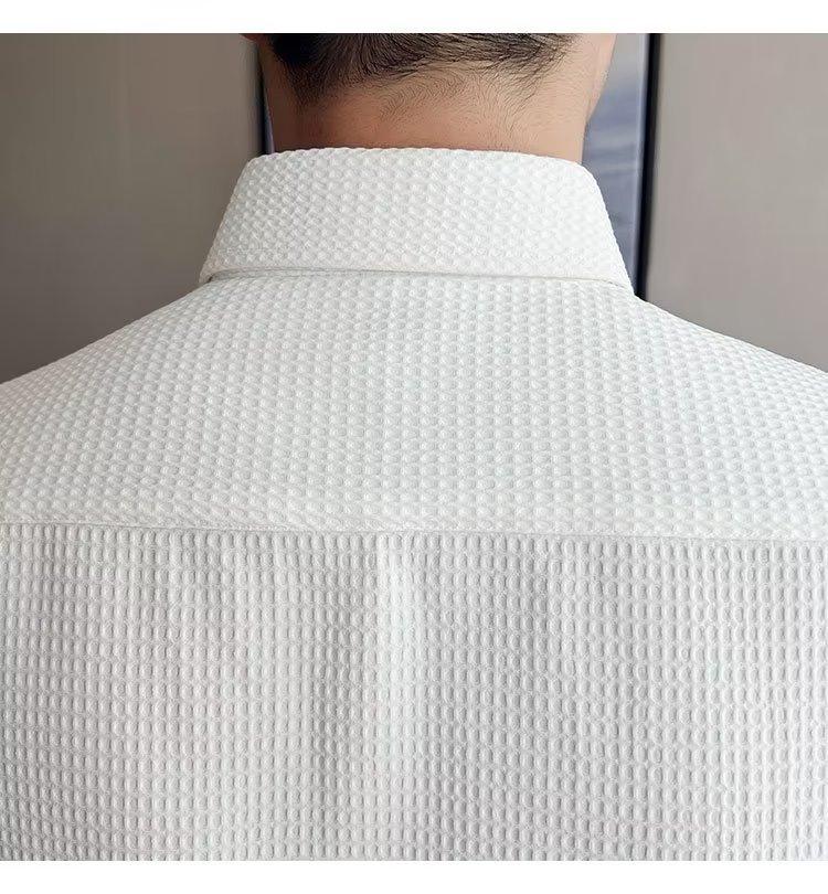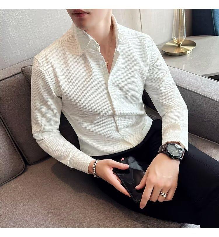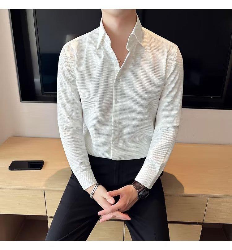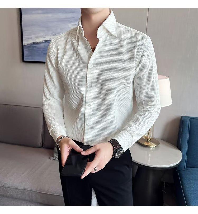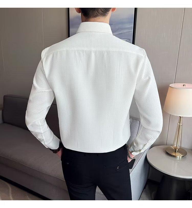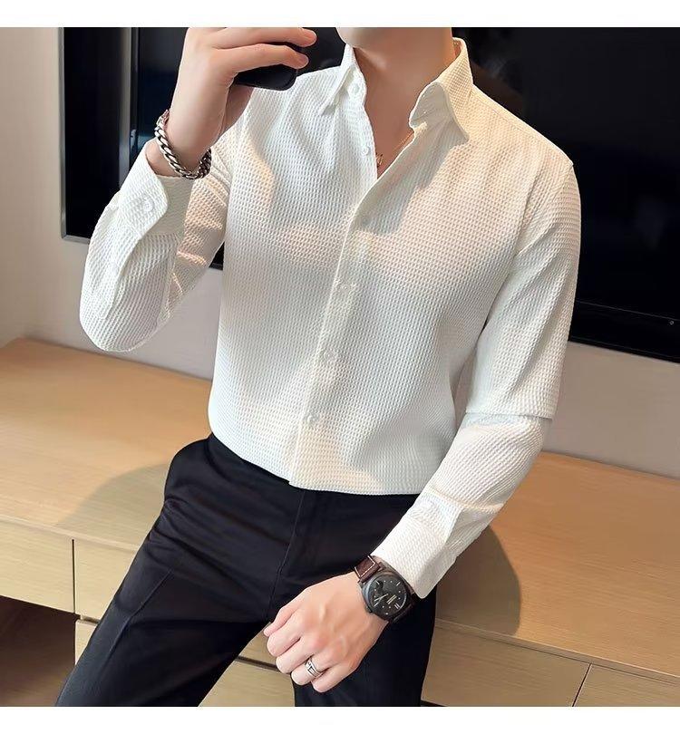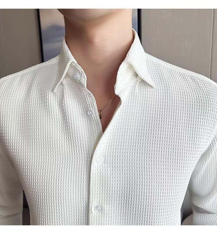Camisa de hombre de manga larga, primavera y otoño, alta gama 2024, nueva camisa blanca informal de negocios de corte entallado con cuello grande y diseño de gofres.