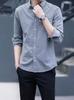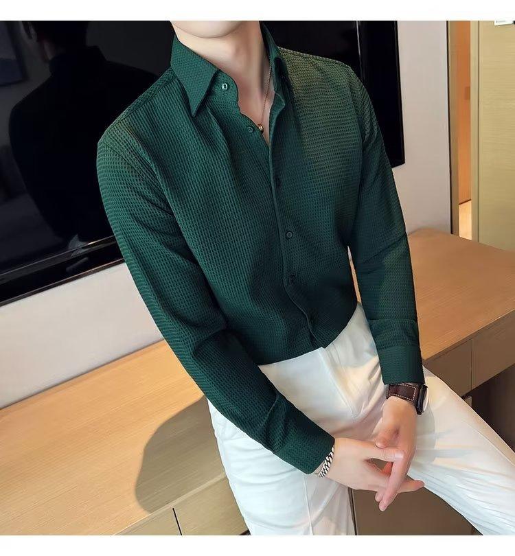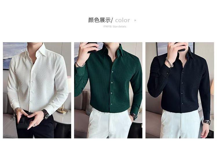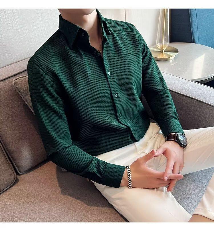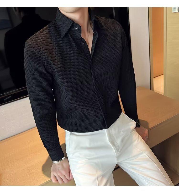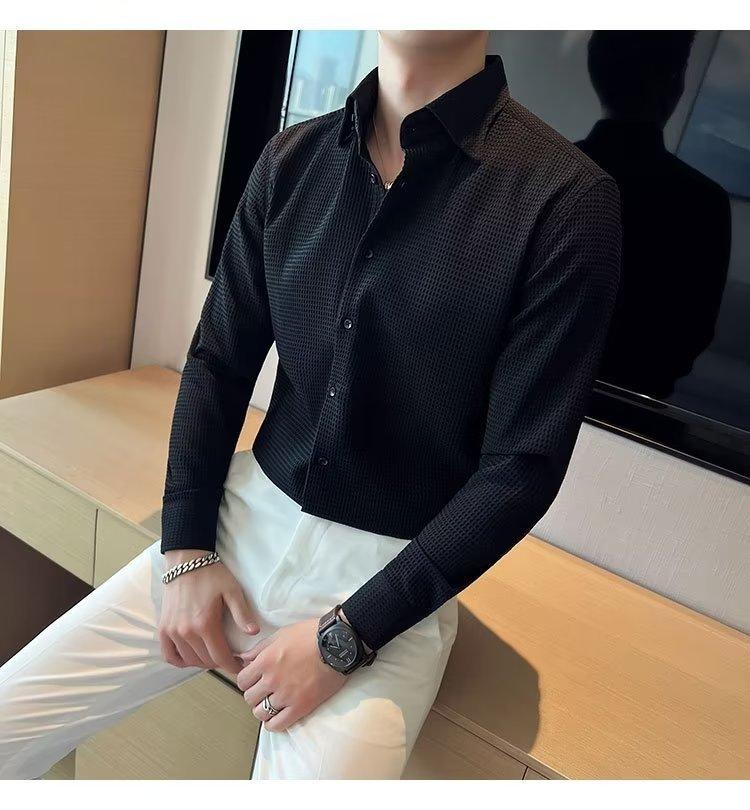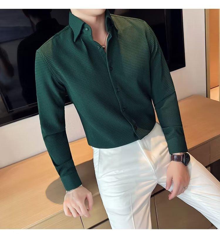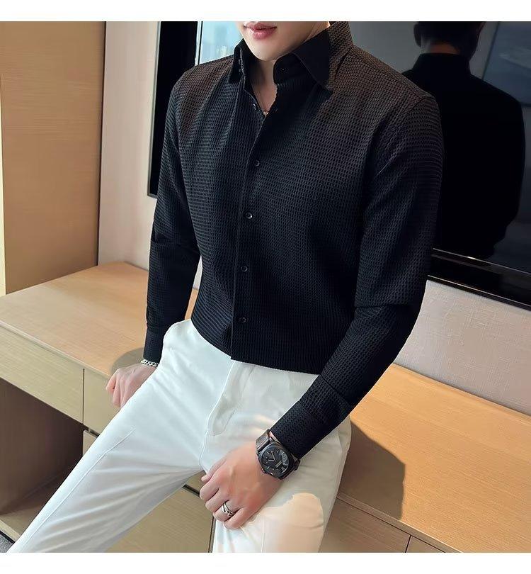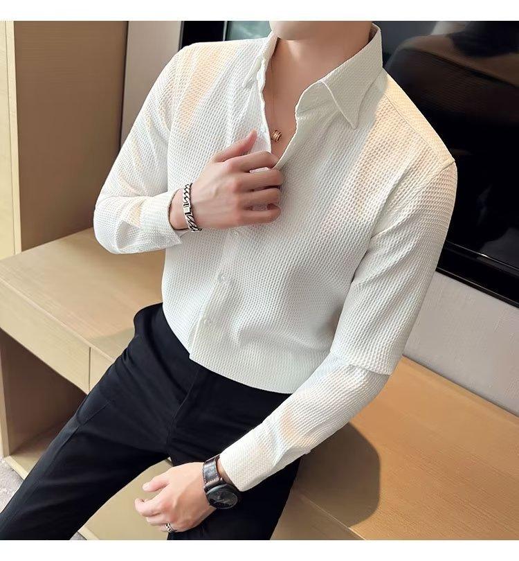 Camisa de hombre de manga larga, primavera y otoño, alta gama 2024, nueva camisa blanca informal de negocios de corte entallado con cuello grande y diseño de gofres.