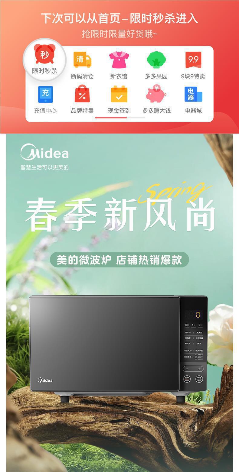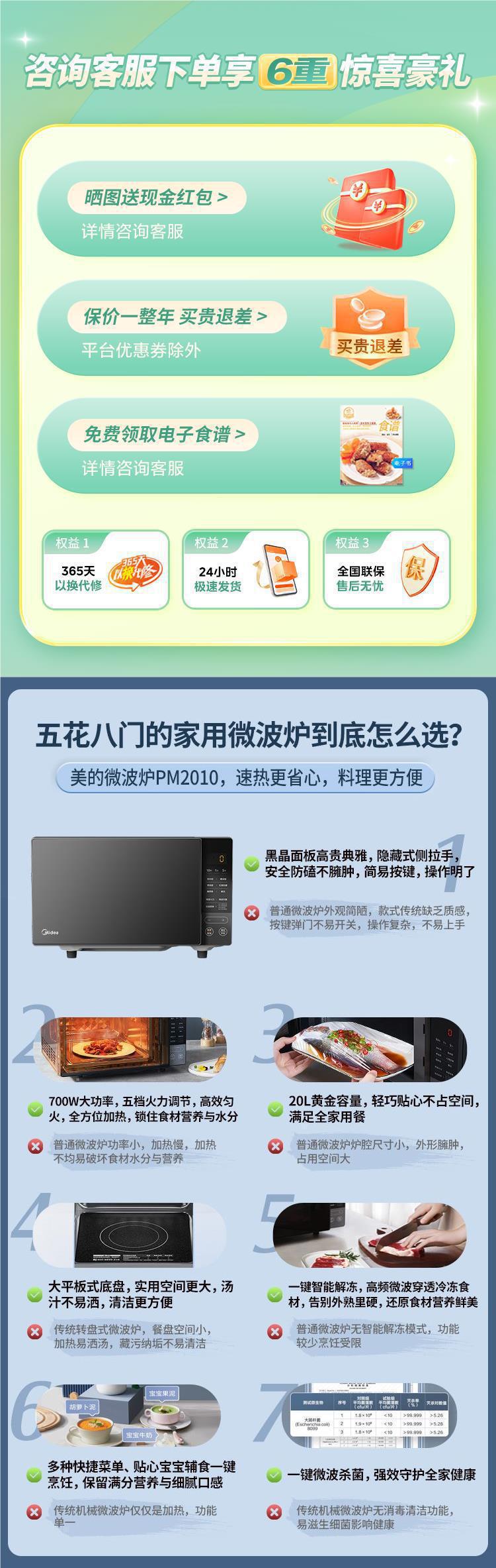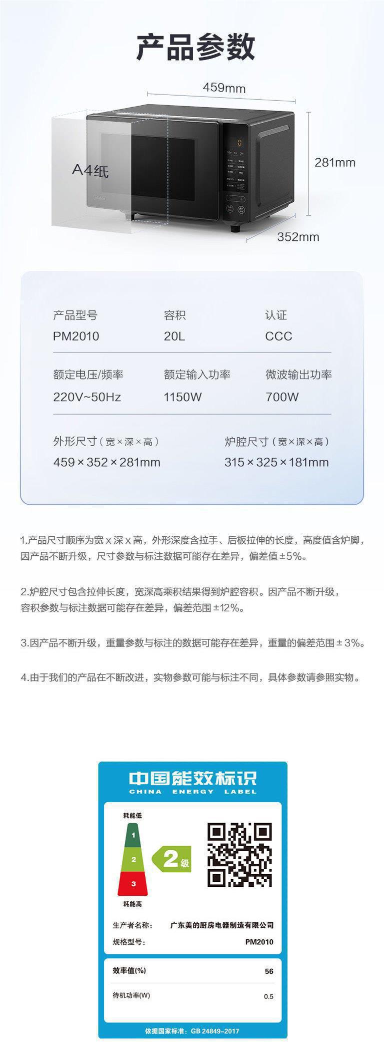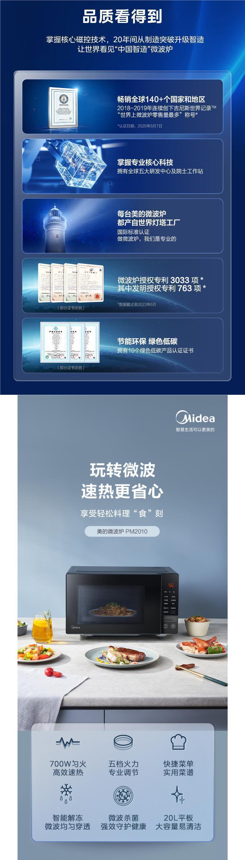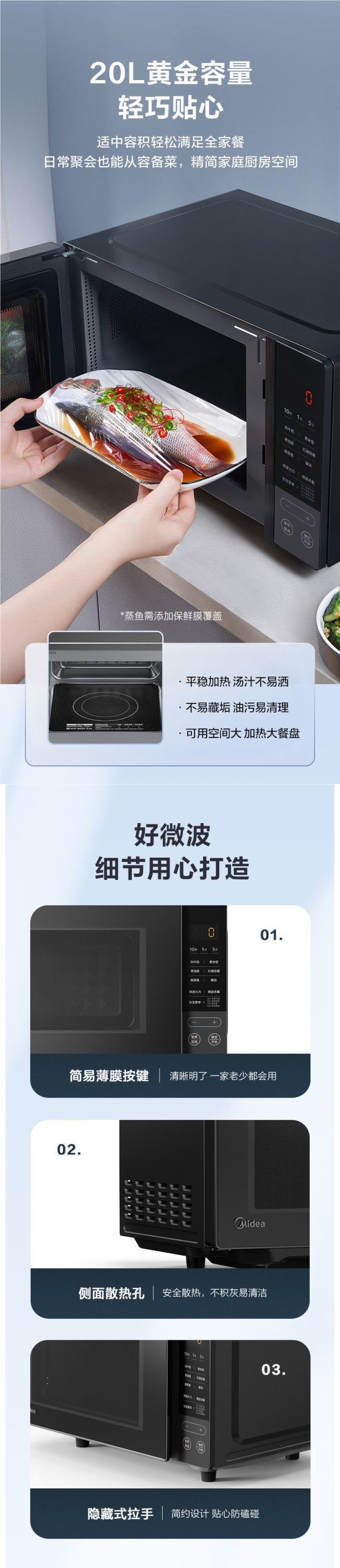 Horno microondas Midea Home de 20 litros, inteligente, de panel plano grande, con calentamiento, descongelación y esterilización rápidos, nuevo y mejorado (PM2010)