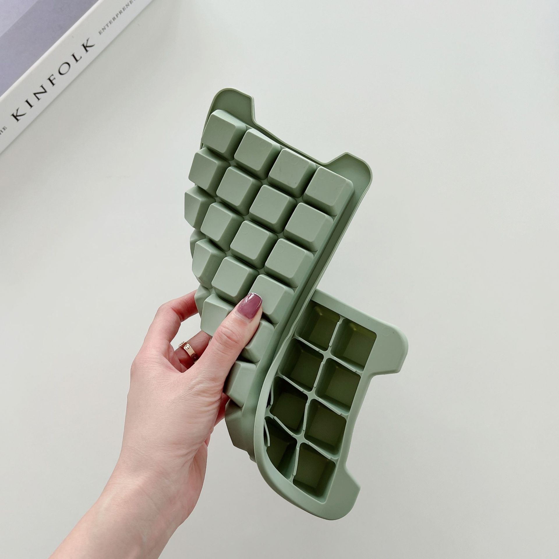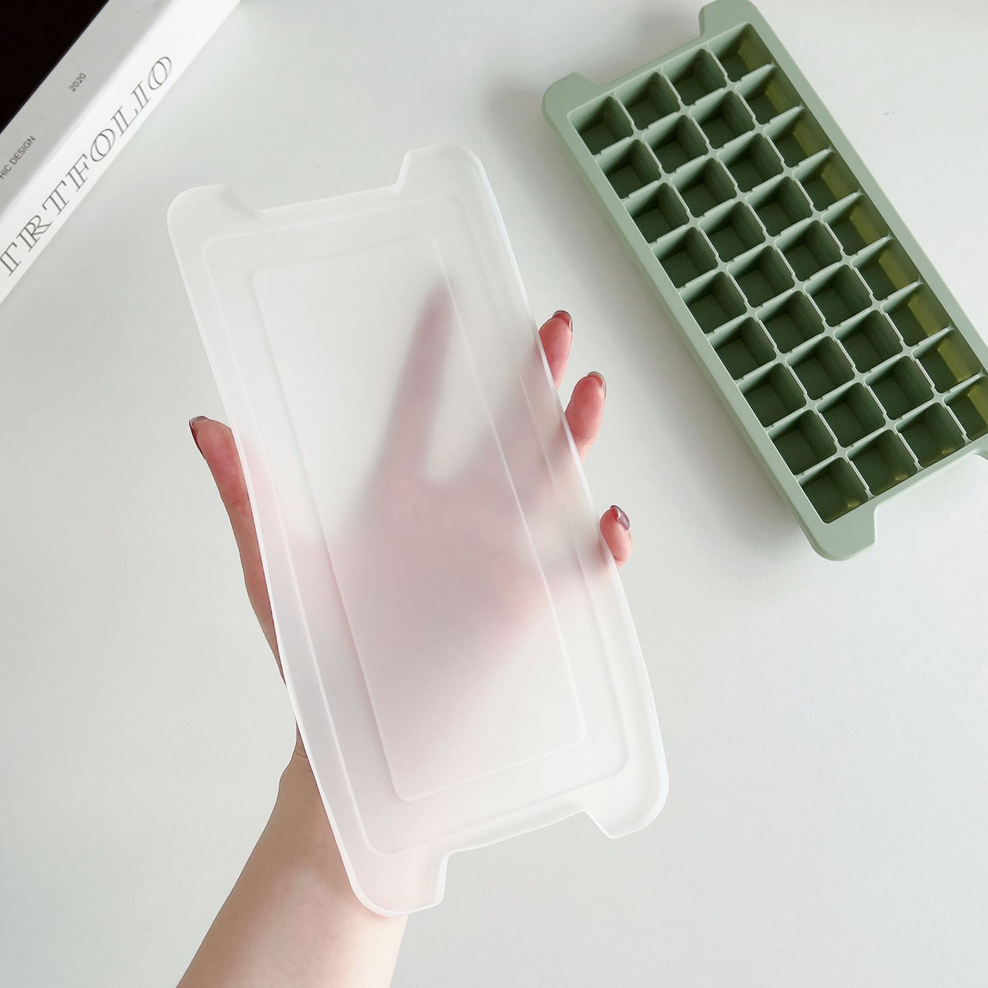Molde para cubitos de hielo de silicona de grado alimenticio de 36 rejillas, caja grande para cubitos de hielo con tapa, caja de almacenamiento de hielo de silicona, artefacto para hacer hielo